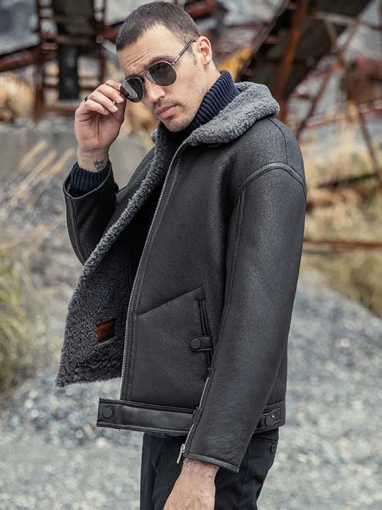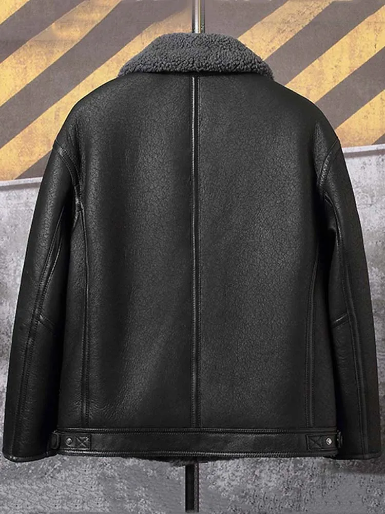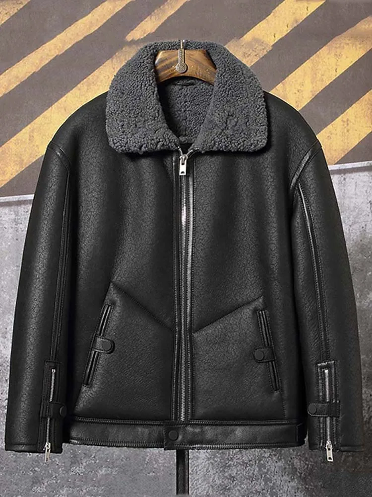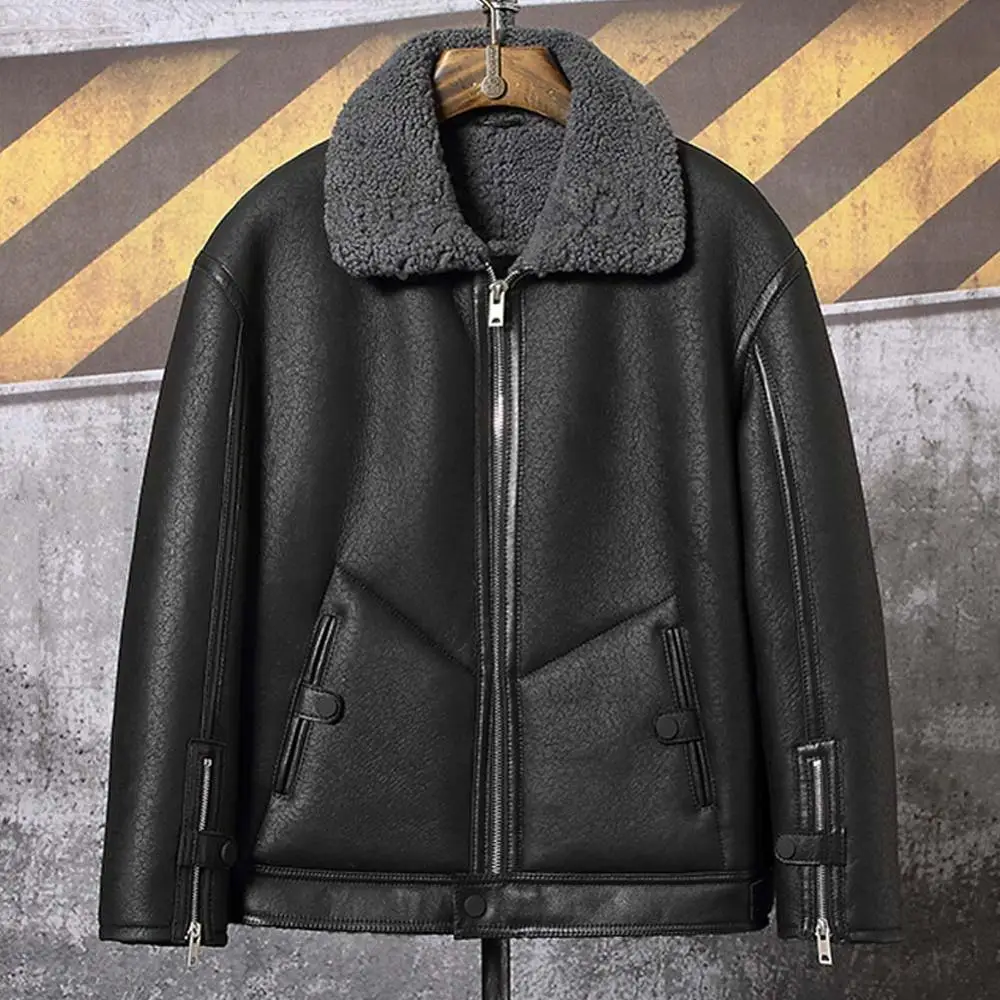 2020 Winter New Mens Shearling Jacket Black Leather Coat Short Fur Parkas Thicken Sheepskin Overcoat