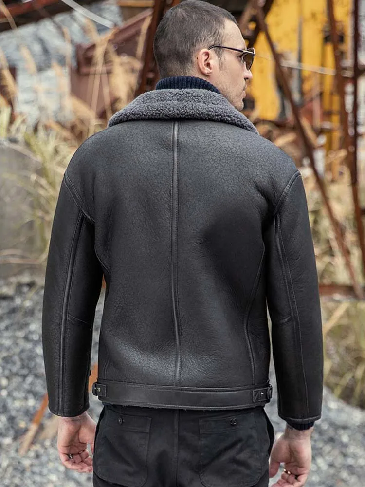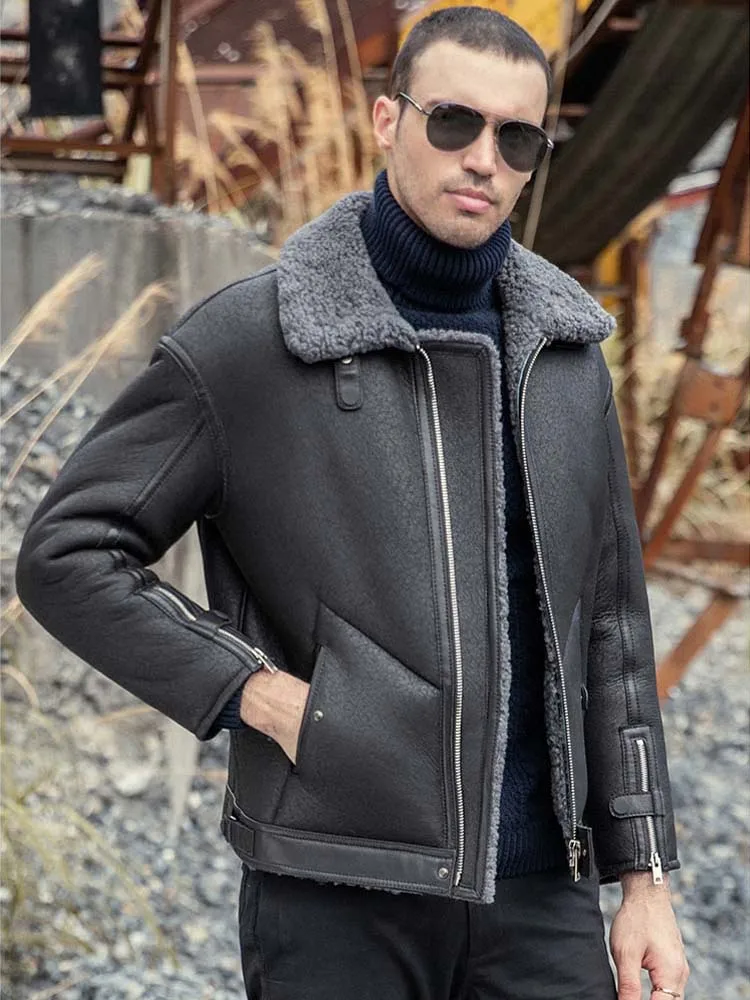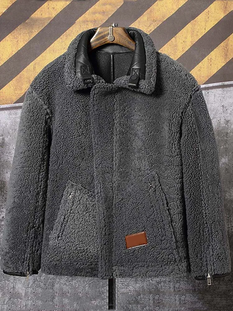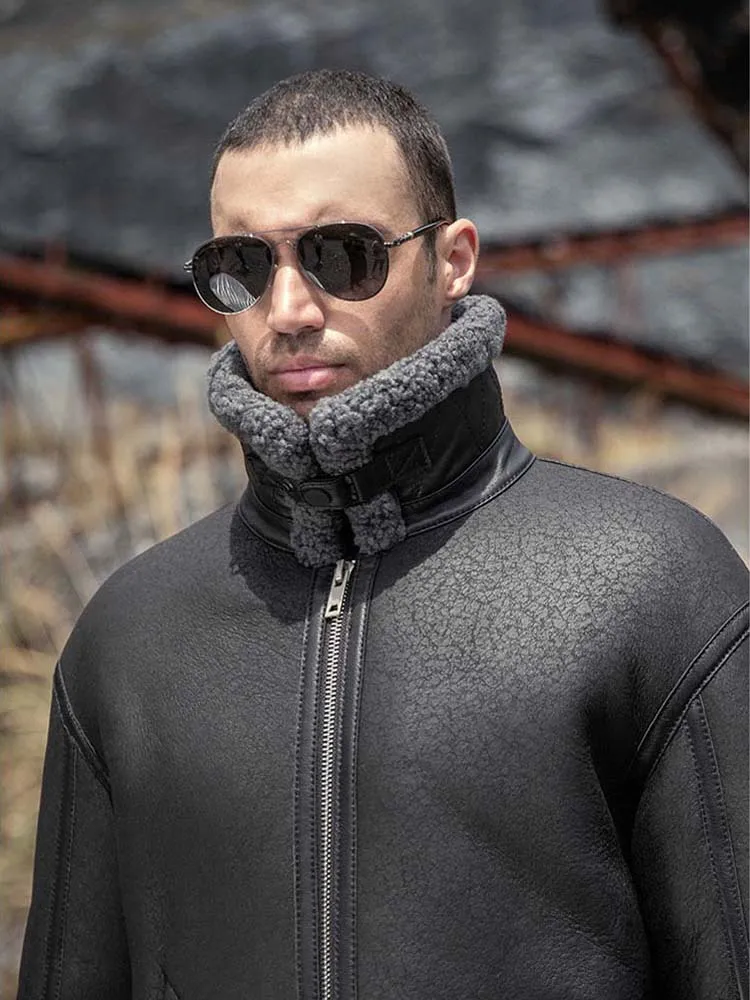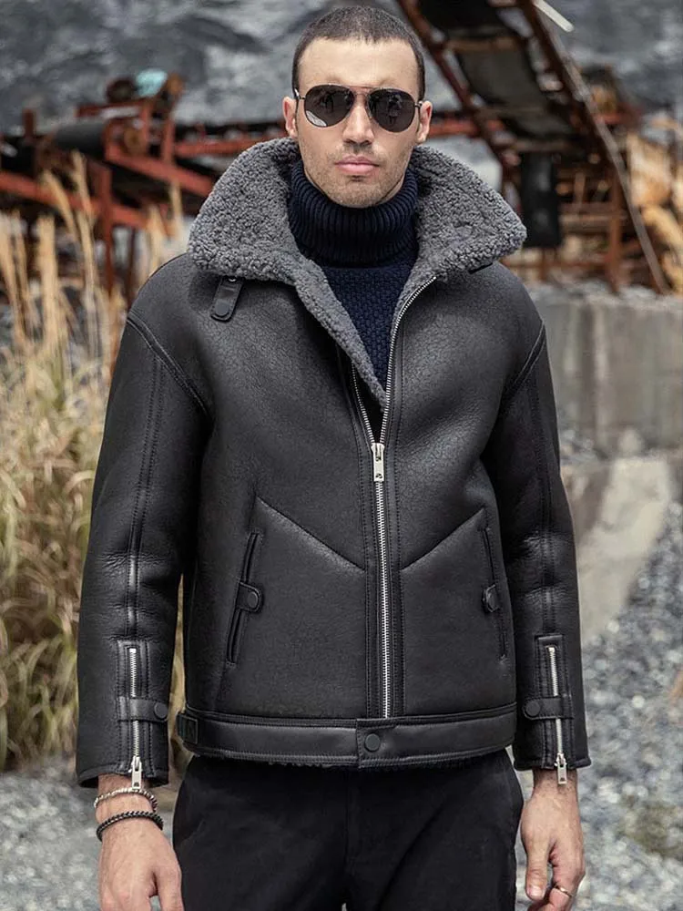 2020 Winter New Mens Shearling Jacket Black Leather Coat Short Fur Parkas Thicken Sheepskin Overcoat