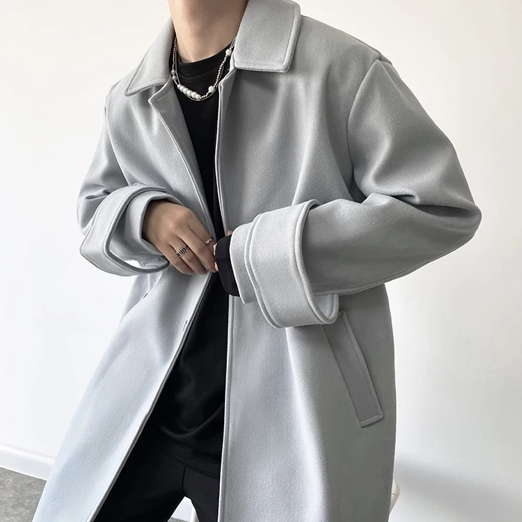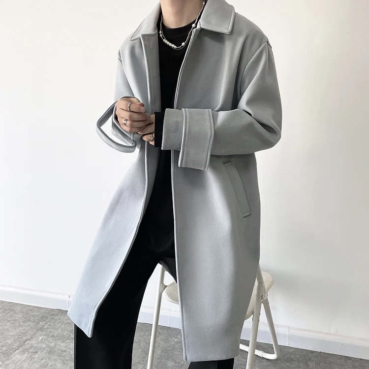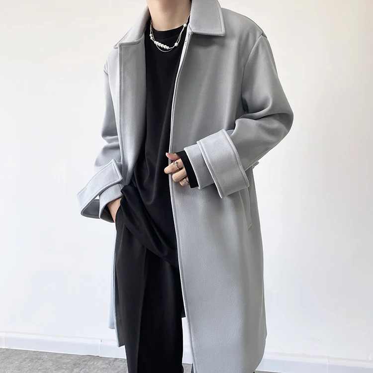 2021 Autumn Korean style unique woolen windbreaker men casual loose Long section Windbreaker men trench,M-XL