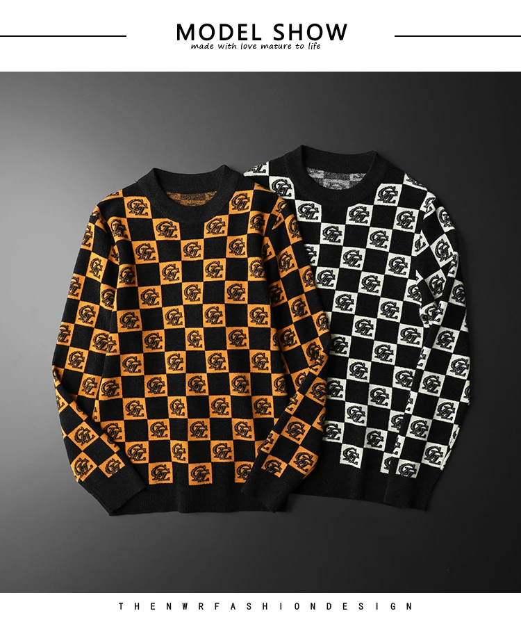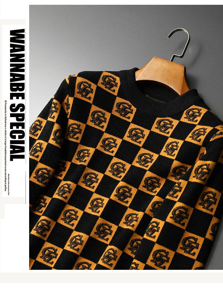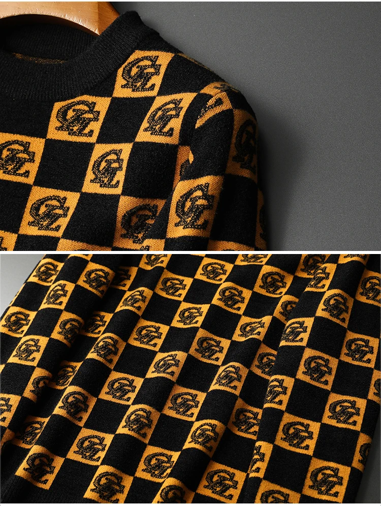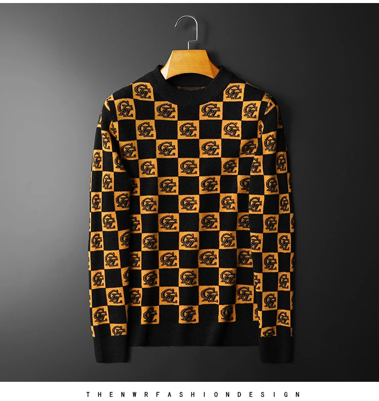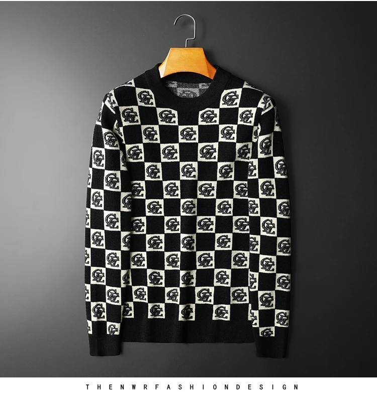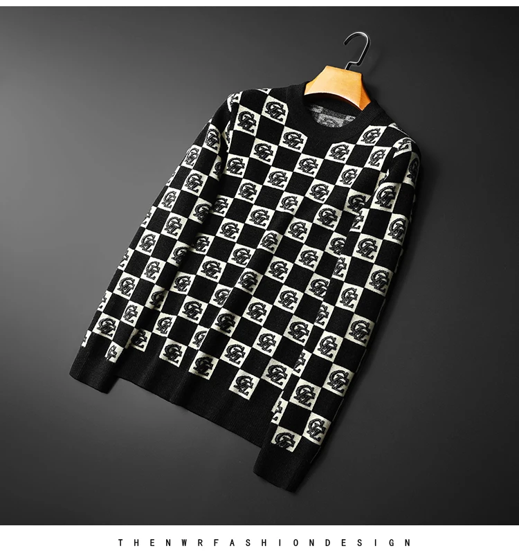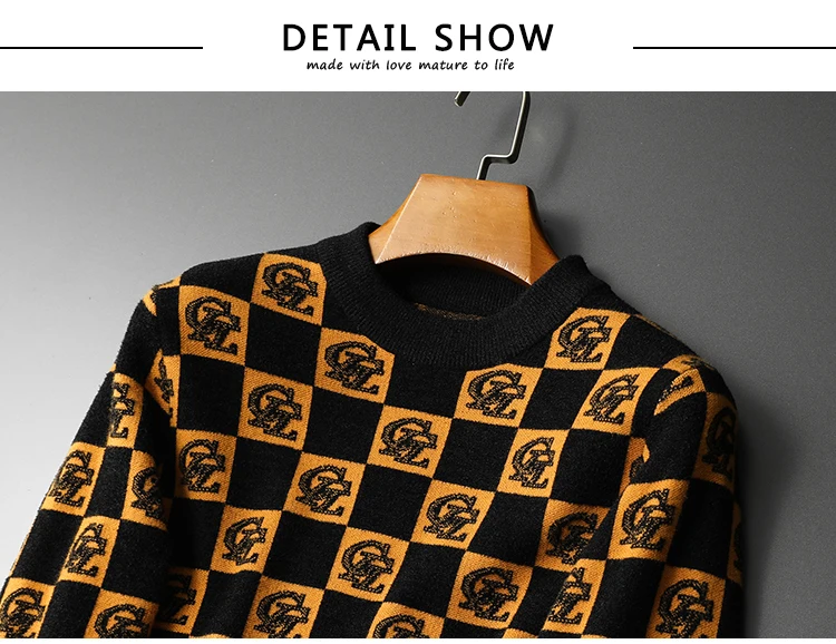 2021 Autumn Winter New Style Men’s Casual Wool Warm Sweater Fashion Letter Printing Personality O-Neck knitted Male Sweater