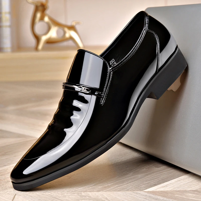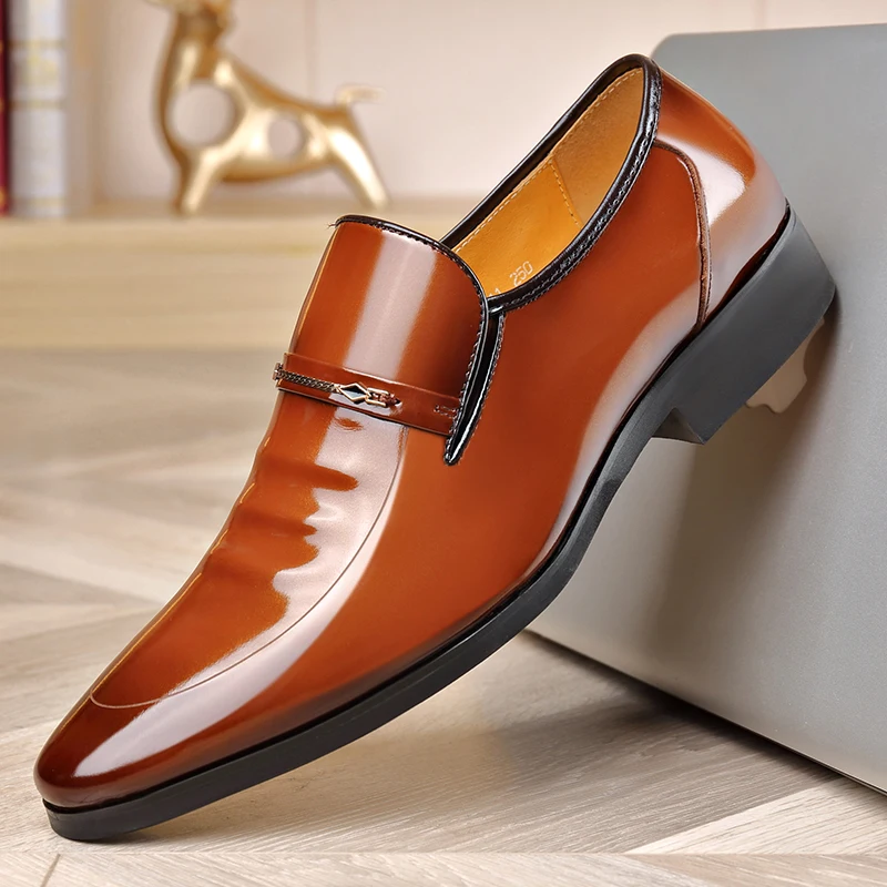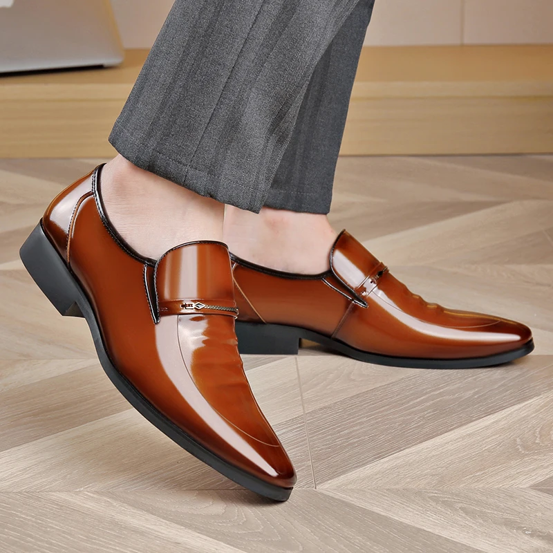 2021 Fashion Genuine Leather Wedding Dress Pointed Shoes Mens Footwear business attire Slip-on Men’s Flats mens glitter shoes