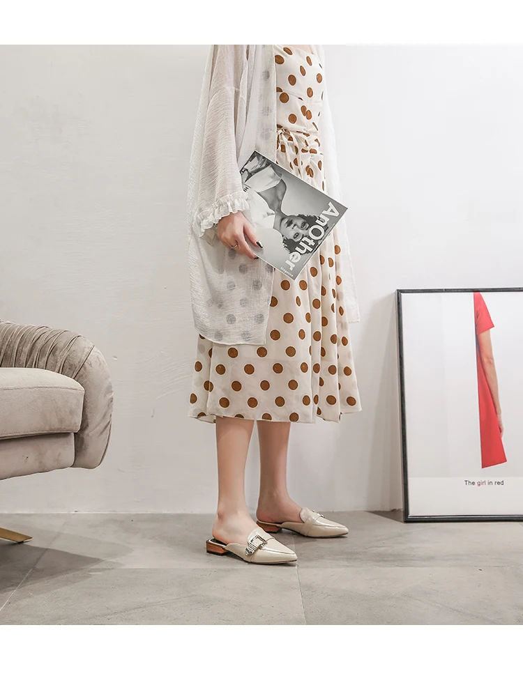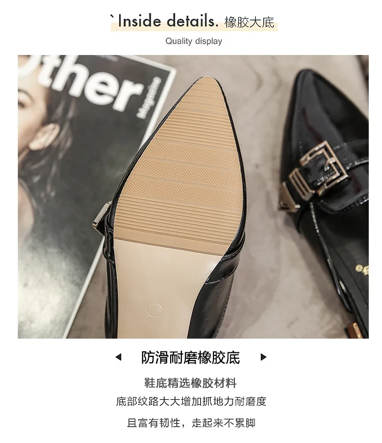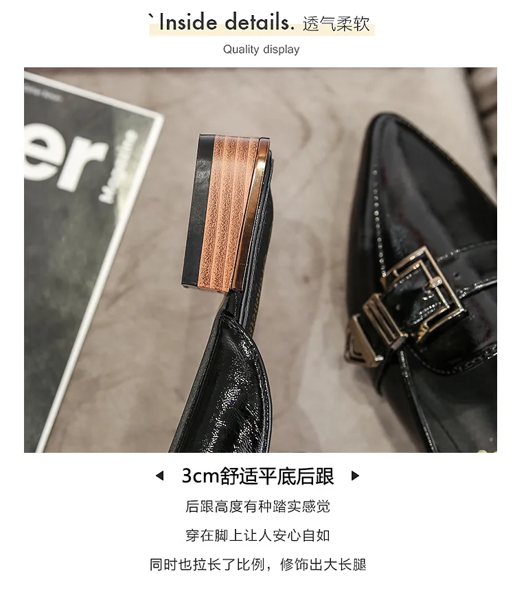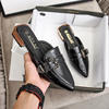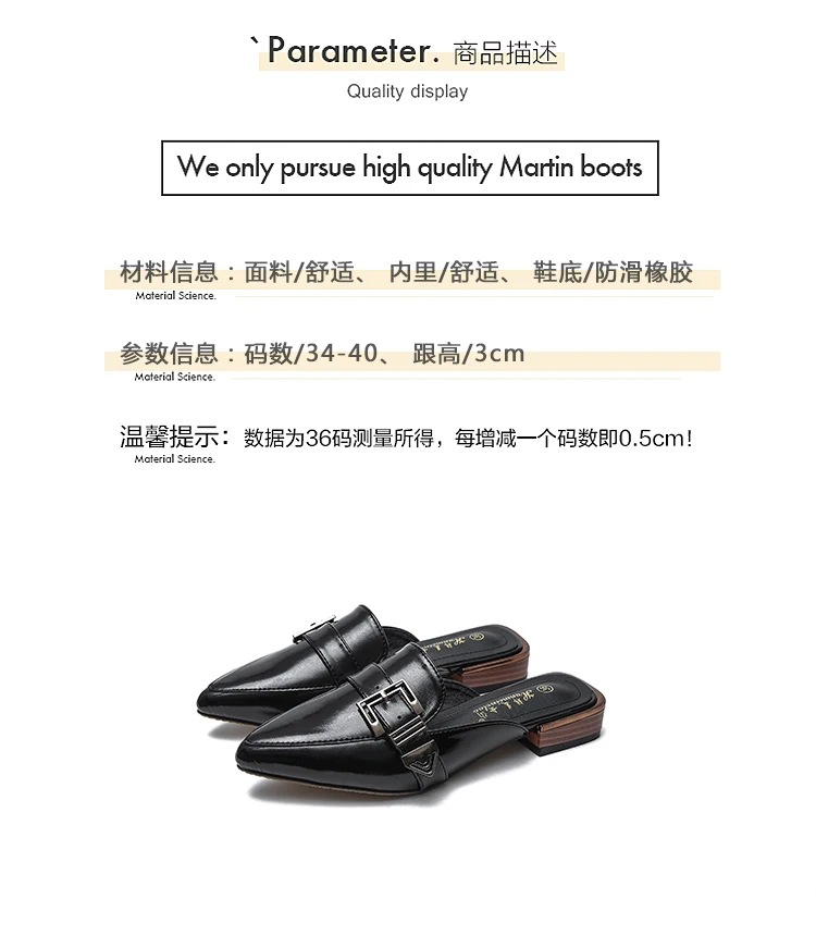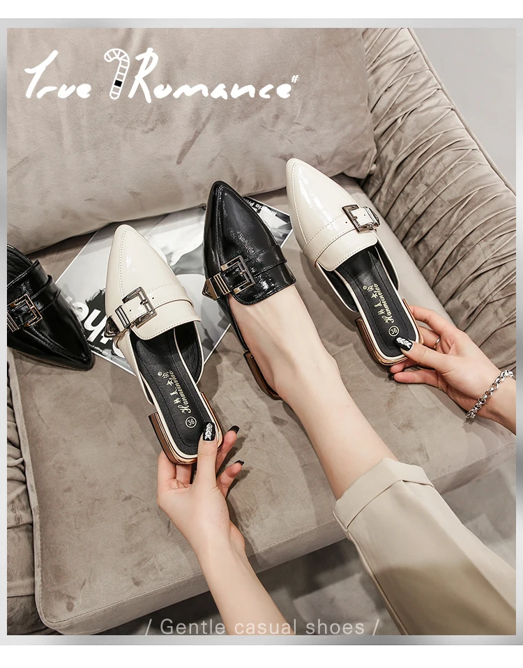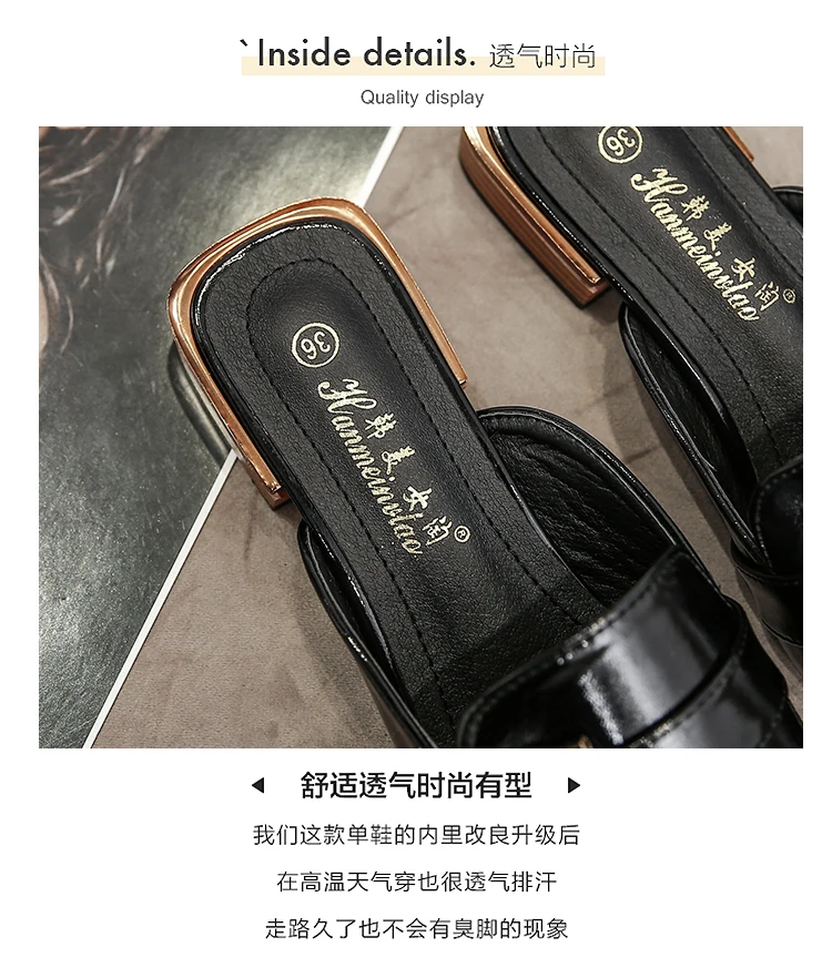 2021 Japanned Leather belt buckle mules women sandals summer shoes slides pointed toe wood heels slippers woman plus size 42/43