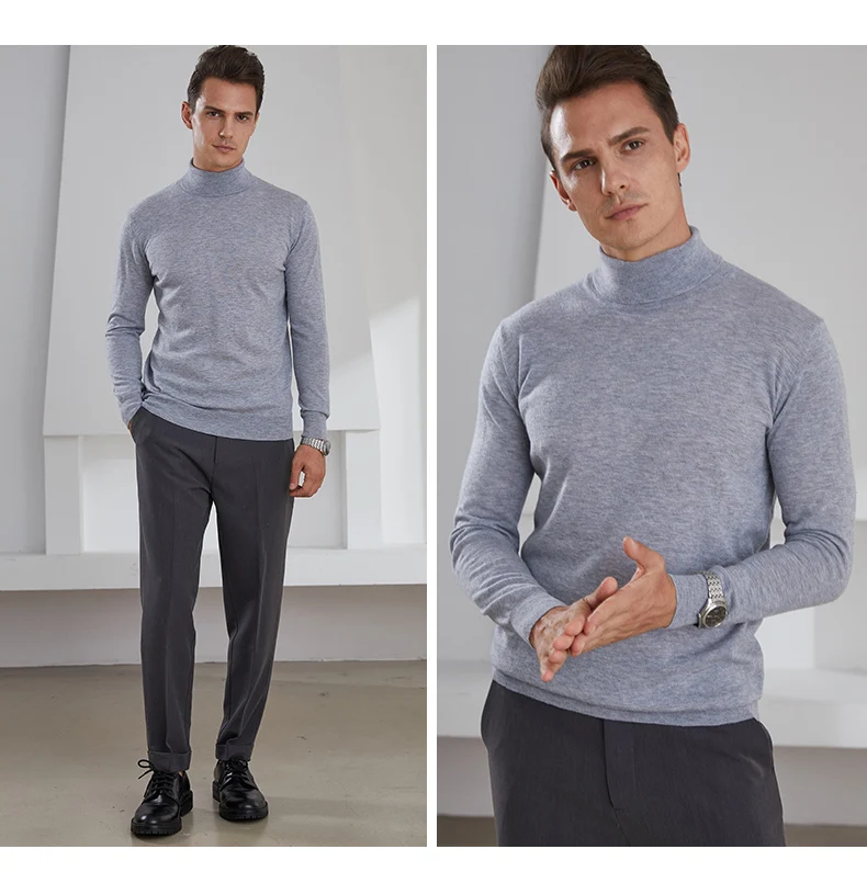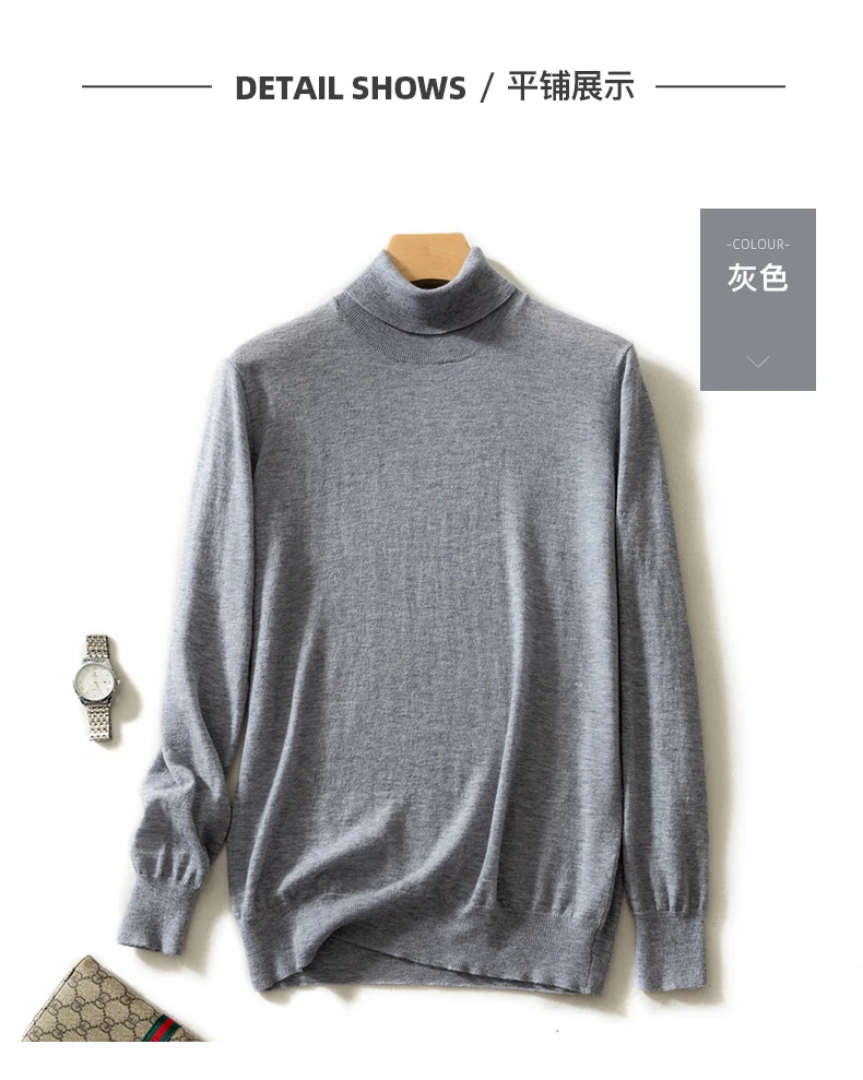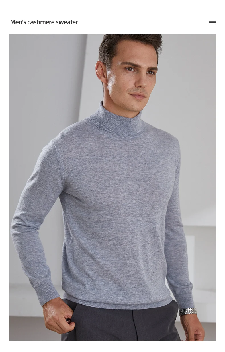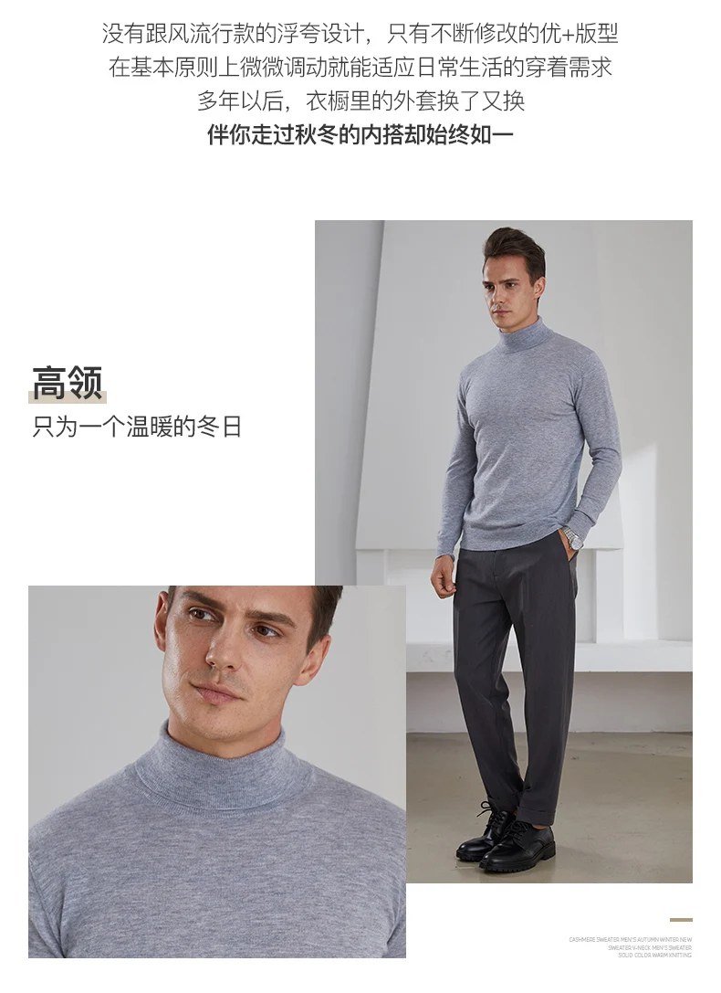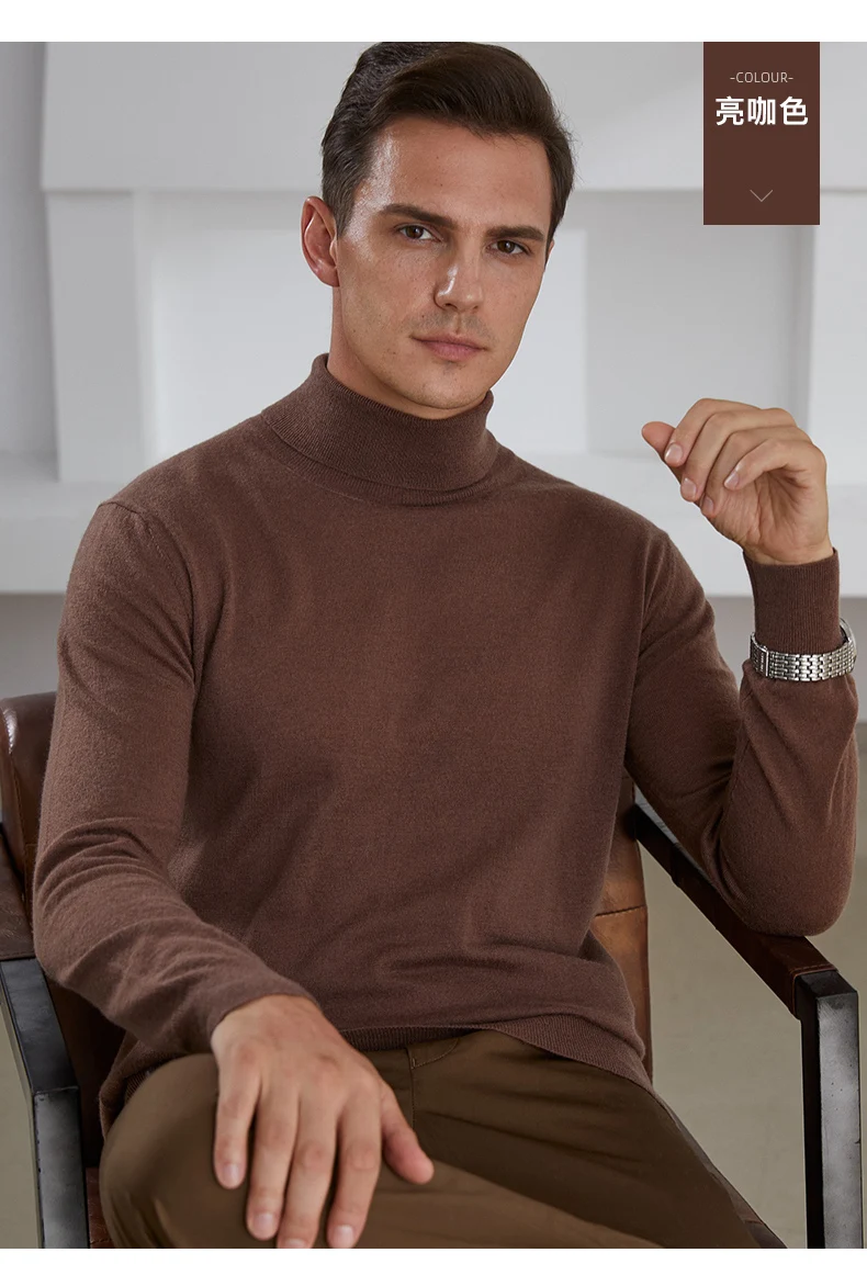 2021 Man Turtleneck Pullovers Winter New Fashion Thin Sweaters 100% Cashmere Knitted Woolen Clothes Hot Sale Standard Male Tops