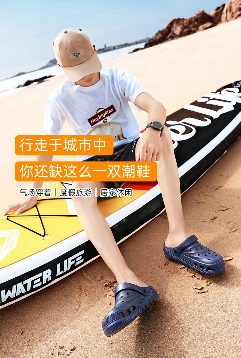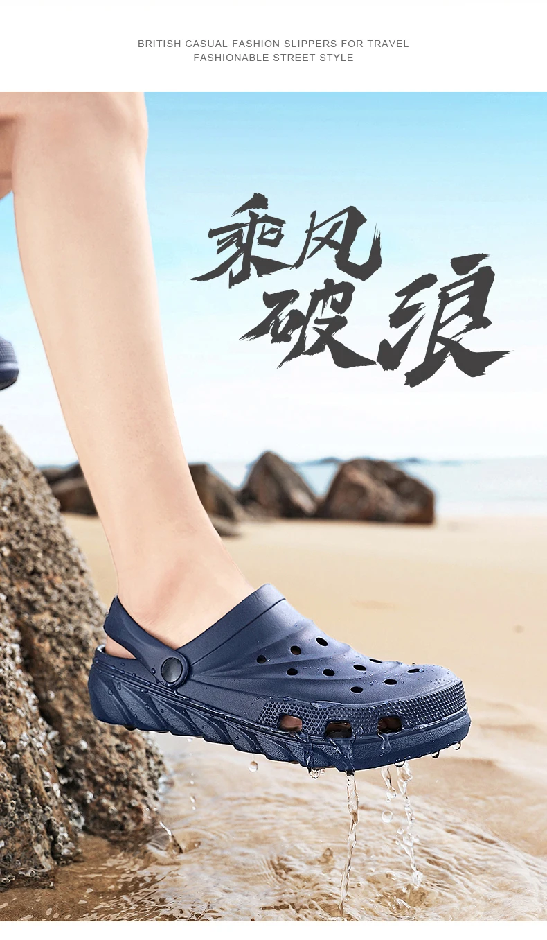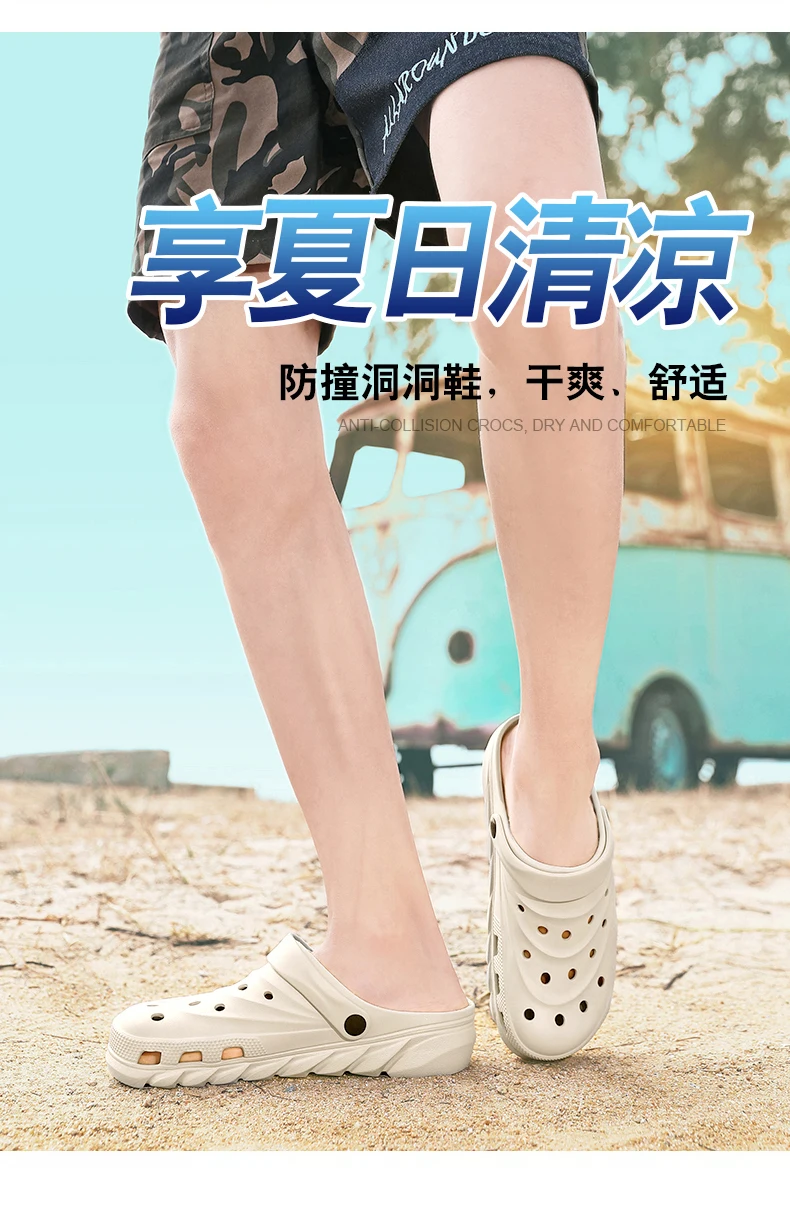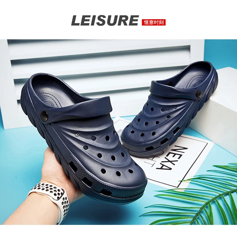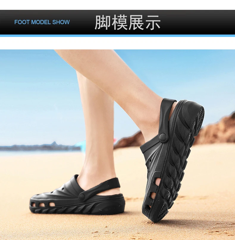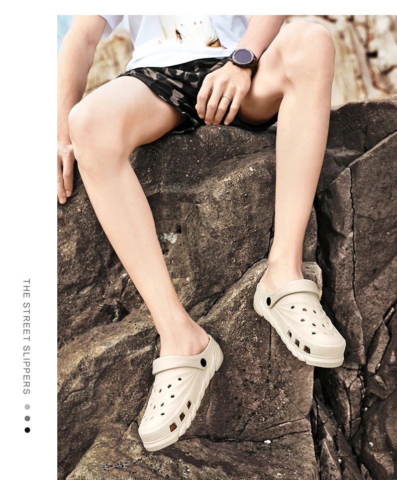 2021 Mens Sandals Snake Print Fashion Light Hole Shoes Summer Non-slip Clogs EVA Garden Shoes Beach Flat Male Slippers