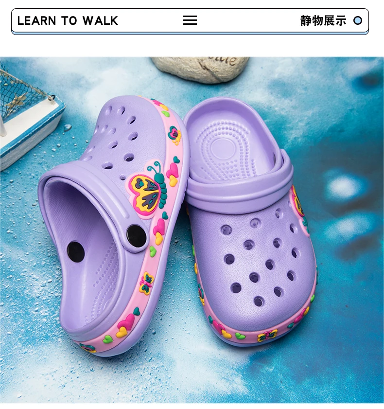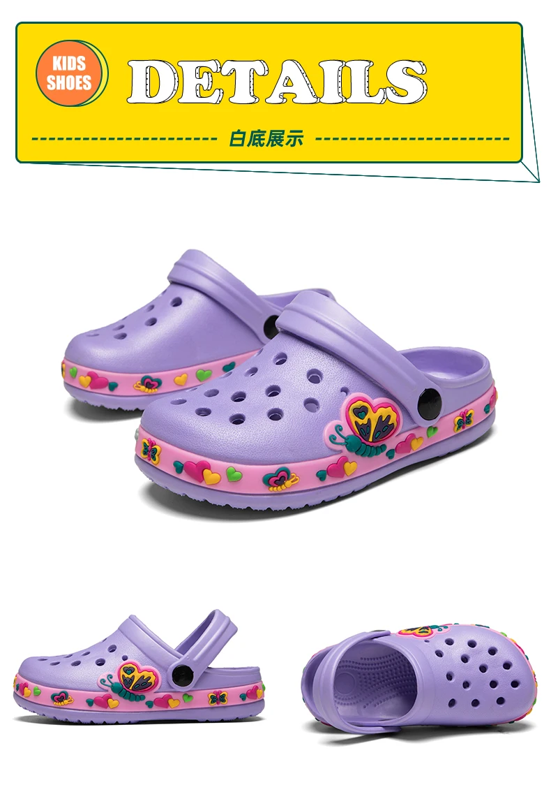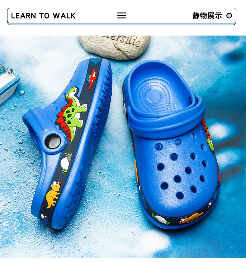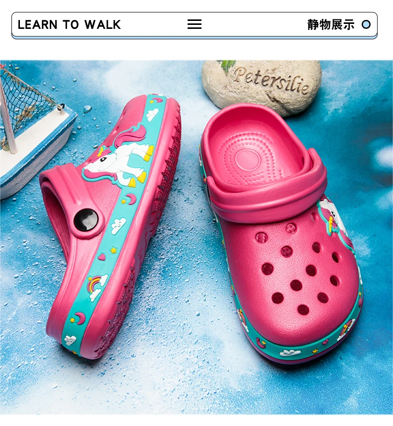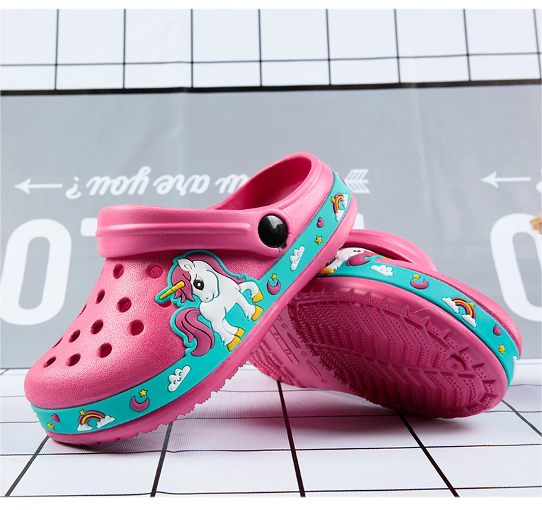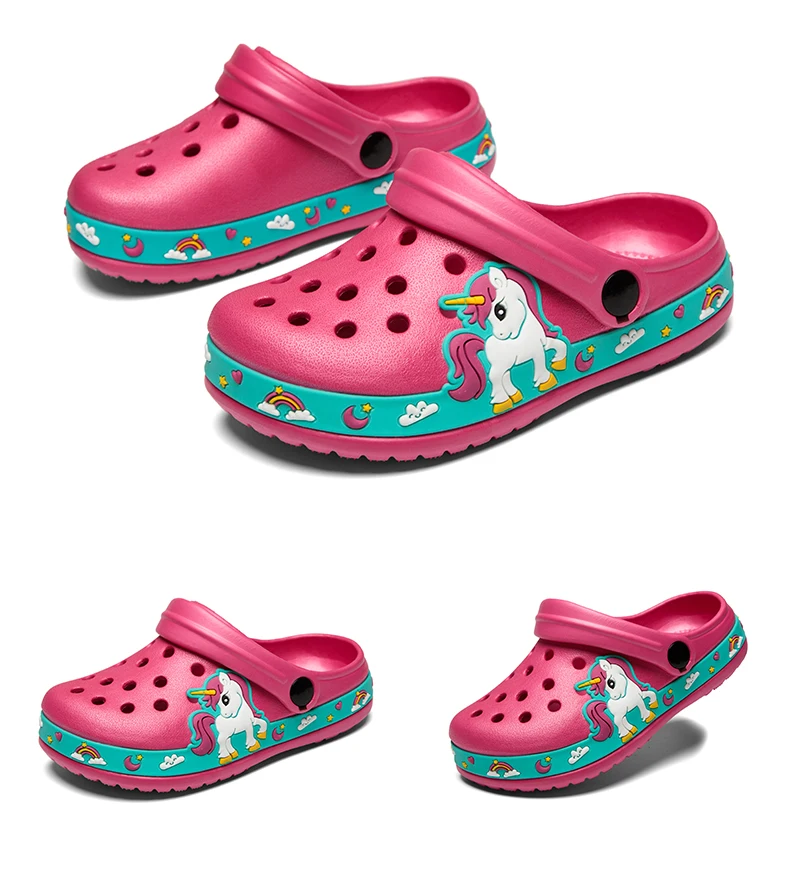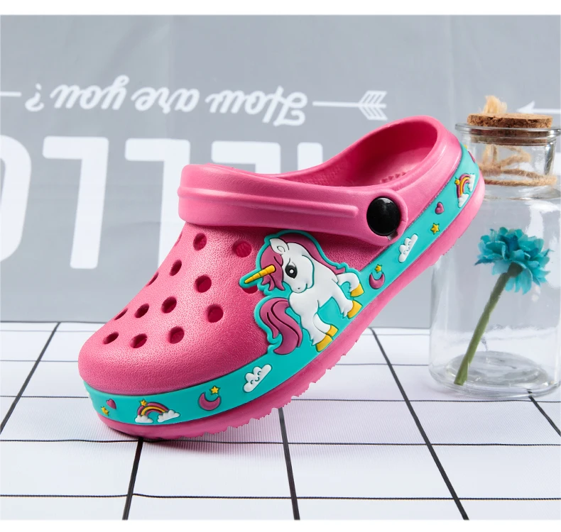 2021 New Children Sandals Summer Hole Shoes Rubber Kids Unicorn Dinosaur Garden Shoes Beach Flat Slippers