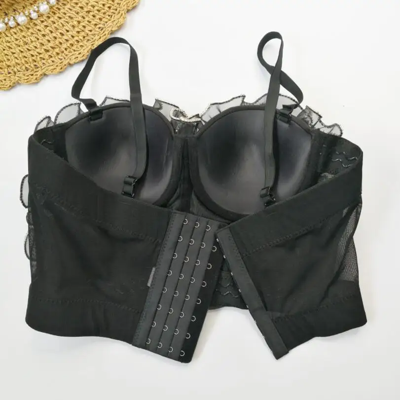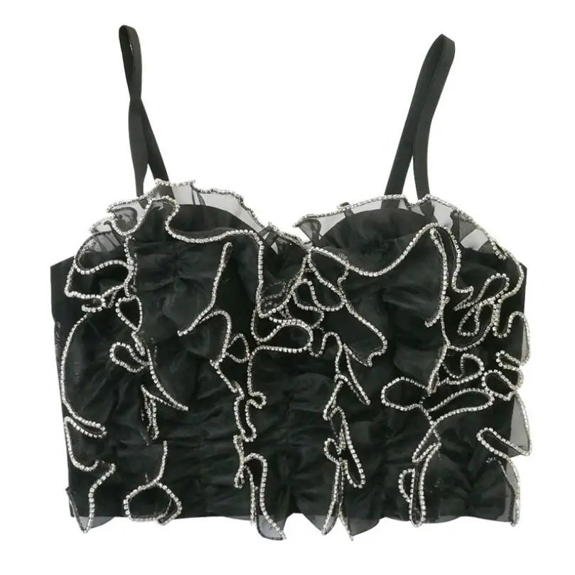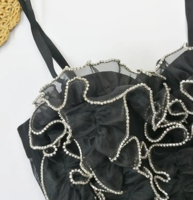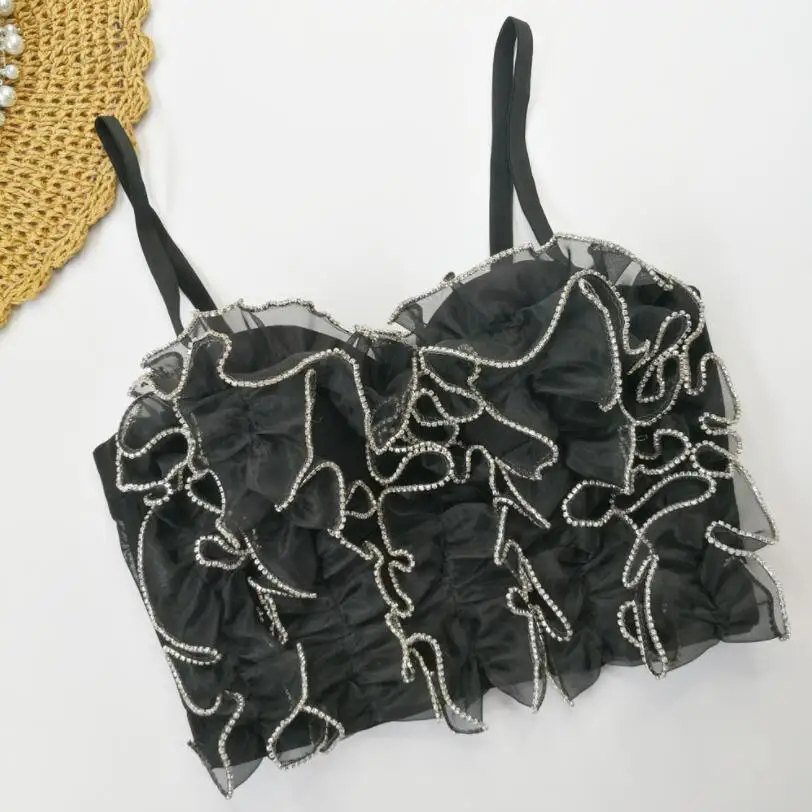 2021 Ruffled Splicing Mesh Camisole Crop Women Backless Vest Slim Corset Gathered Bra Tube Top Sexy Diamond Female Bustier p465