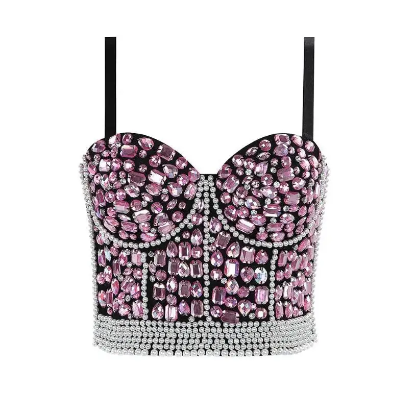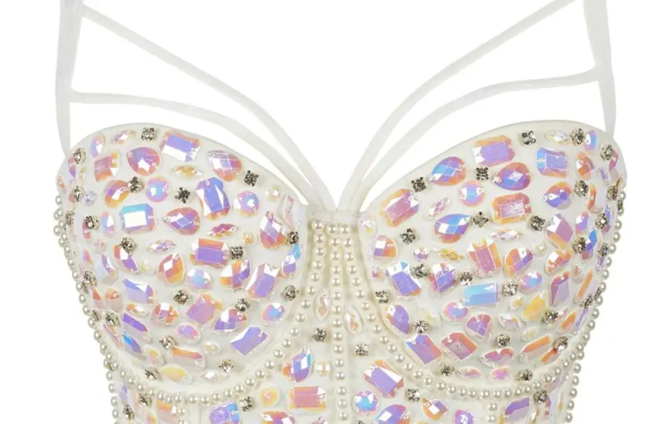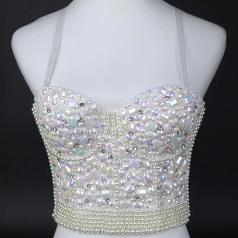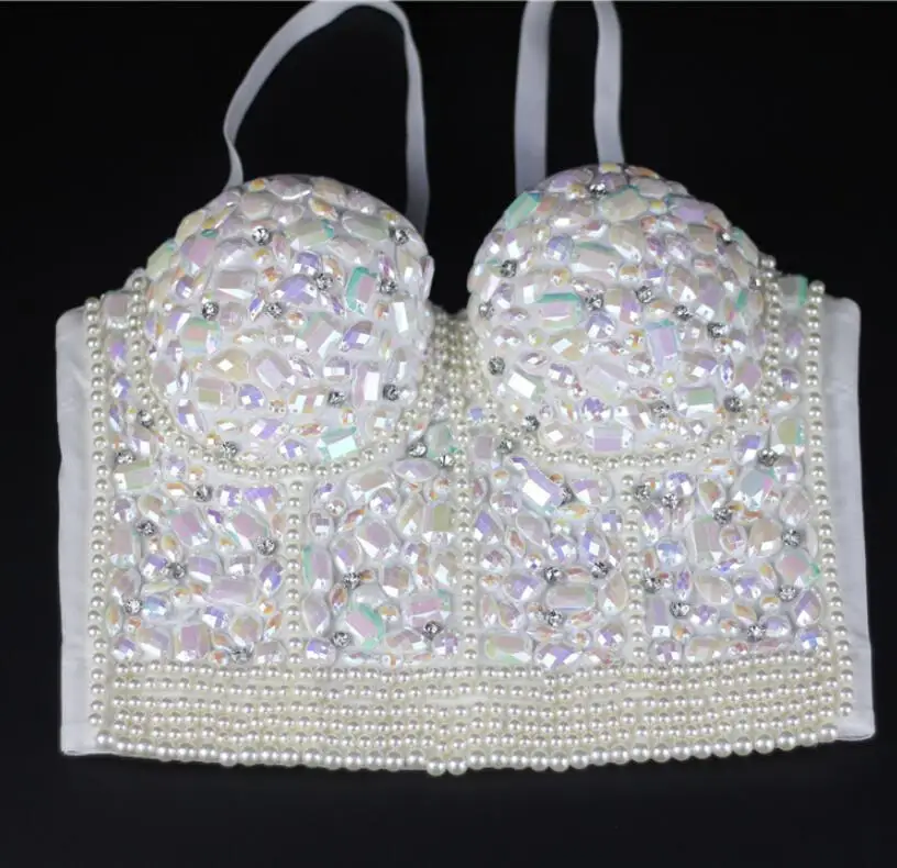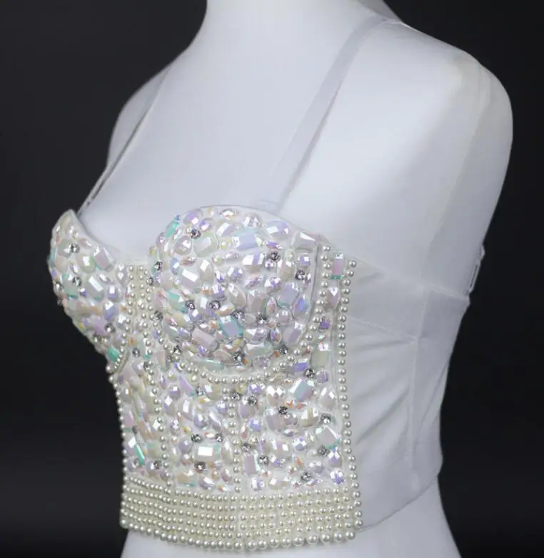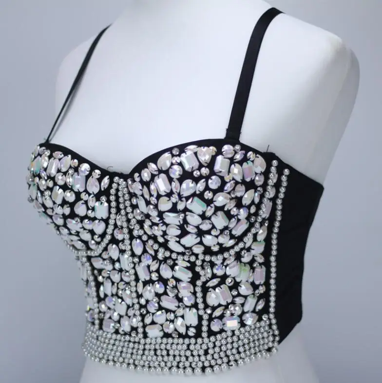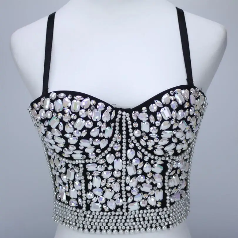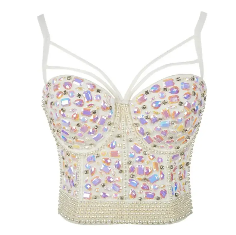 2021 Sexy Colorful Beaded Crystal Diamonds Bralette Bras For Women Lolita Push Up Bra Bustier Crop Vest Top p1269