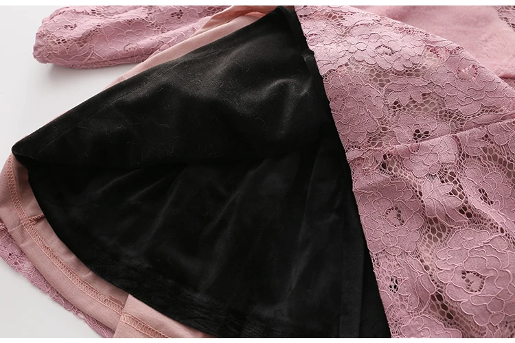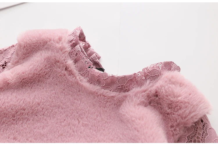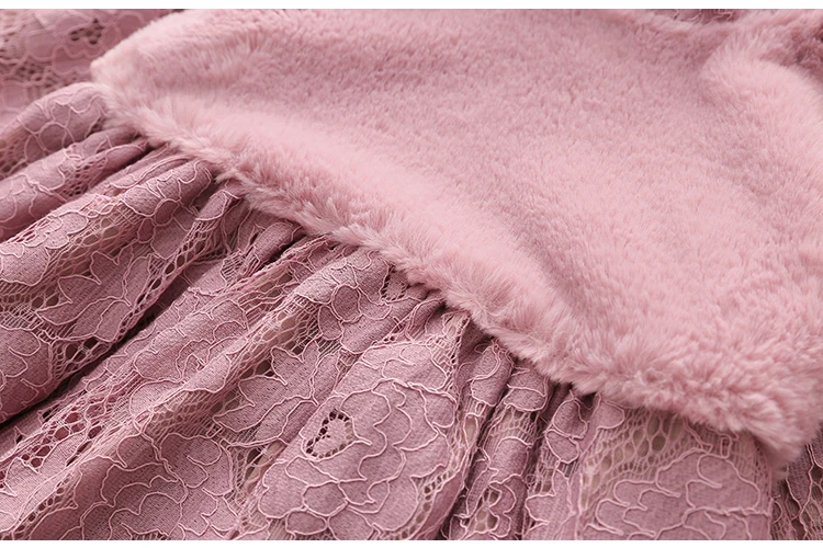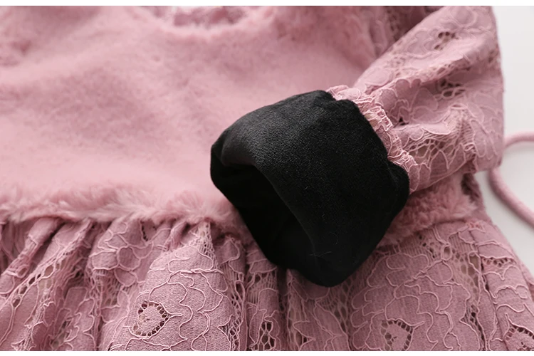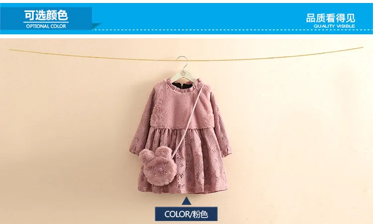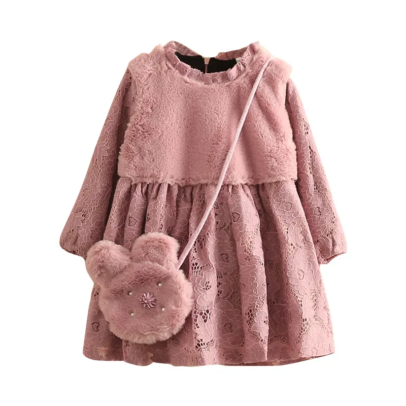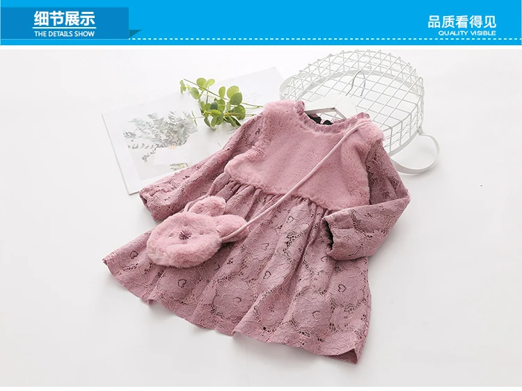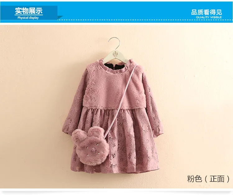 Thickening Plus Velet Kids Baby Girls Lace Dress With Bag