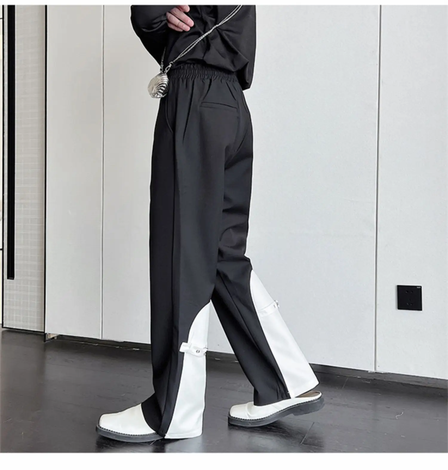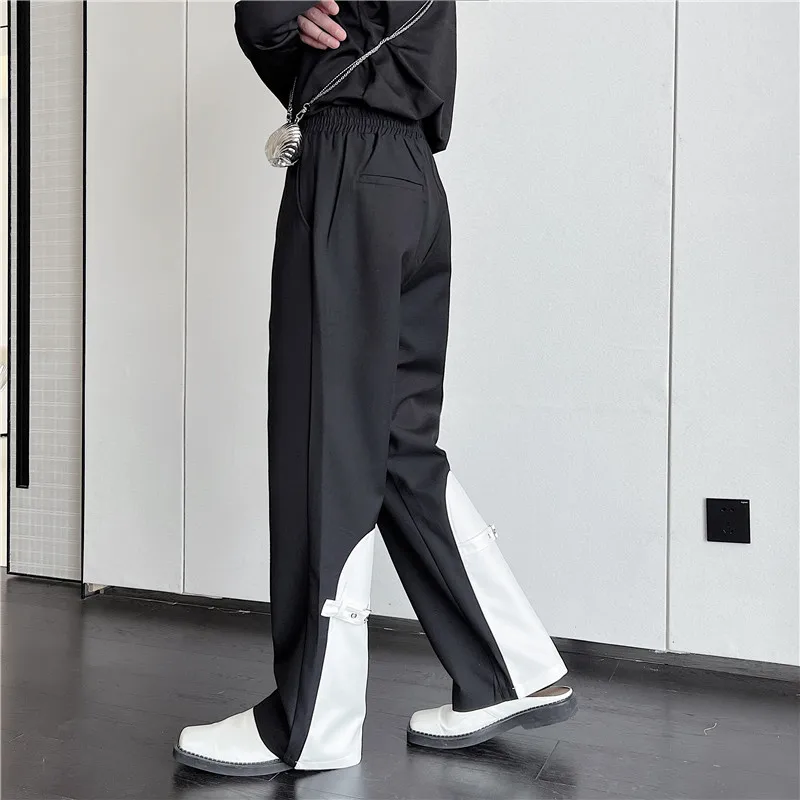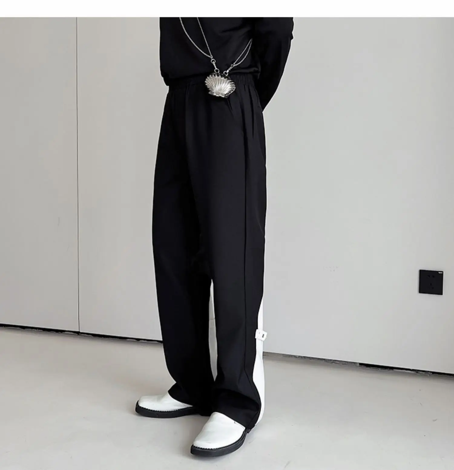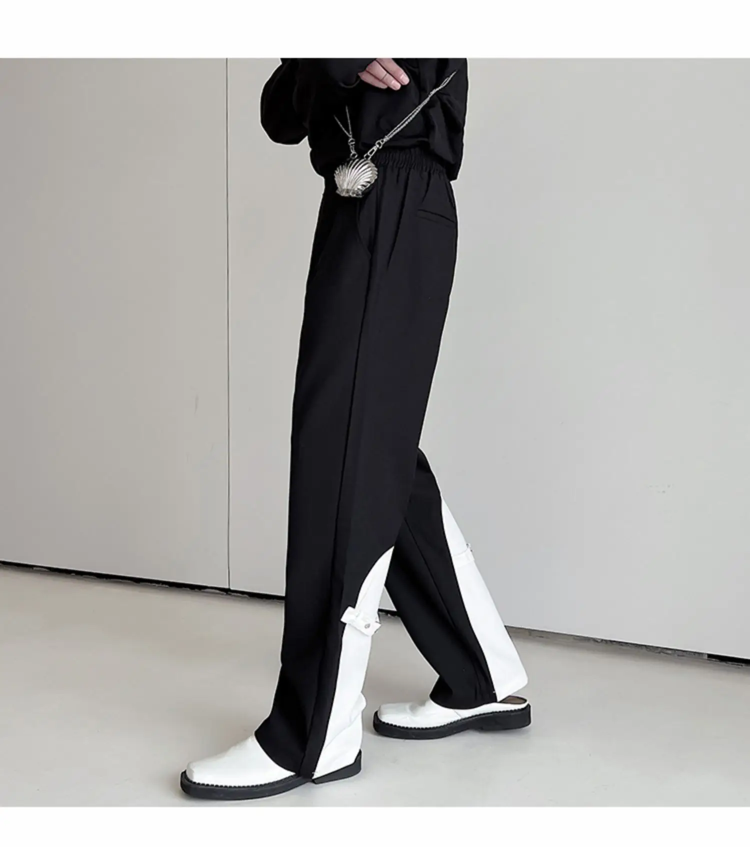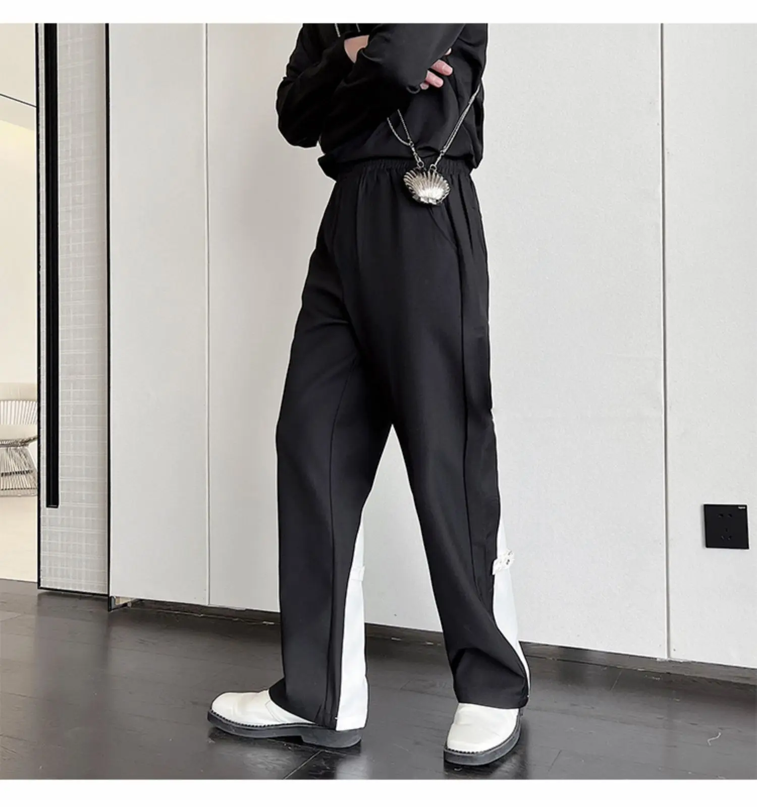 2022 Autumn Korean style personality black white mixed color Pants men casual loose straight pants men,size M-XL
