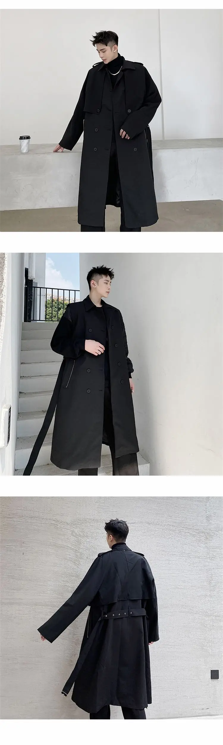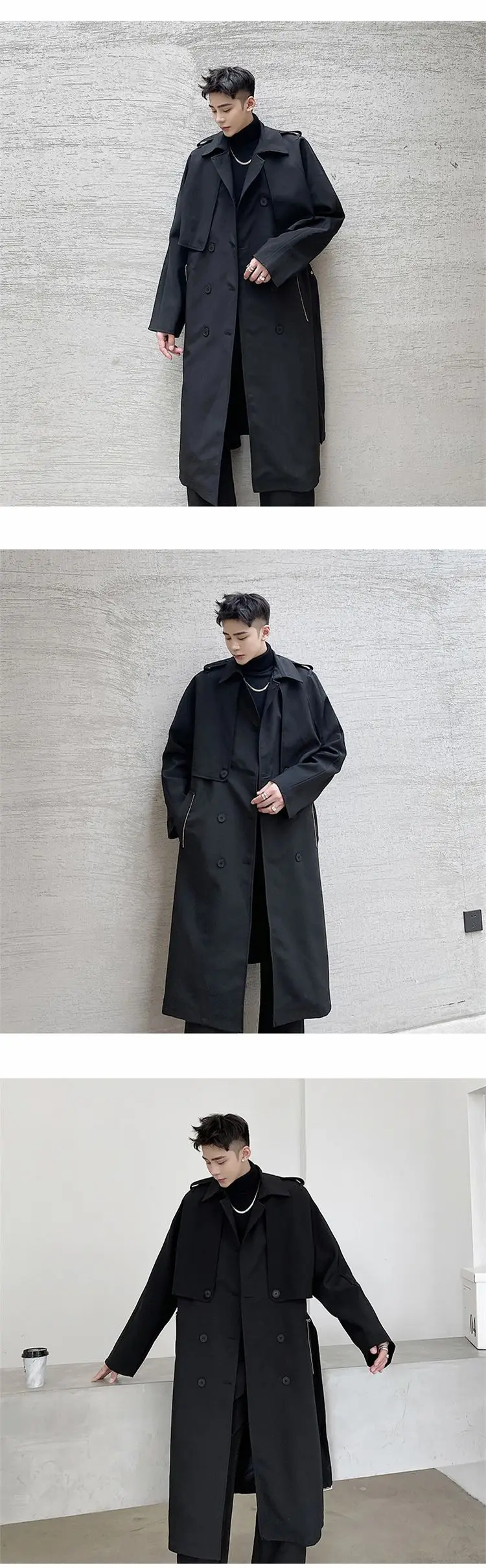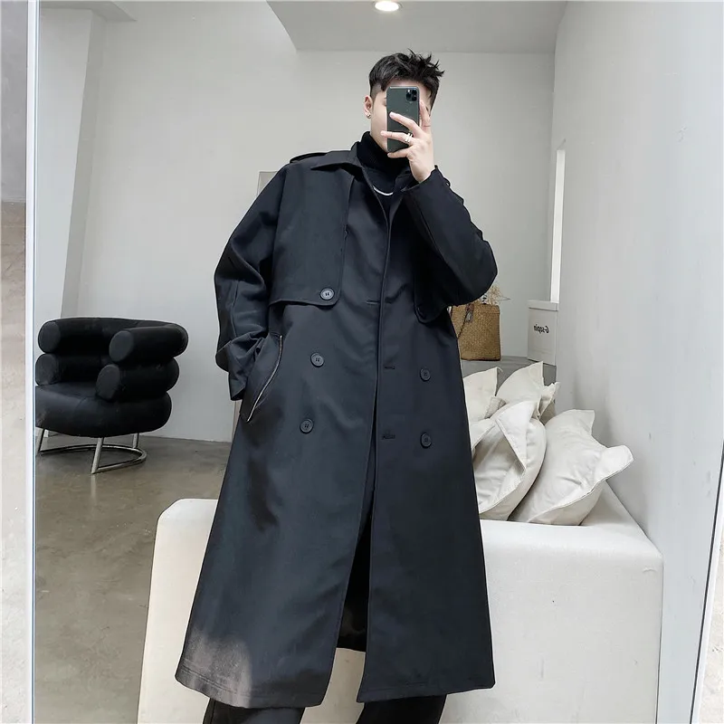 2022 Autumn Korean style personality Detachable two piec trench men casual loose Double breasted Windbreaker coats for men M-XL