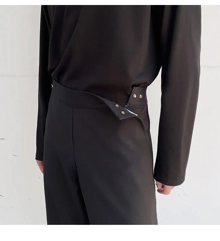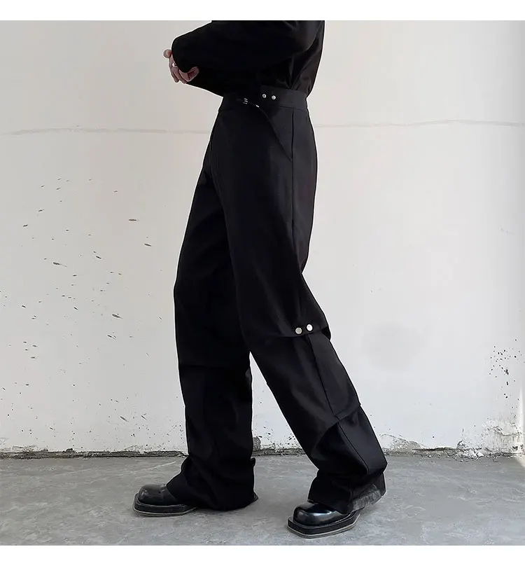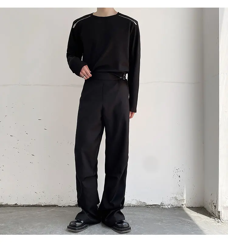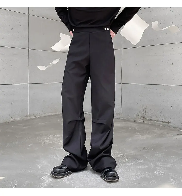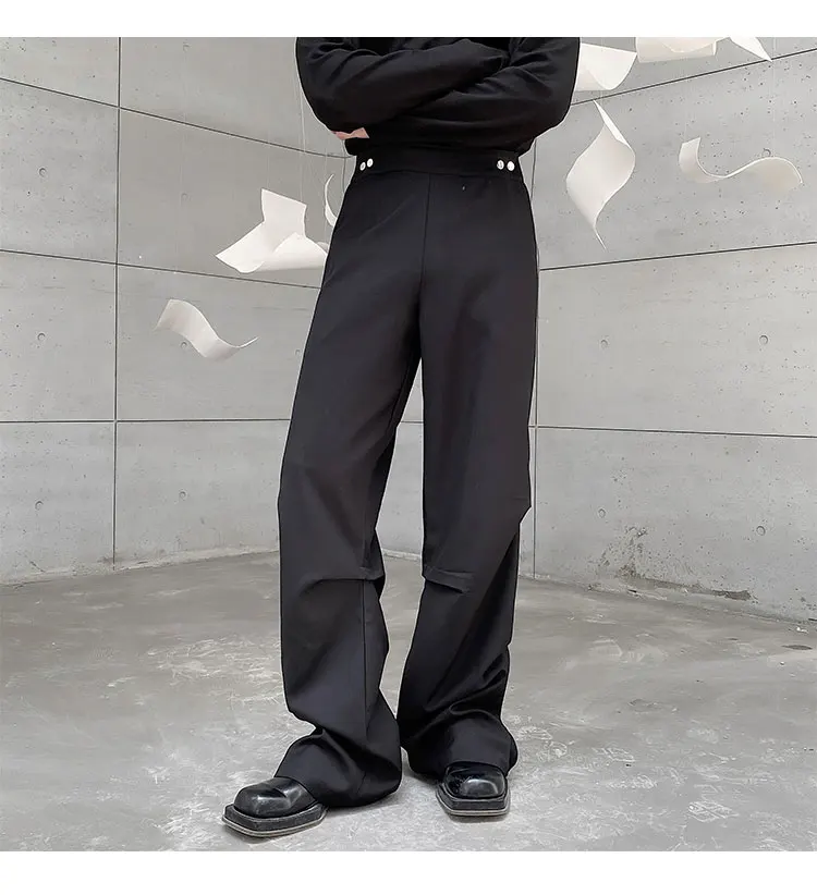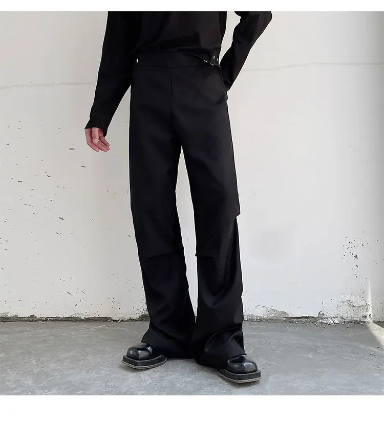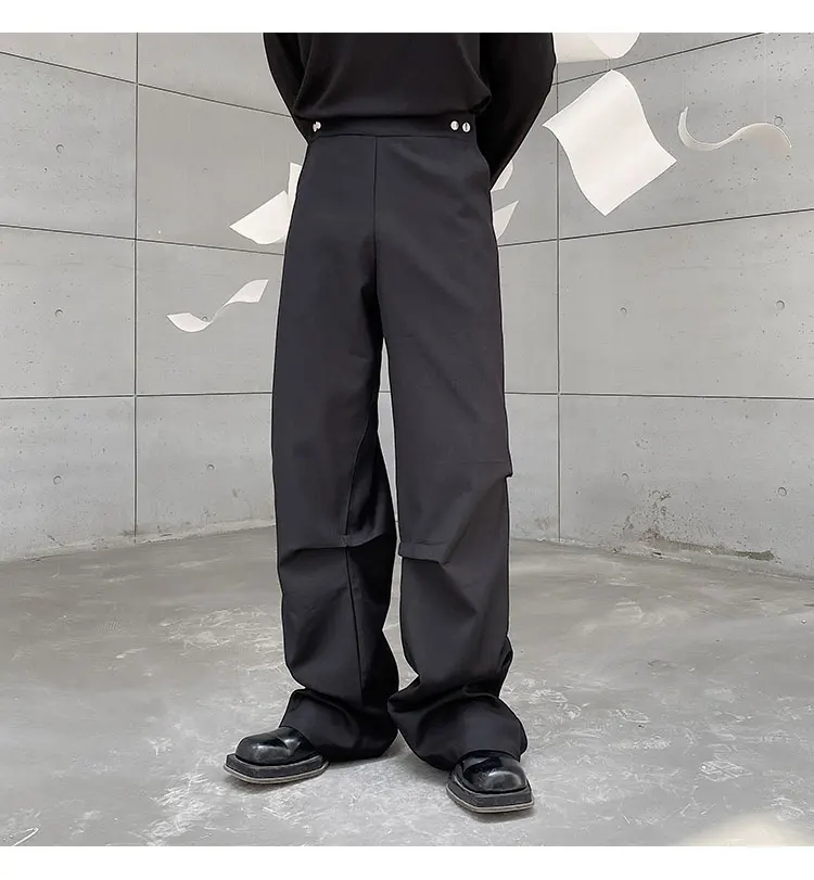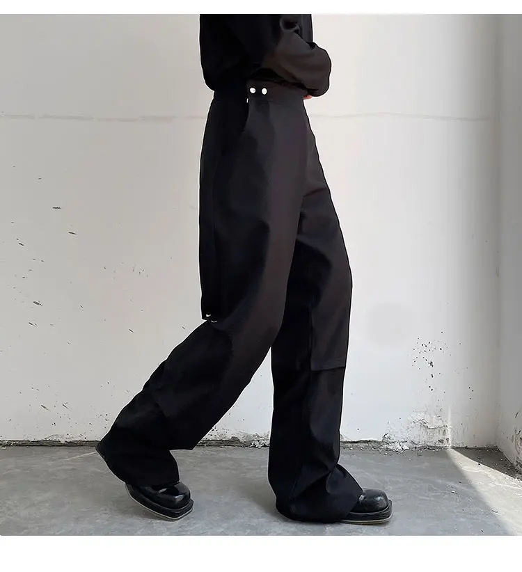 2022 Autumn Korean style personality waist design straight Pants men casual loose pleated pants men,size M-XL