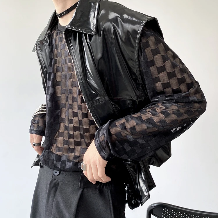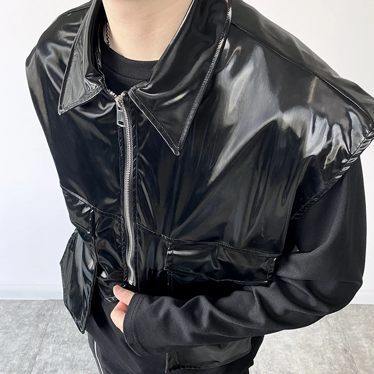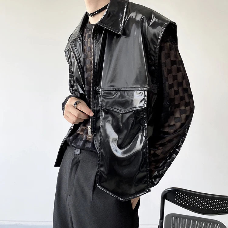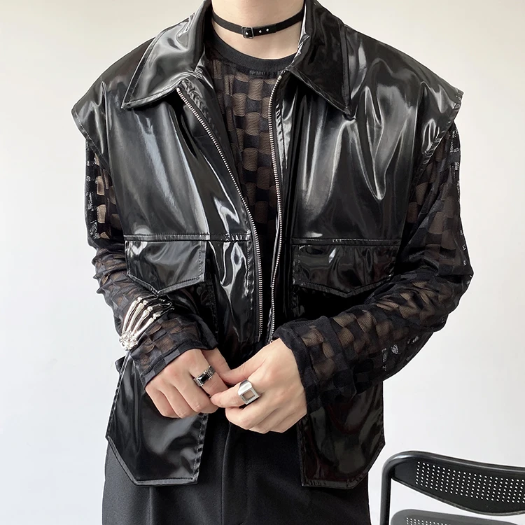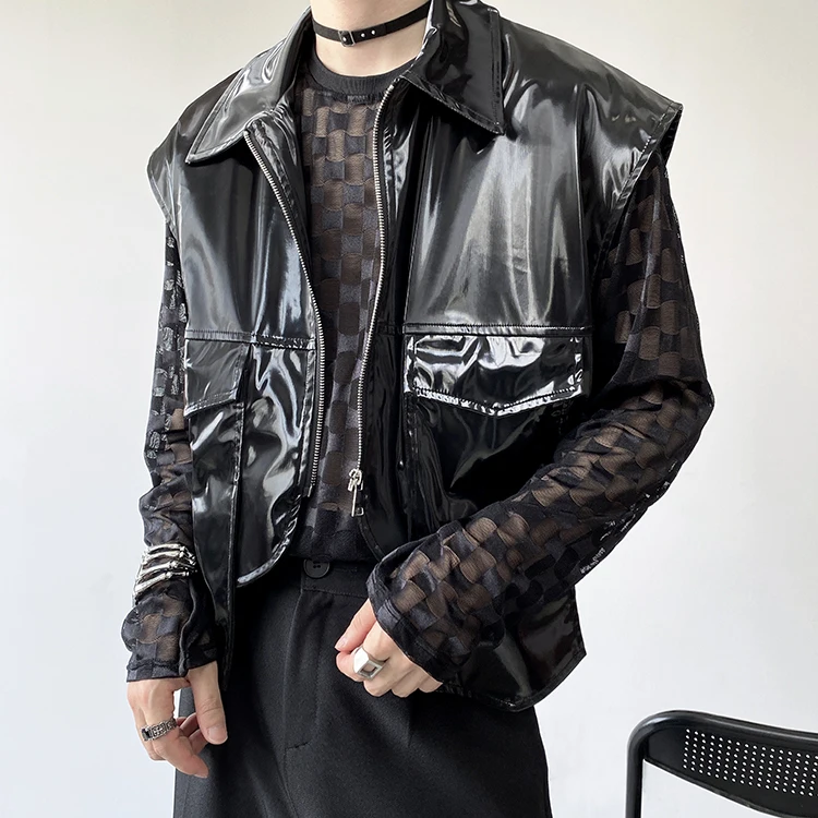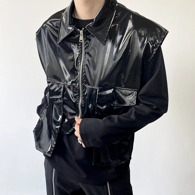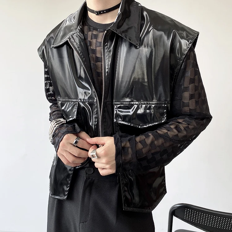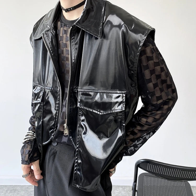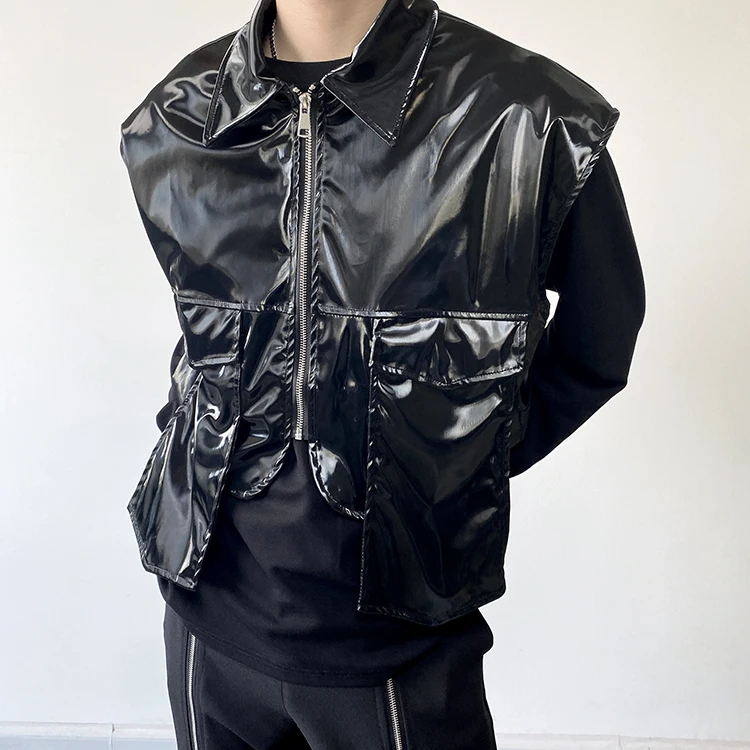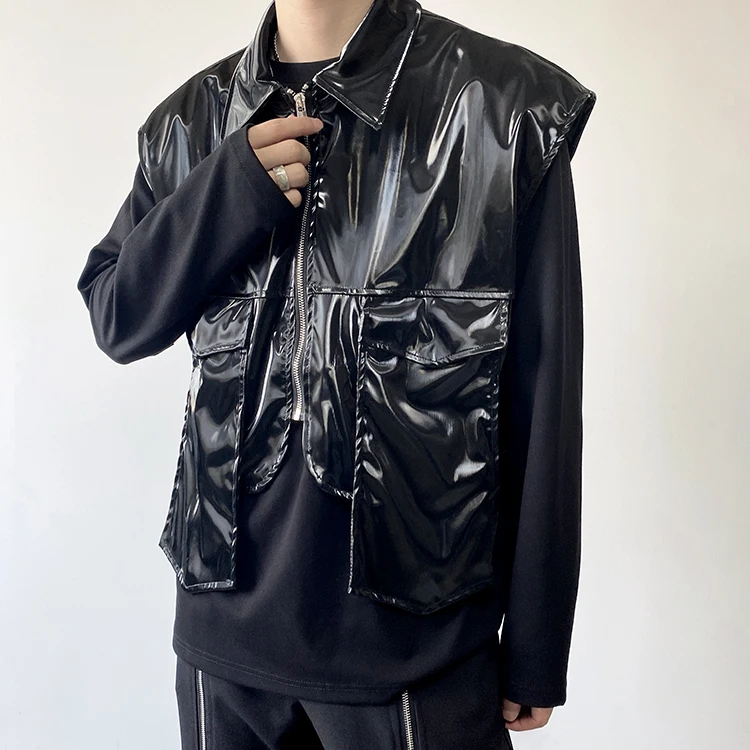2022 Autumn Korean style Personalized metallic feeling design vest men casual loose black Waistcoat for men