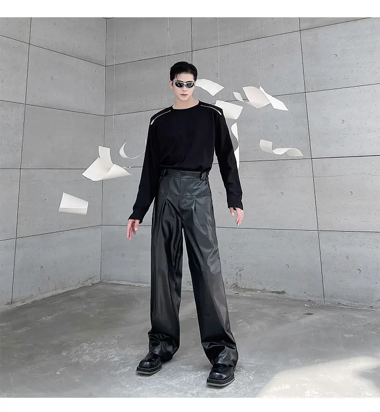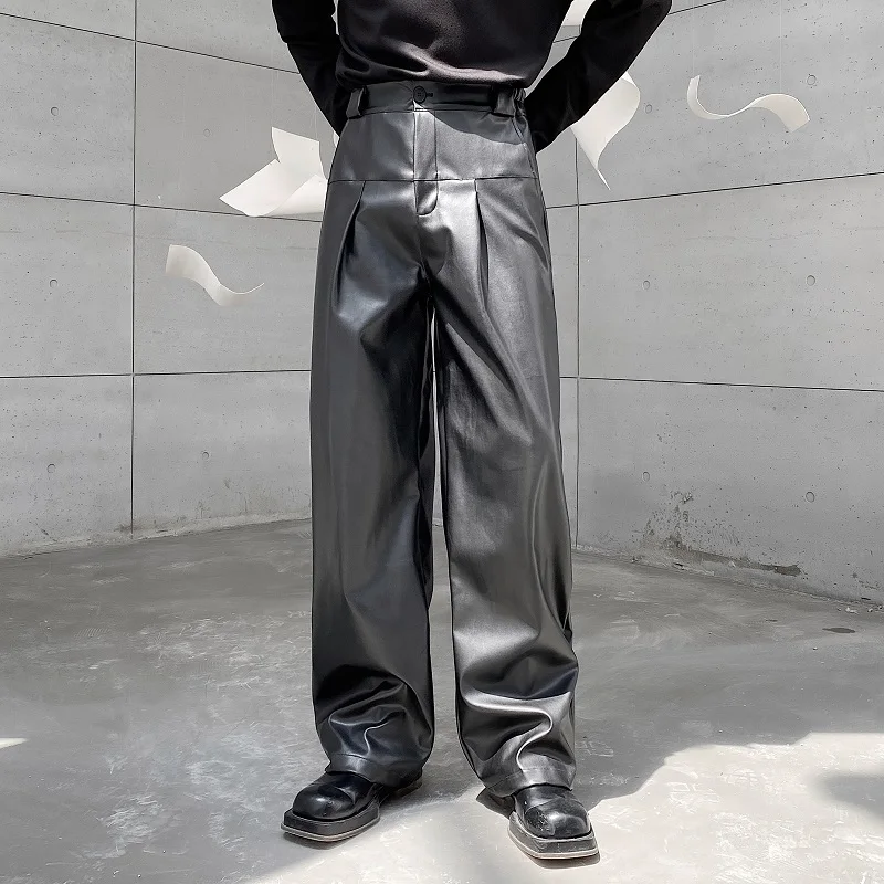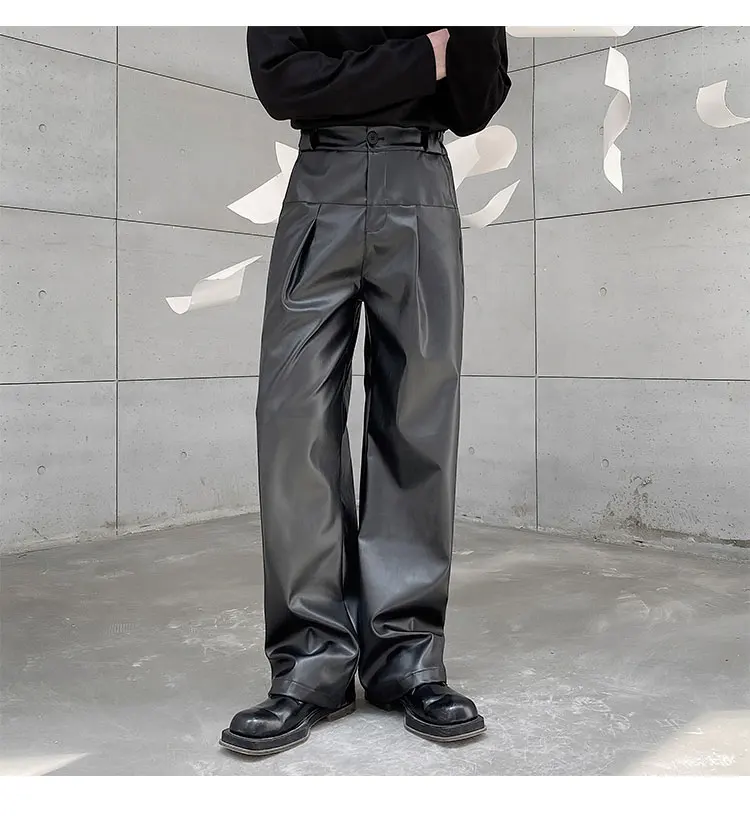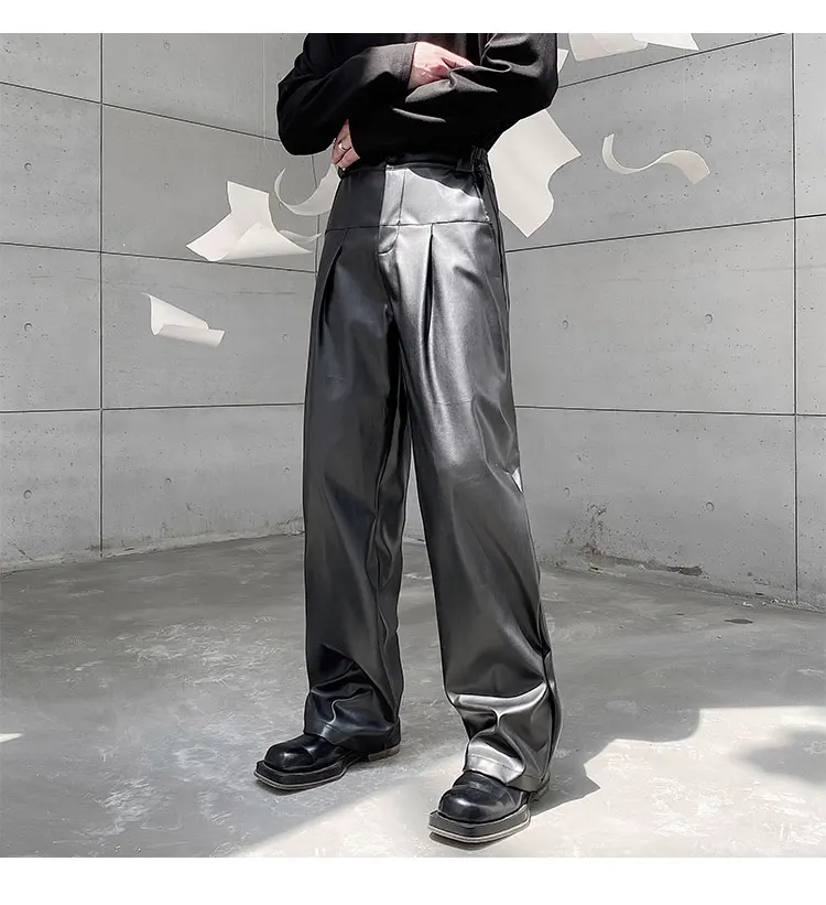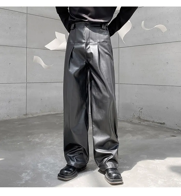 2022 Autumn Korean style PU leather straight pants men casual loose wild PU leather pants for men,M-XL