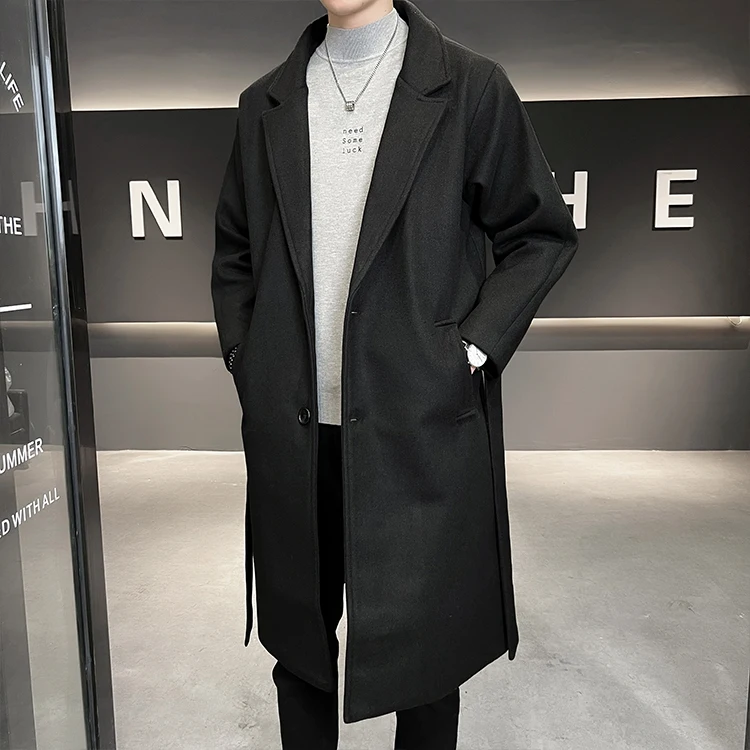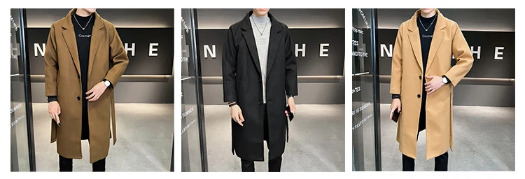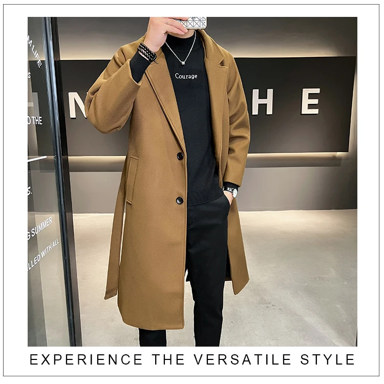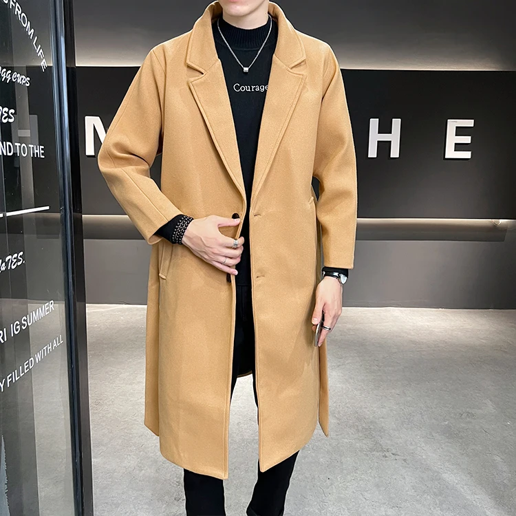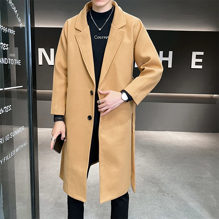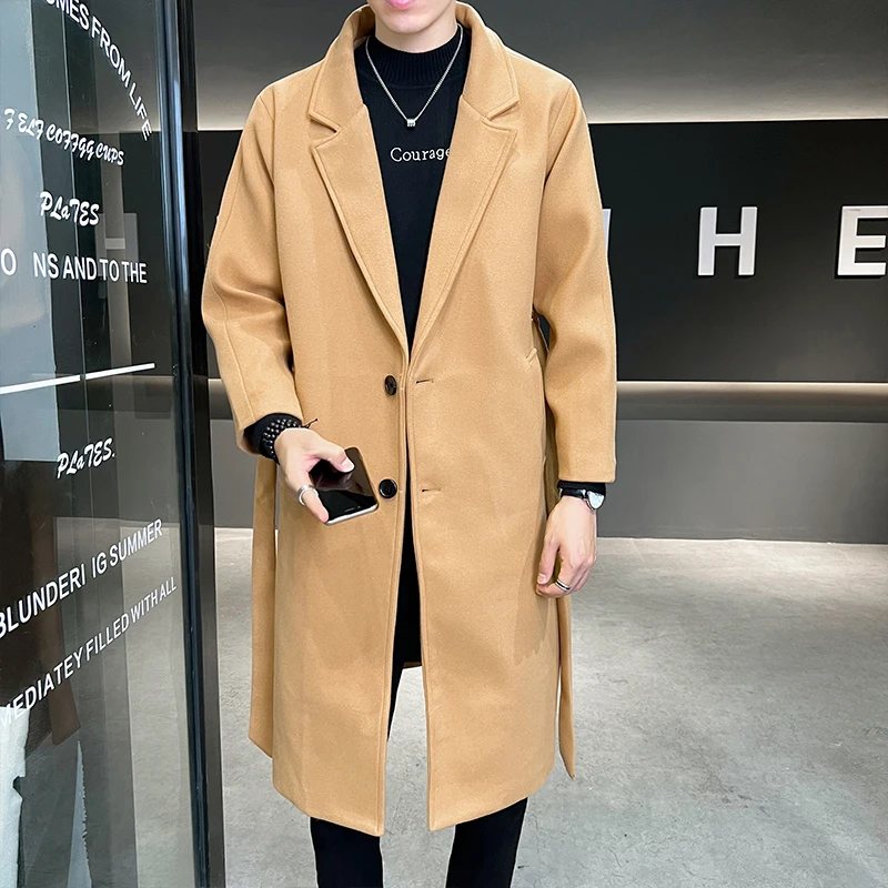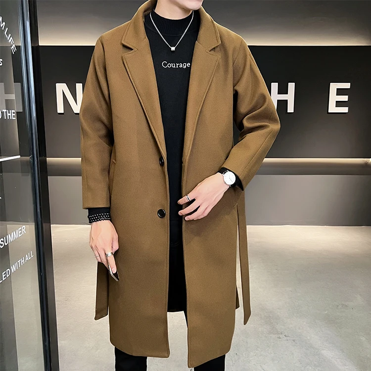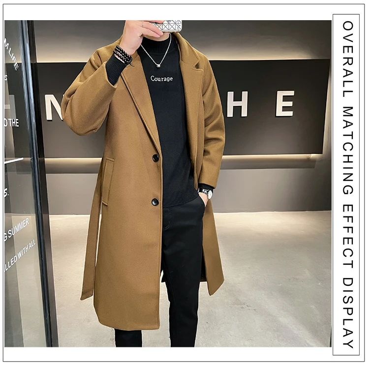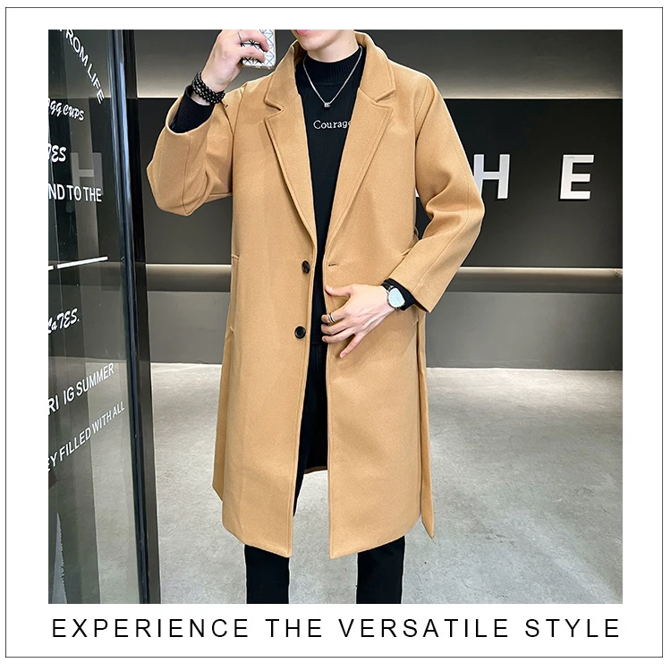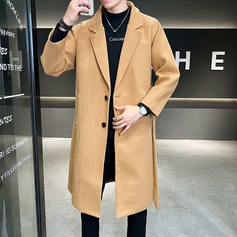 2022 Autumn Windbreaker Khaki Long Trench Coat For Mens Quality Fall Jackets Stylish Woolen Winter Overcoats Fashionable Coats