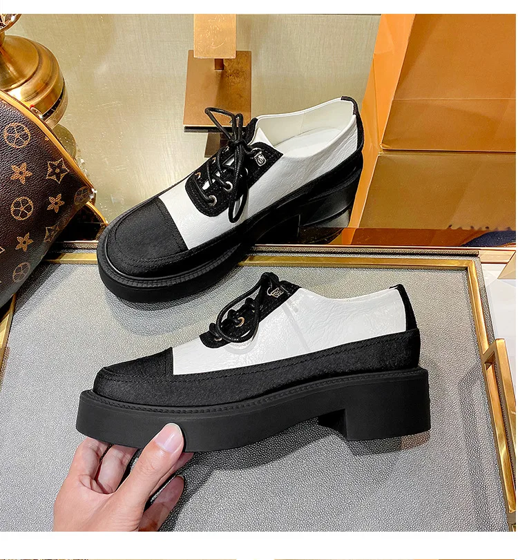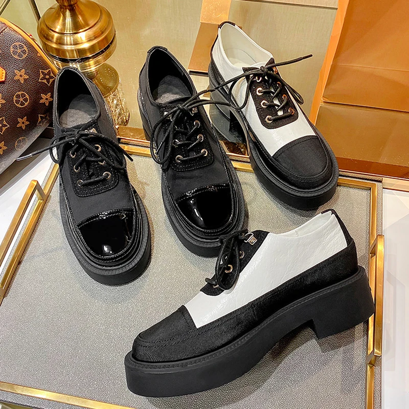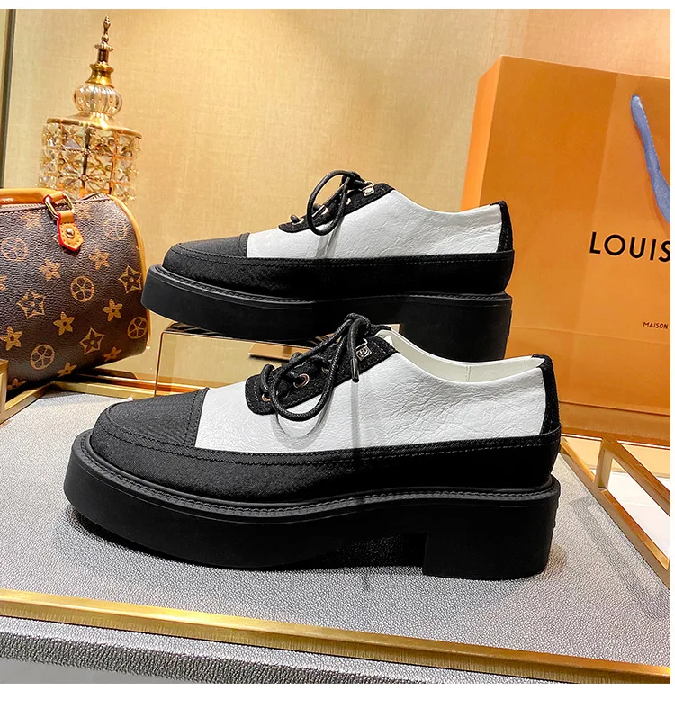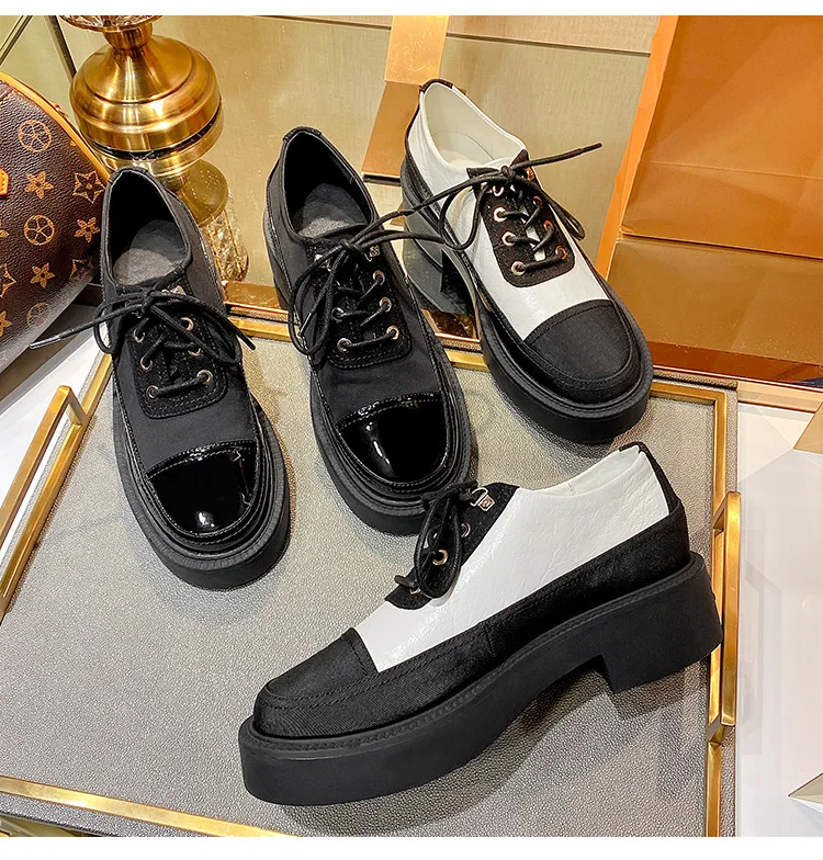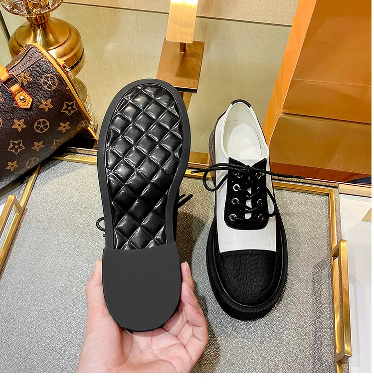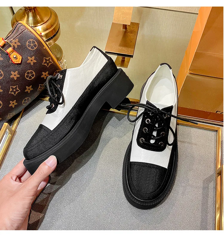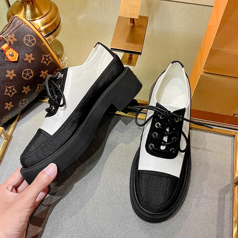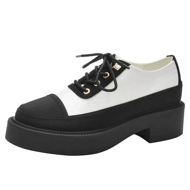 2022 Lolita Sneakers Women Mix Color Black/White Oxfords Thick Heels Flats Platform Feminina Loafers Lace-Up Creepers Derby Shoe