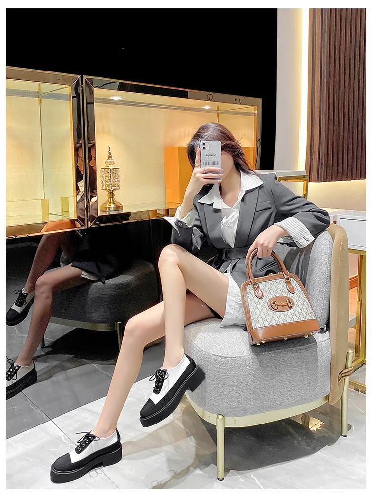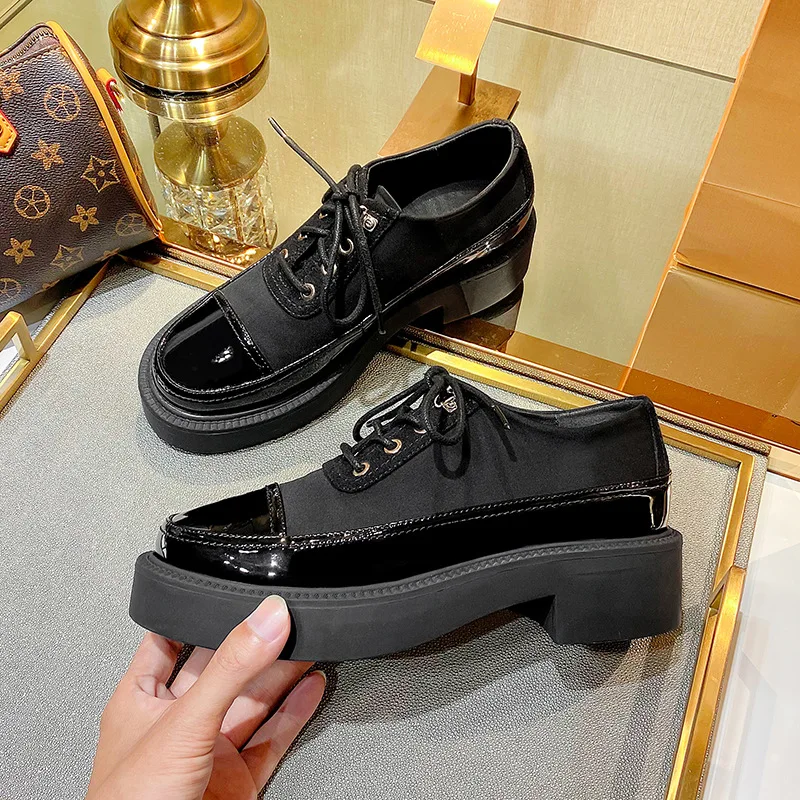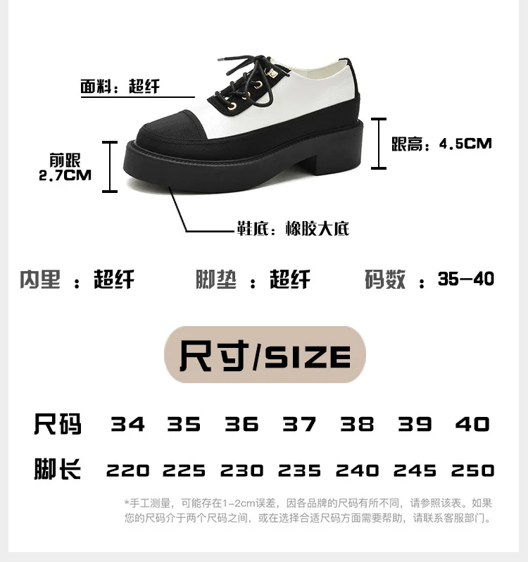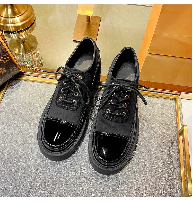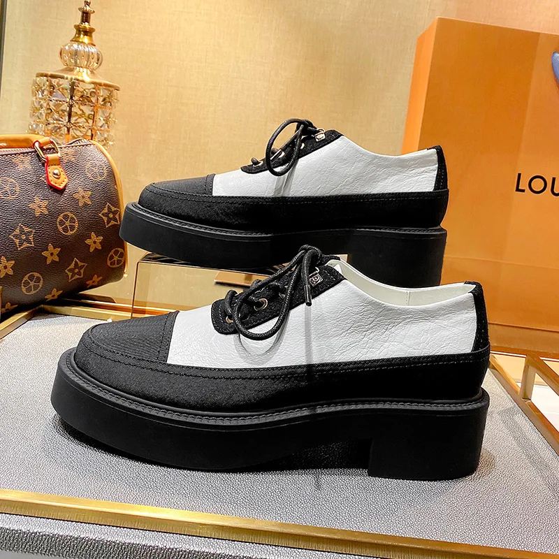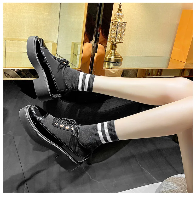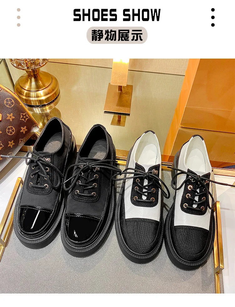 2022 Lolita Sneakers Women Mix Color Black/White Oxfords Thick Heels Flats Platform Feminina Loafers Lace-Up Creepers Derby Shoe