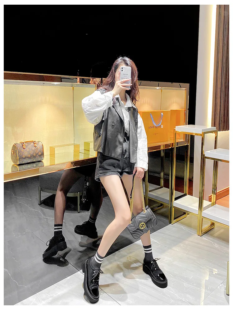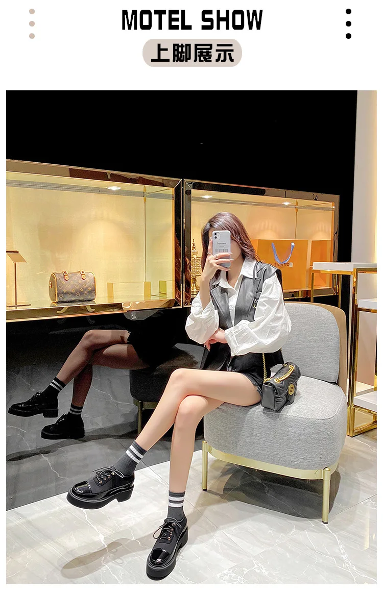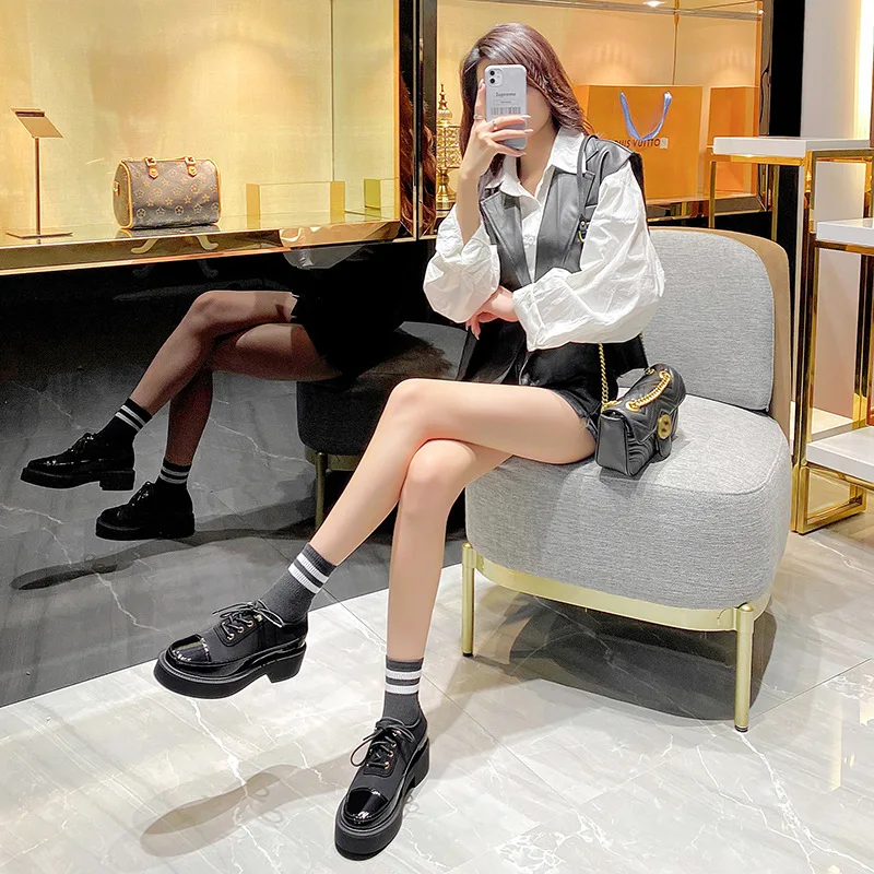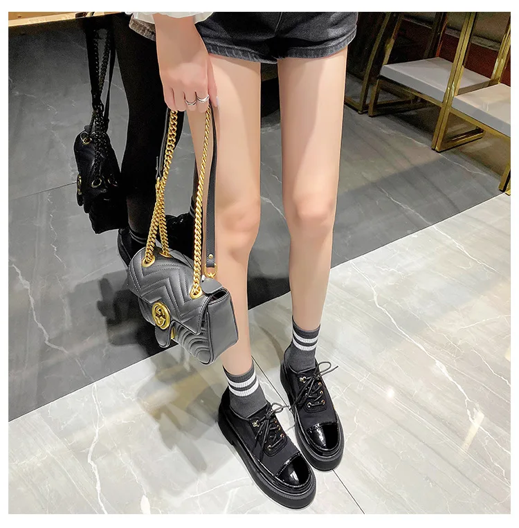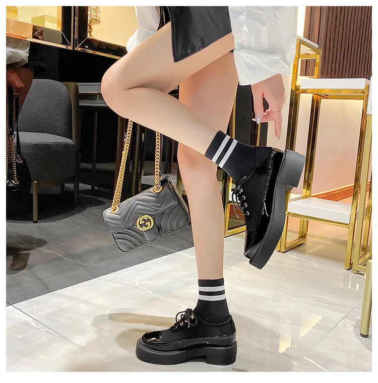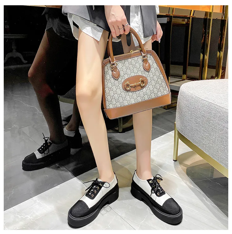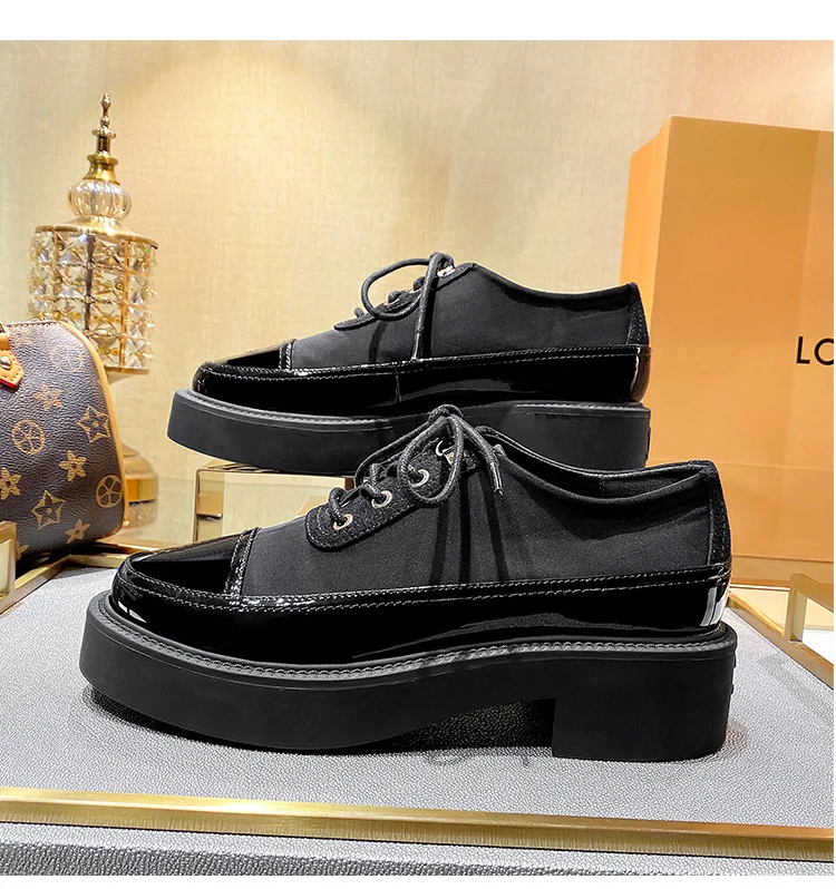 2022 Lolita Sneakers Women Mix Color Black/White Oxfords Thick Heels Flats Platform Feminina Loafers Lace-Up Creepers Derby Shoe