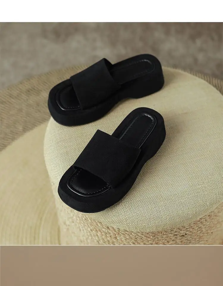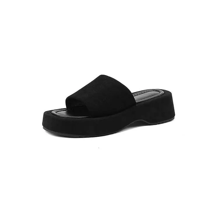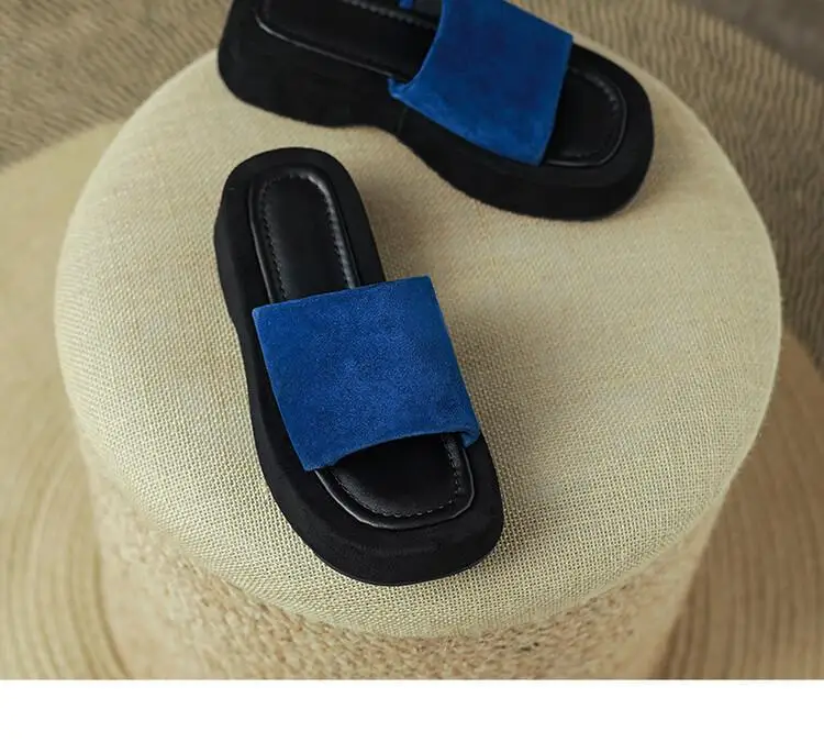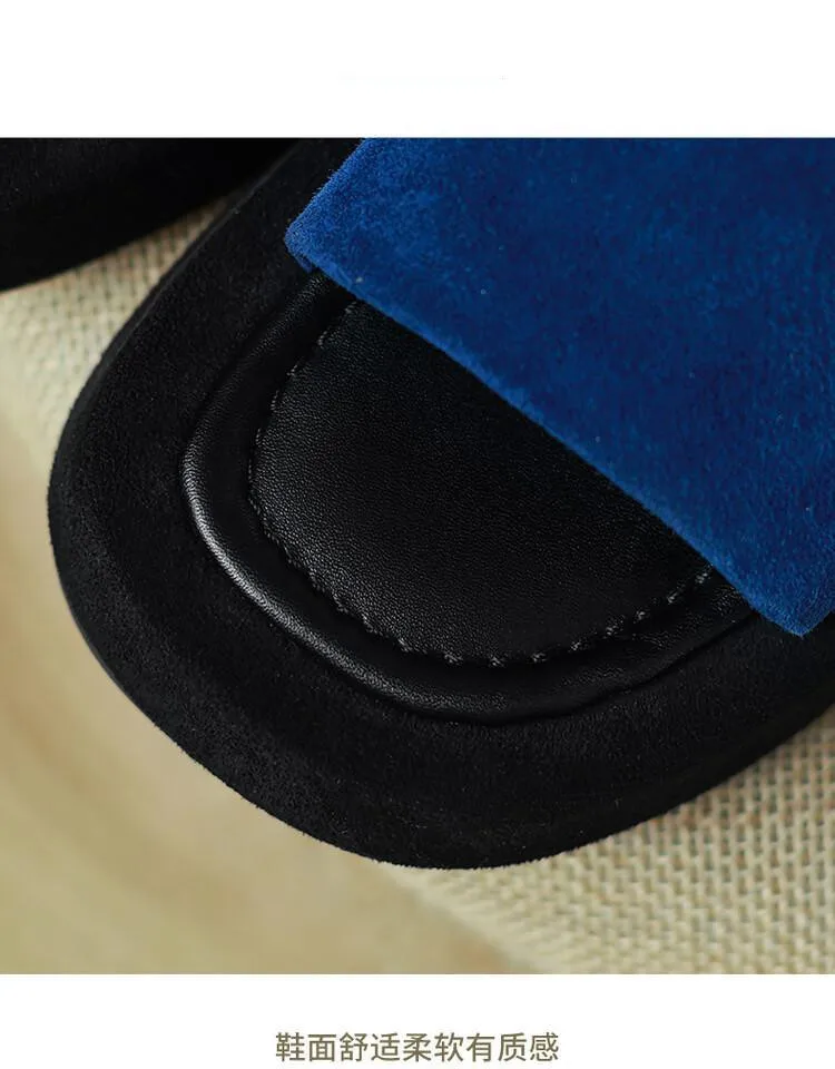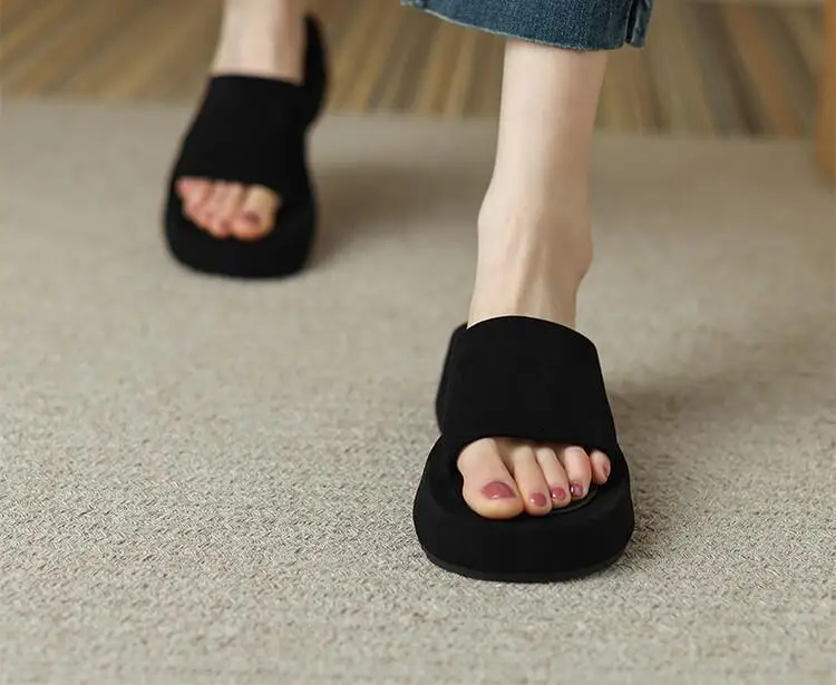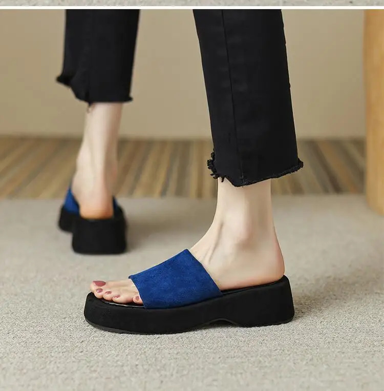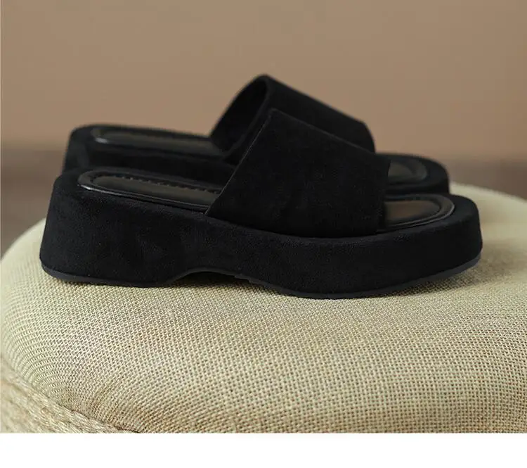 2022 luxury suede leather platform slippers women open toe Roman flip flops thick bottom muffins slides beach shoes for woman