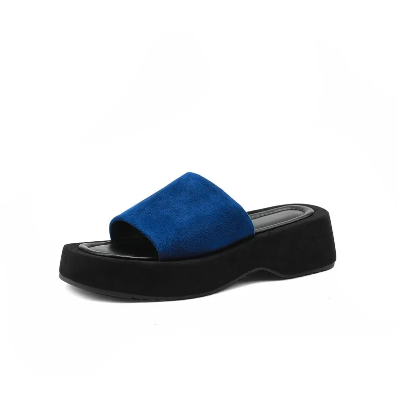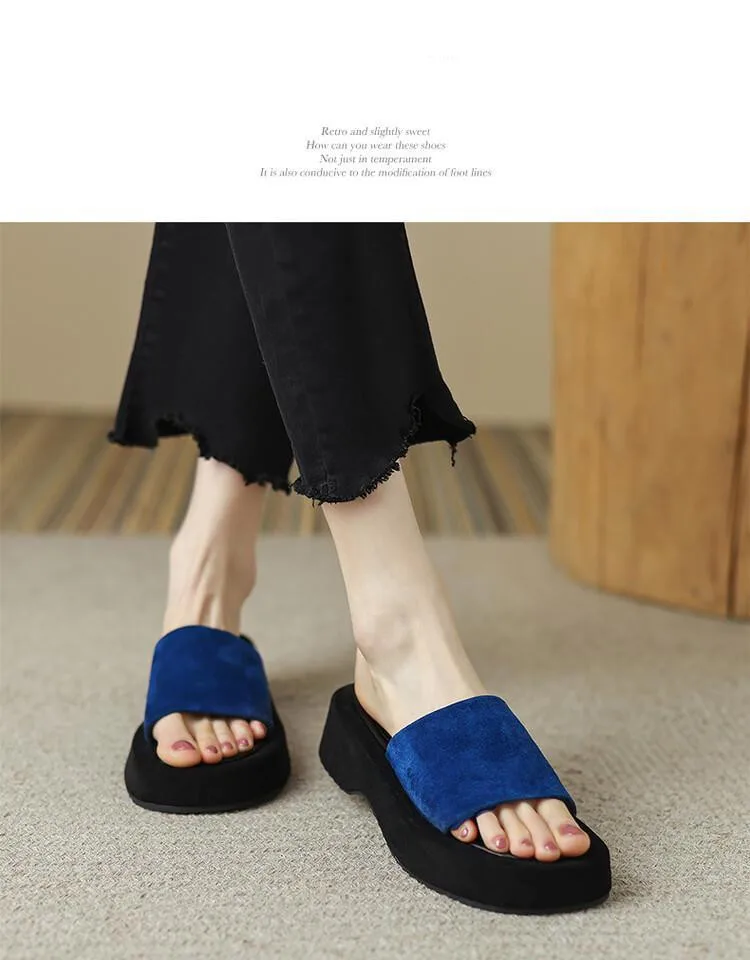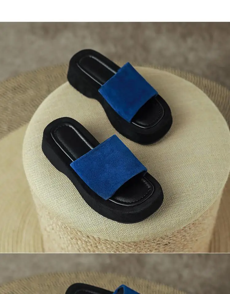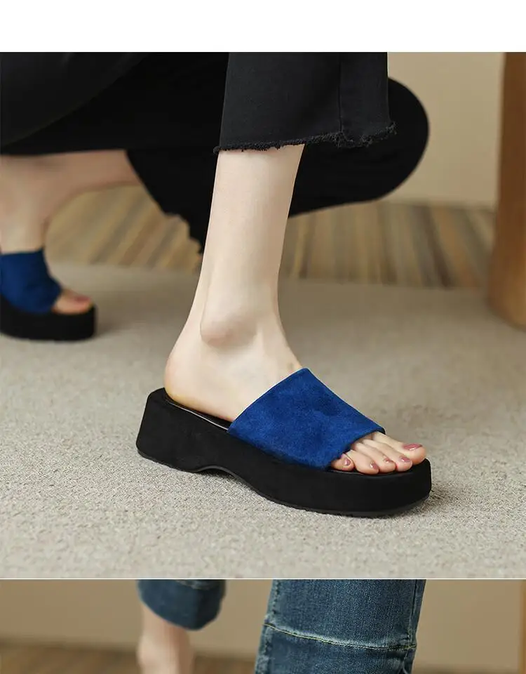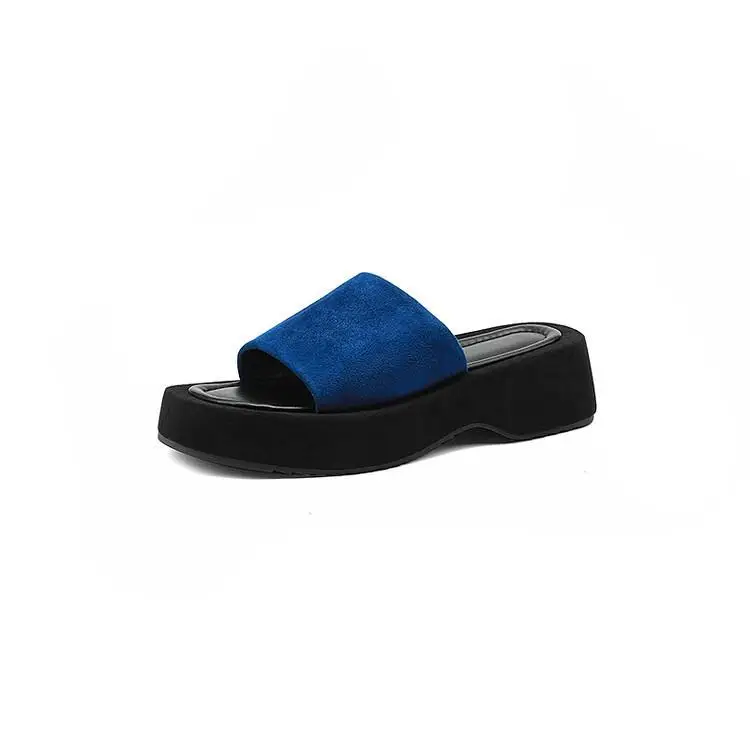 2022 luxury suede leather platform slippers women open toe Roman flip flops thick bottom muffins slides beach shoes for woman