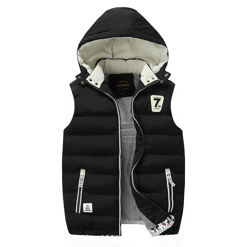 2020 Men’s Vest Autumn Winter New Down Vest Casual Waistcoat Men’s Sleeveless Jacket Warm Overcoats Hat Detachable Plus Size 5XL