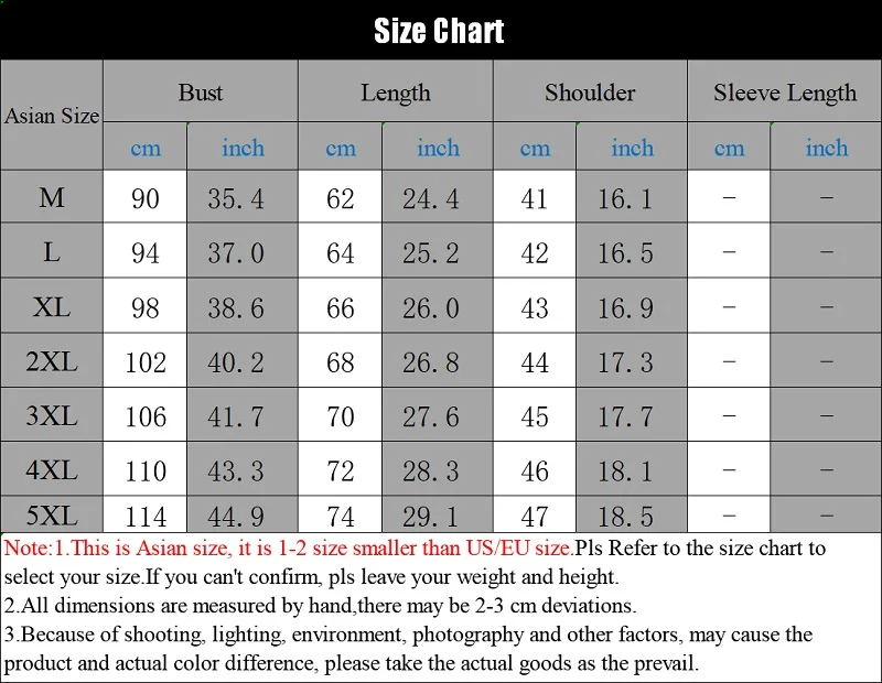 M, L, XL, XXL, 3XL, 4XL, 5XL