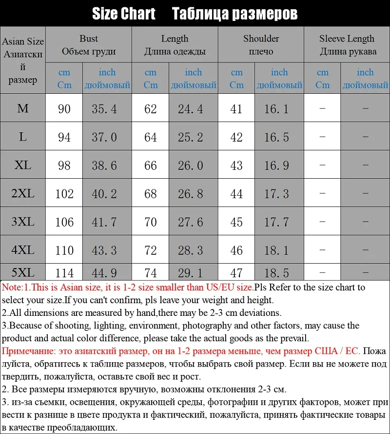 Таблица размеров – азиатский размер (меньше размера США и ЕВРО), возможно, вы могли бы выбрать размер на 1-2 больше, чем обычно.