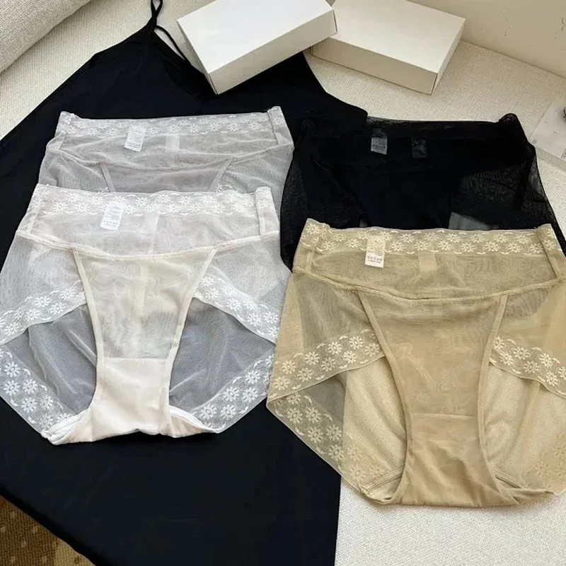 2022 New High-waisted Ultra-thin Sexy Four-piece Lace Panties