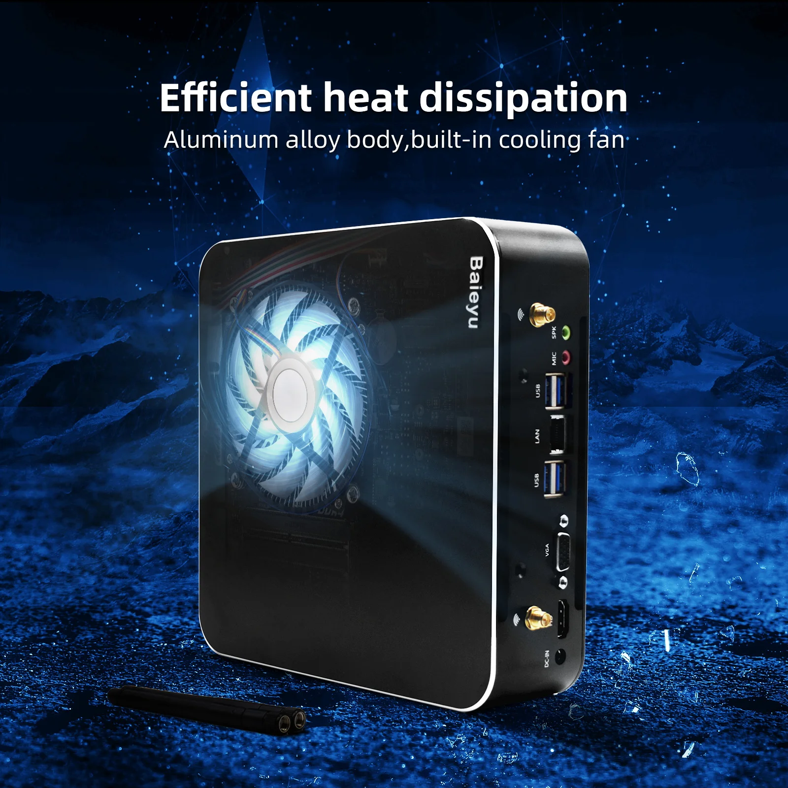 Mini PC size 198x 198 x 55 mm Package size 320 x 260 x 80mm |