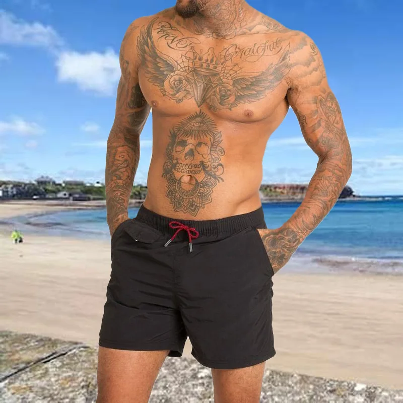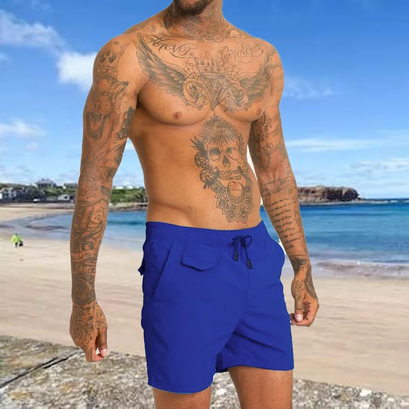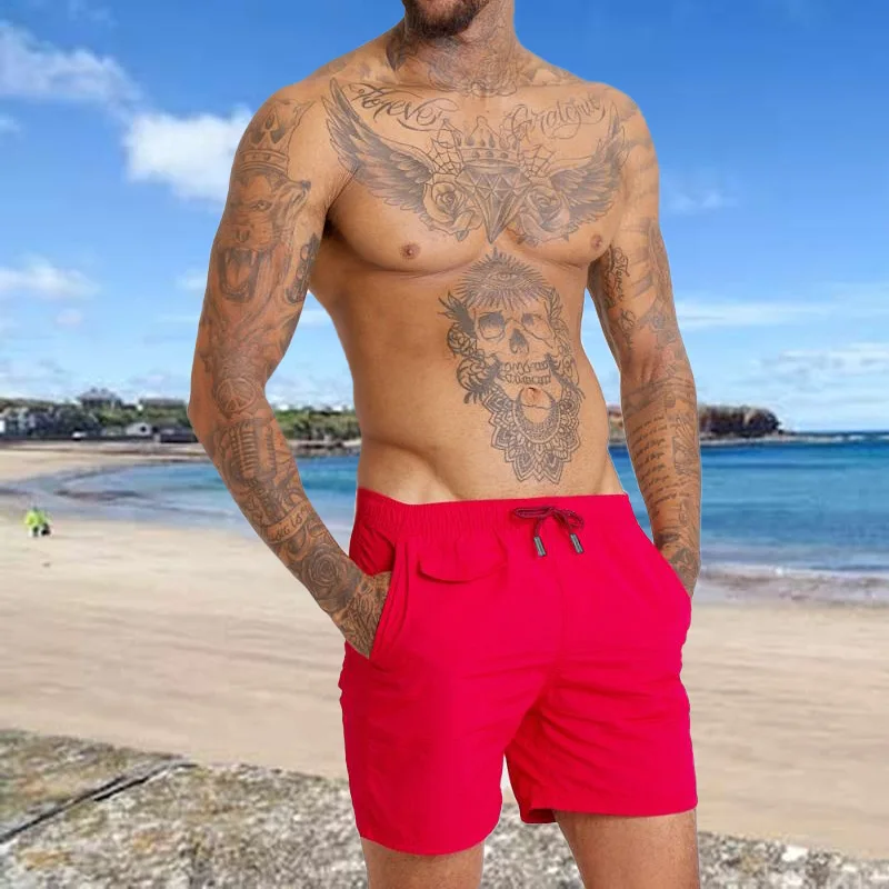 2022 Spring New Style Beach Pants Solid Color Quarter Men’s Casual Shorts Back Pocket Zipper Beach Pants Elastic Swimming Trunks