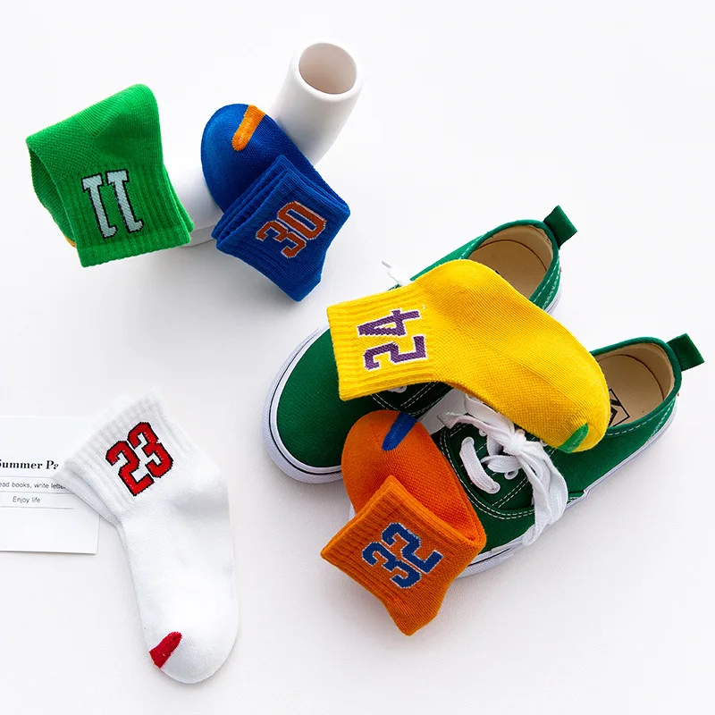 2022 Summer New Children ‘S Socks Children ‘S Digital Boys And Girls Solid Color Sports Cotton Socks Breathable Mesh Tube Socks