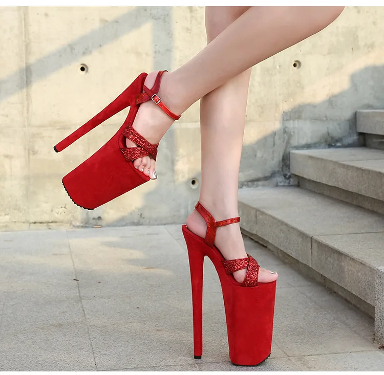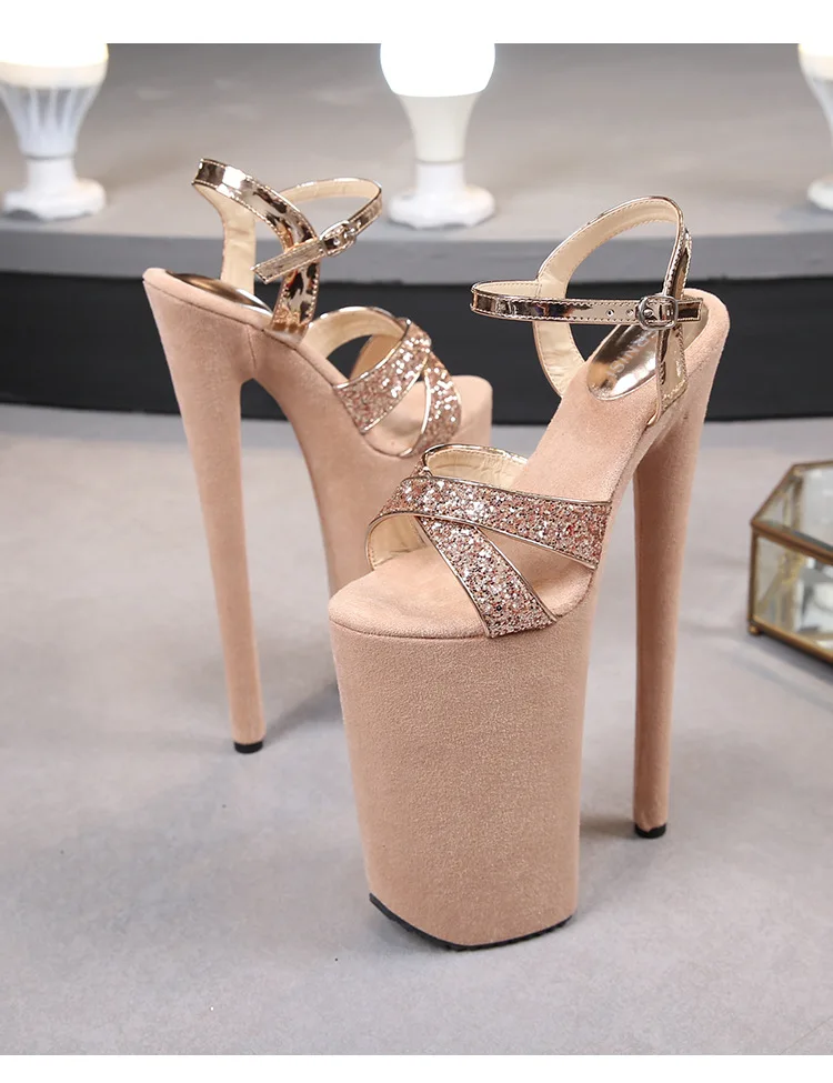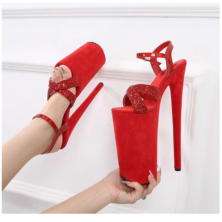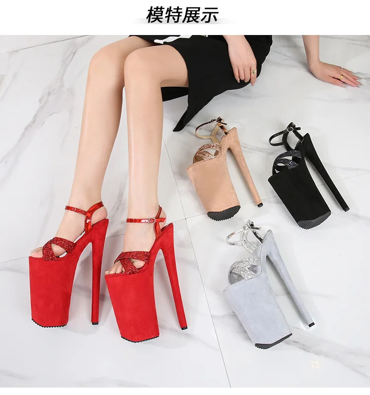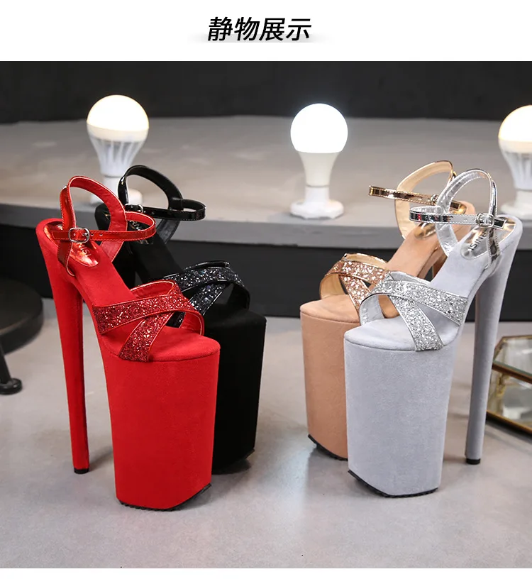 2022 Super High Waterproof Platform Sandals Women Fish Mouth Open Toe Pole Dance High Heels 26CM Nightclub Catwalk Shoe