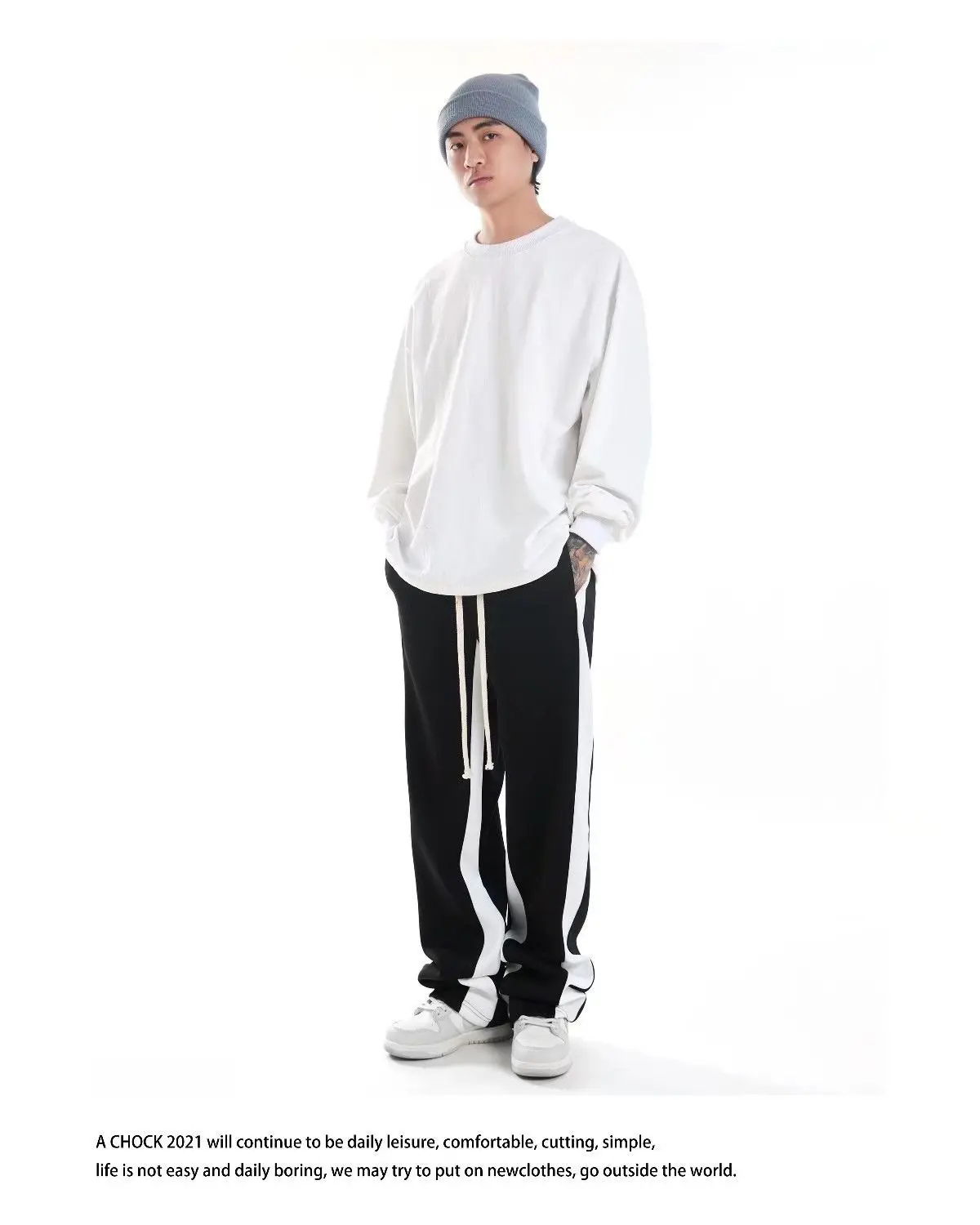 2022 Vertical Straight Sweatpants Men’s Spring Summer Side Stripes Handsome Versatile Wide Leg Loose Fashion Casual Pants