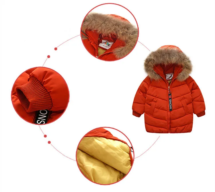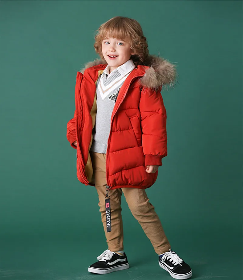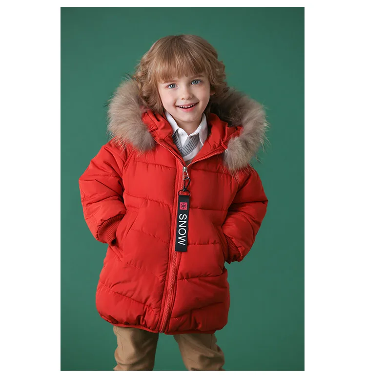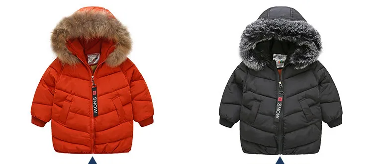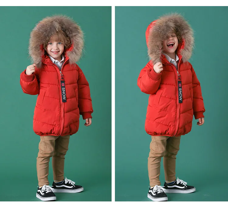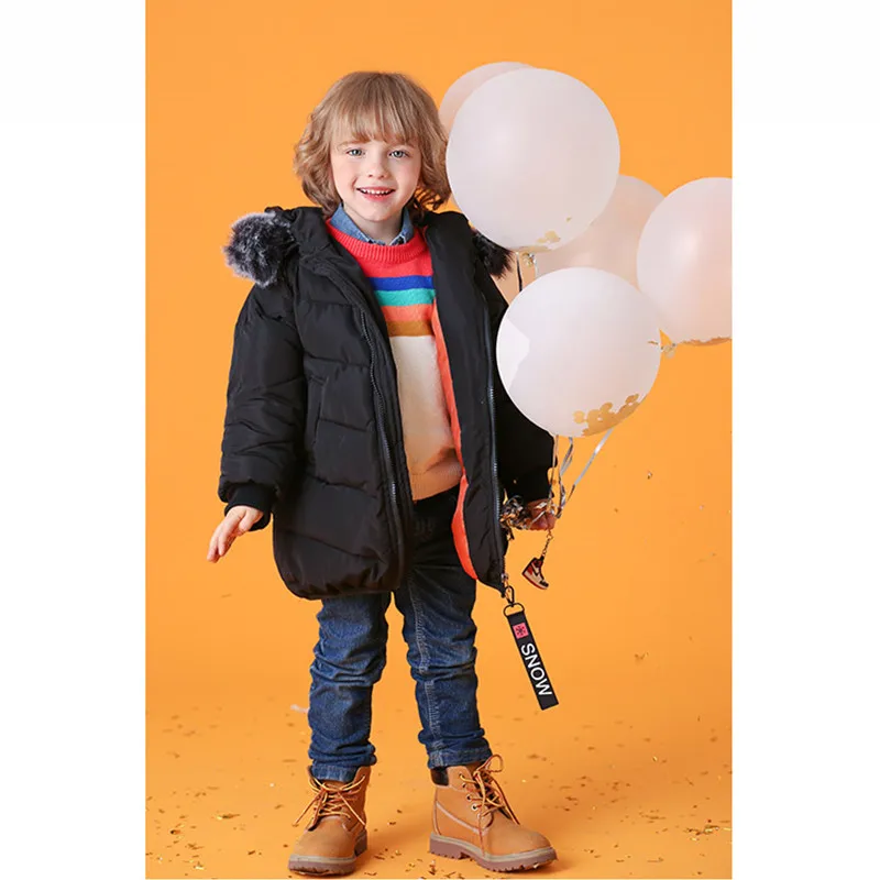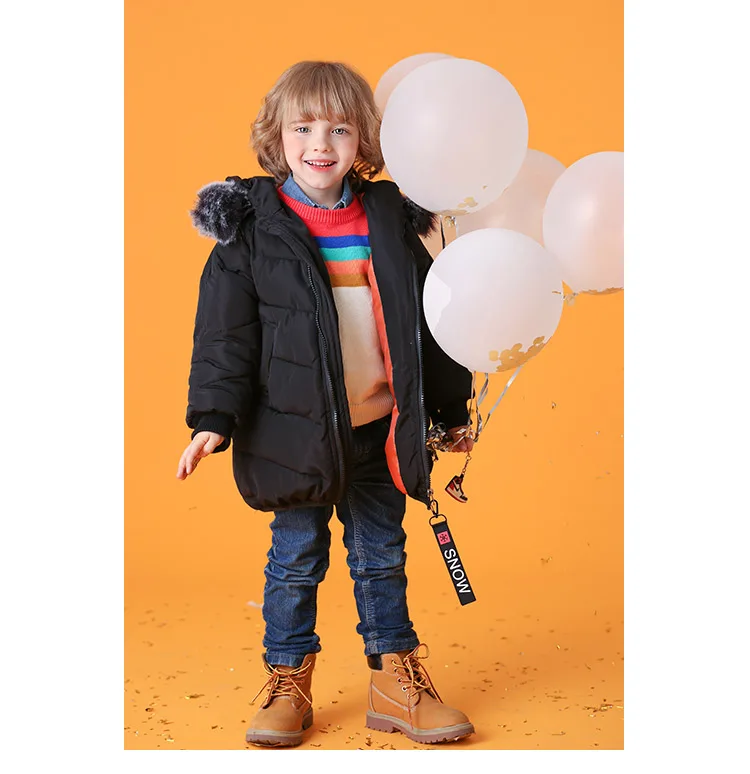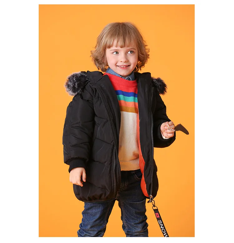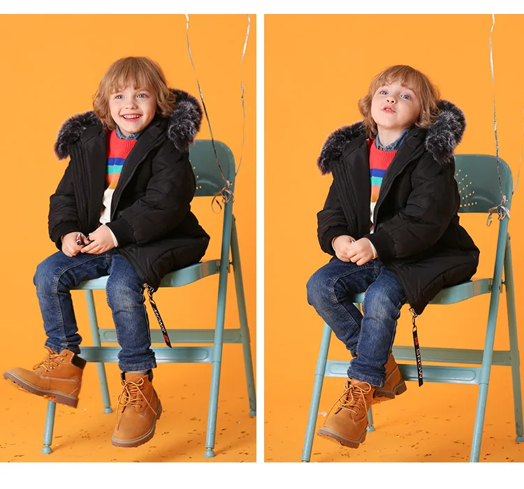 Winter 3 4 5 6 7 8 9 10 11 12 Years Faux Fur Hat Black Hooded Medium Long Down Thickening Jacket Coat For Kids Baby Boys