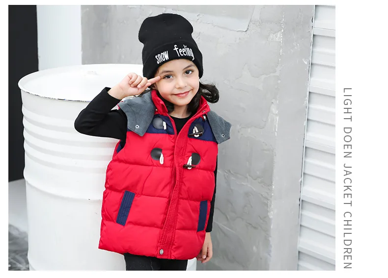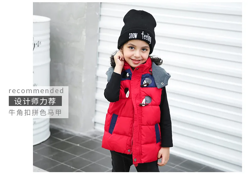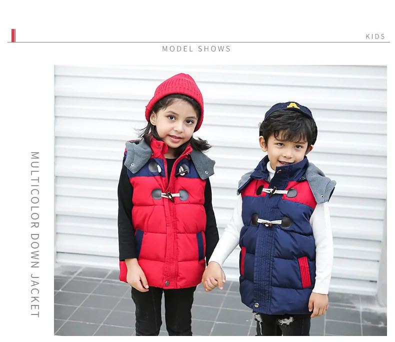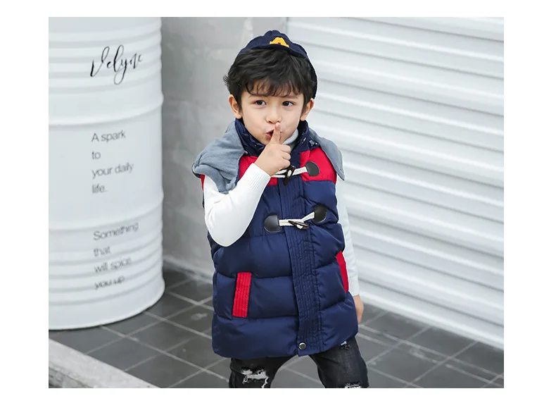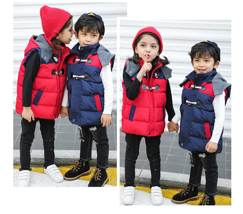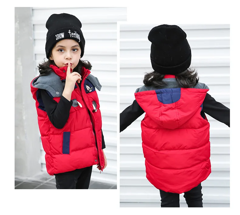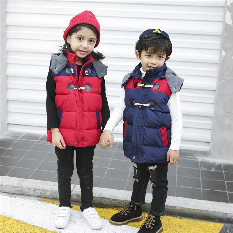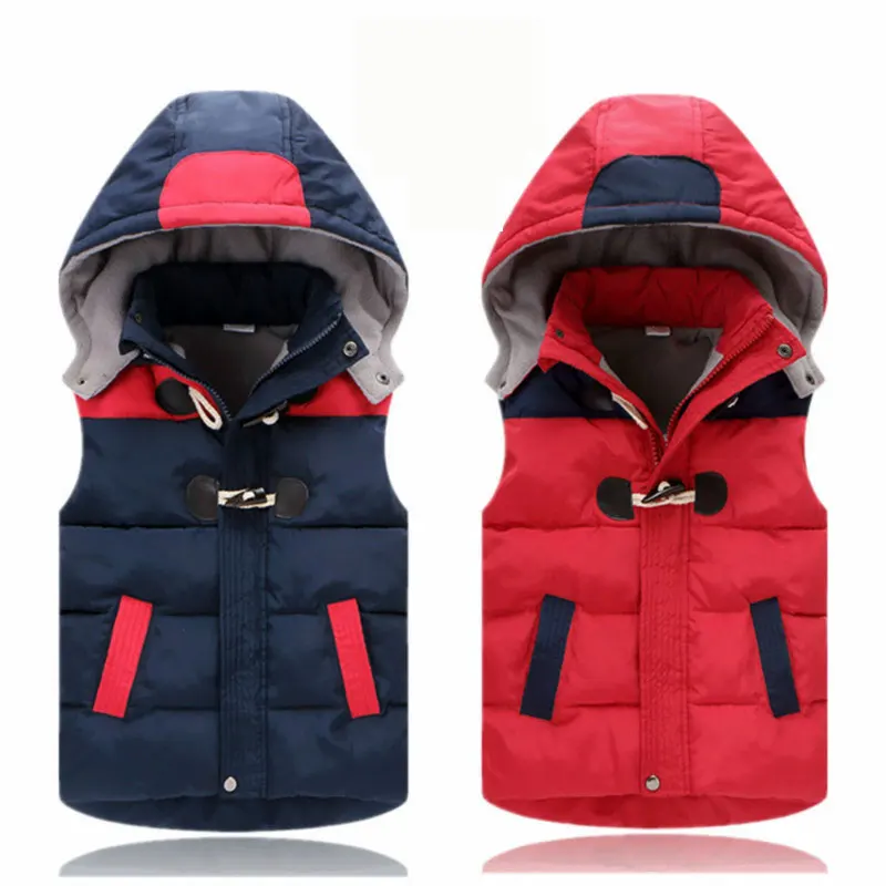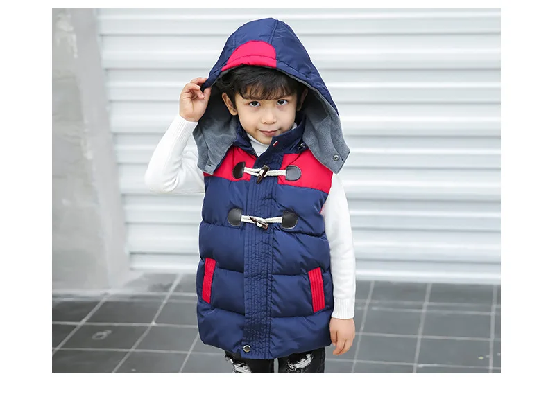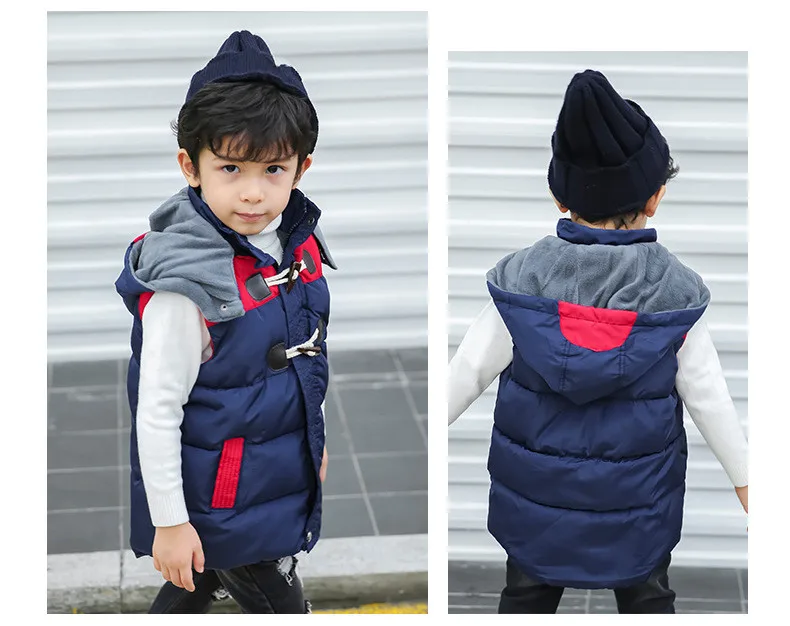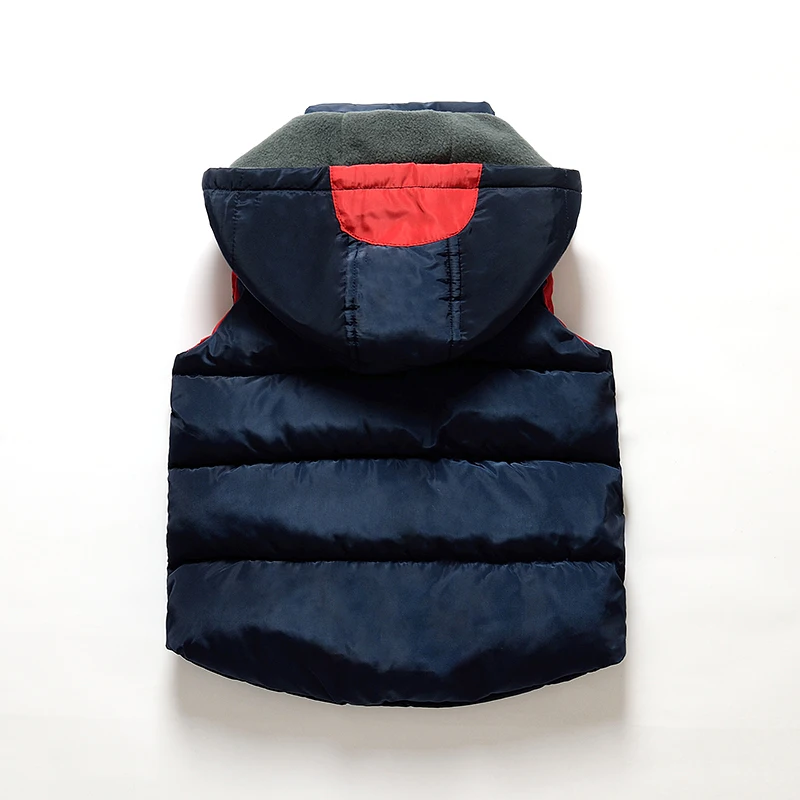 Thickening Outerwear Coat Color Patchwork Hooded Vest For Kids Boys Gi