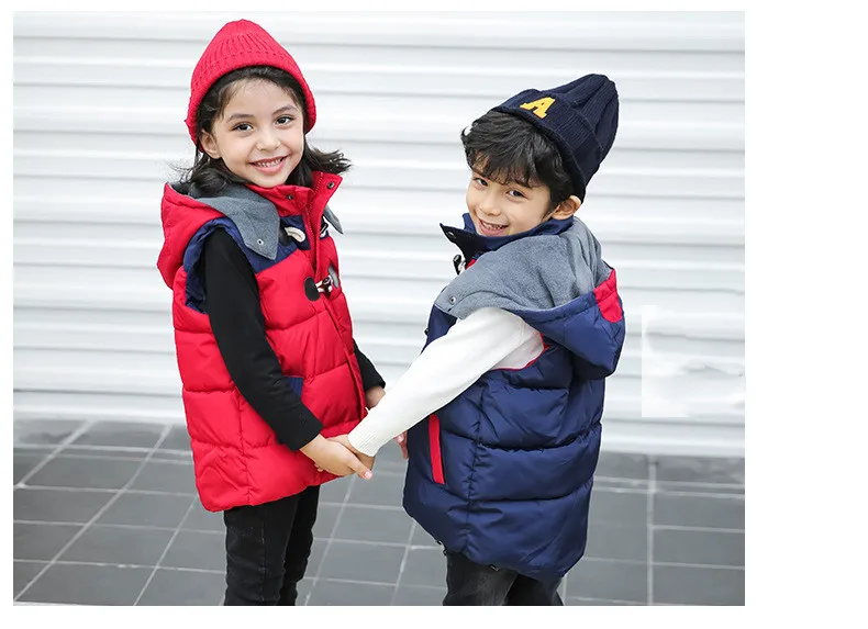 2022 Winter New 3-12 Years Teenager Children Thickening Outerwear Mix Color Kindergarten Hooded Vest Waistcoat For Boys Girls