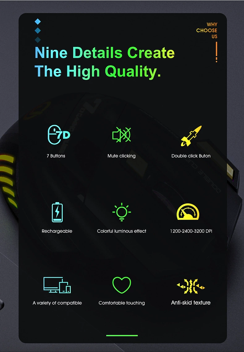 4.Mouse built-in  large capacity battery, which can be recharged chanrging used, economical and environmentally friendly.