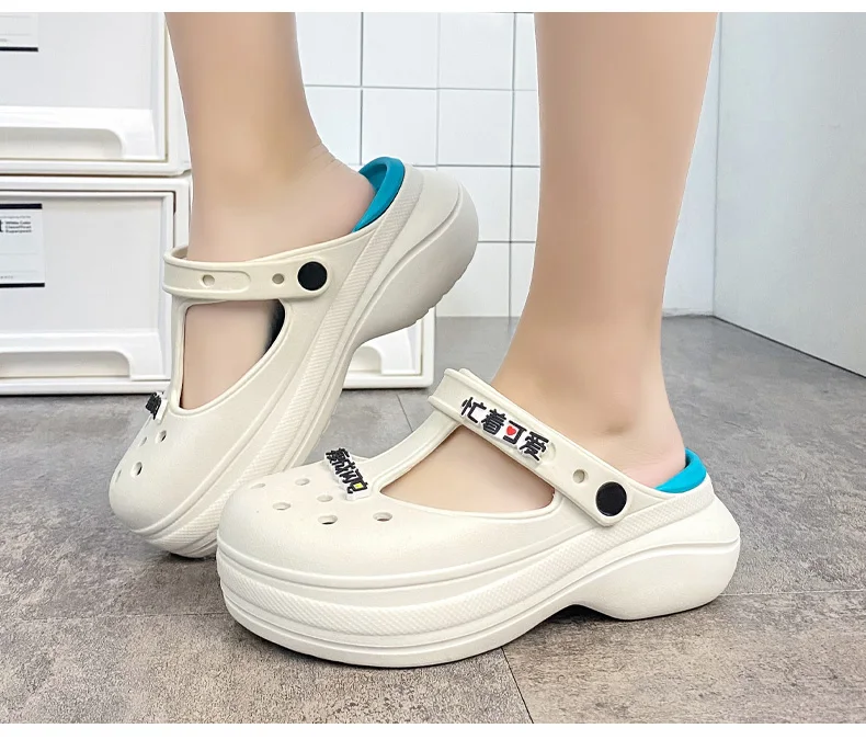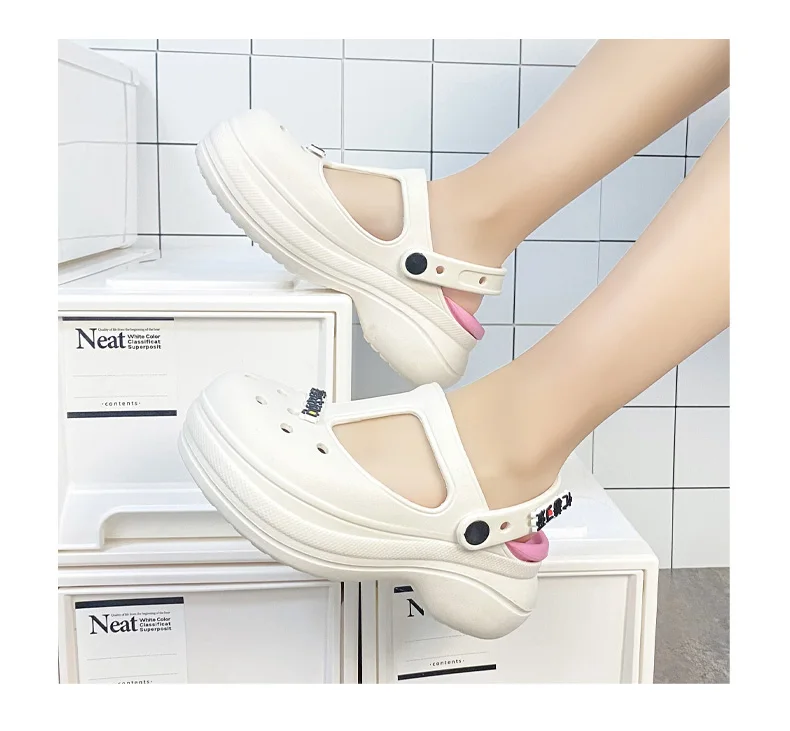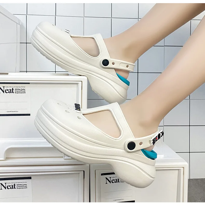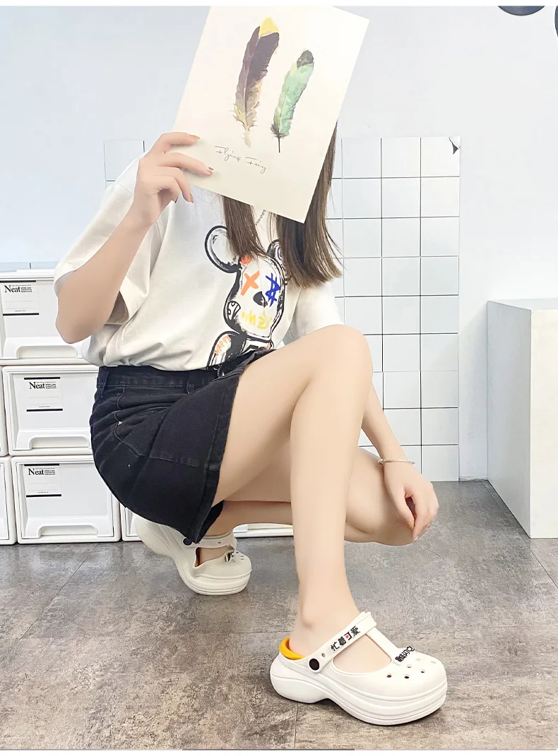 2022 Women Sandals Summer High Hole Shoes Clogs EVA New Home Garden Ladies Girls Beach Flat Female Slippers