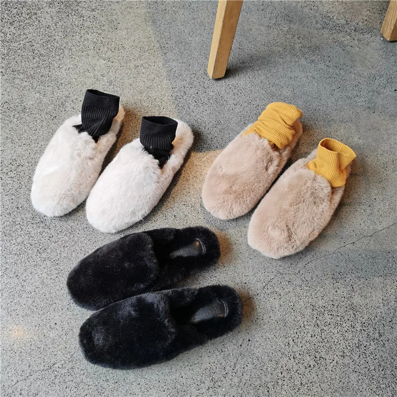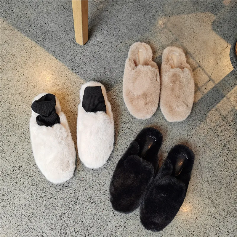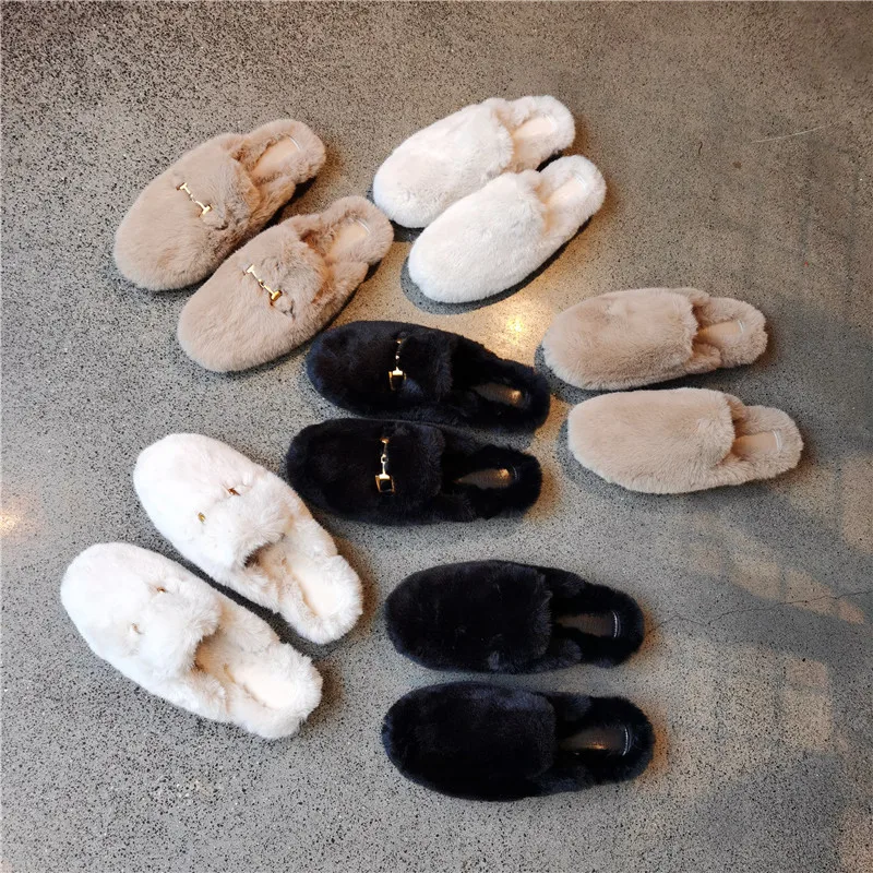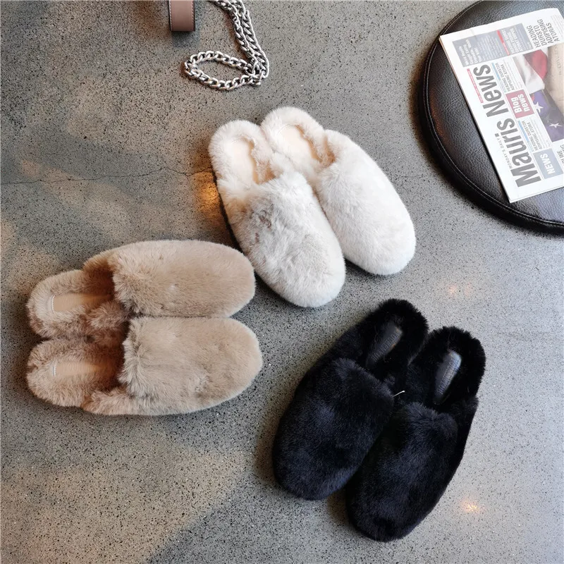 2022 Winter Fur Slides Home Plush Cotton Slippers