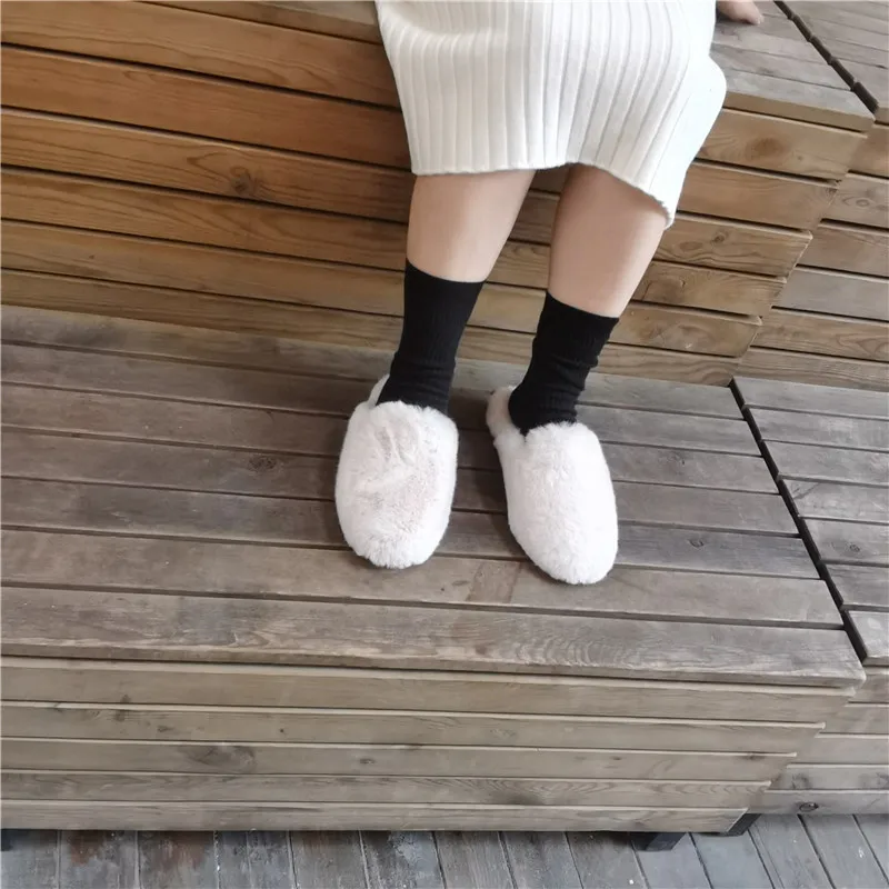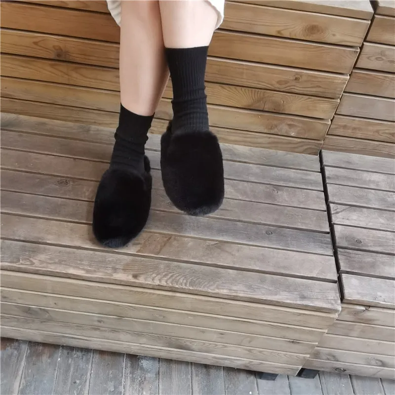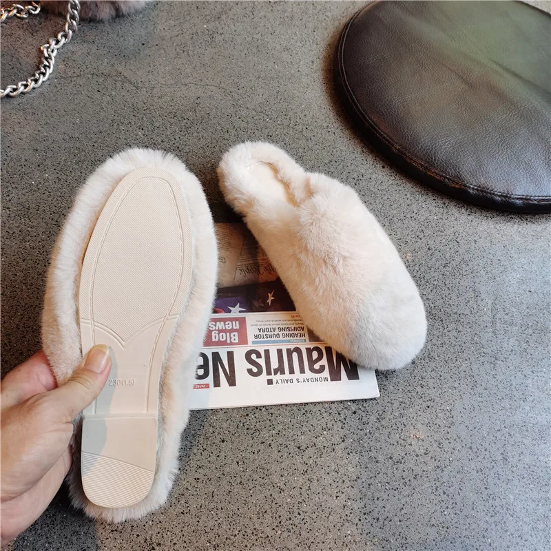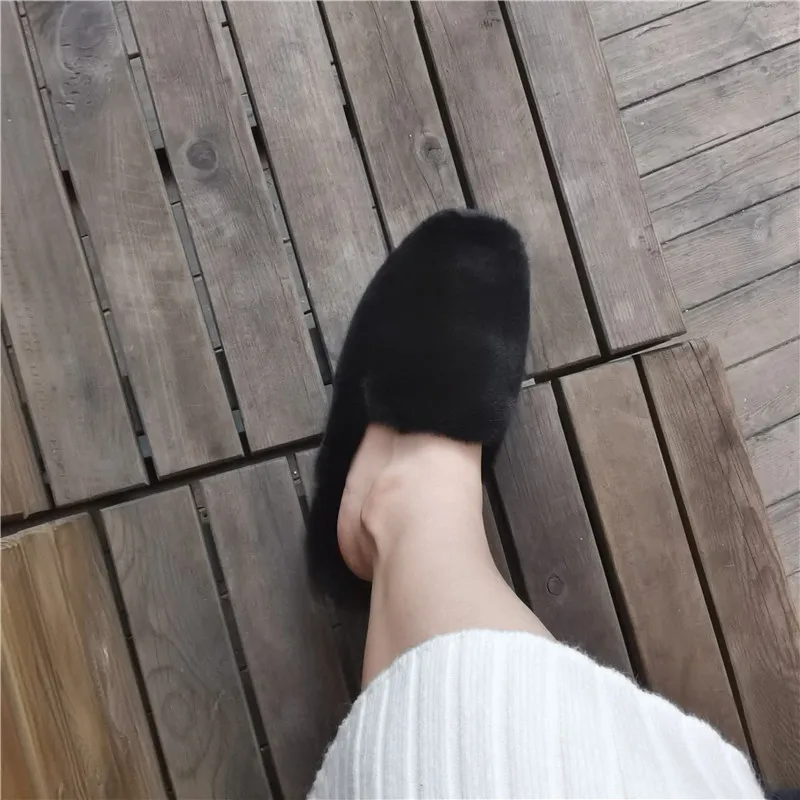 2022Ins Trendy Slippers Woman Mink Fur Shoes Winter Rubber Flats Loafers White Wool Slides Femme Semi-Trailer Home Furry Mules