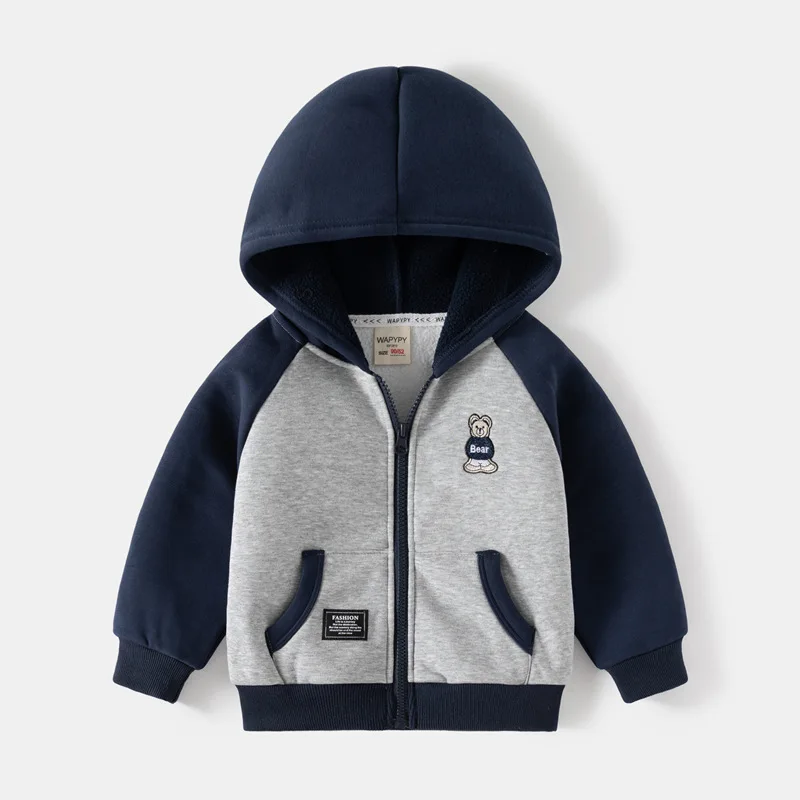 2023 Autumn and Winter Boys Hooded Jacket With Fleece and Double-layer Zipper Coat Sales of Fashionable Kid Clothes