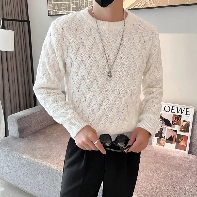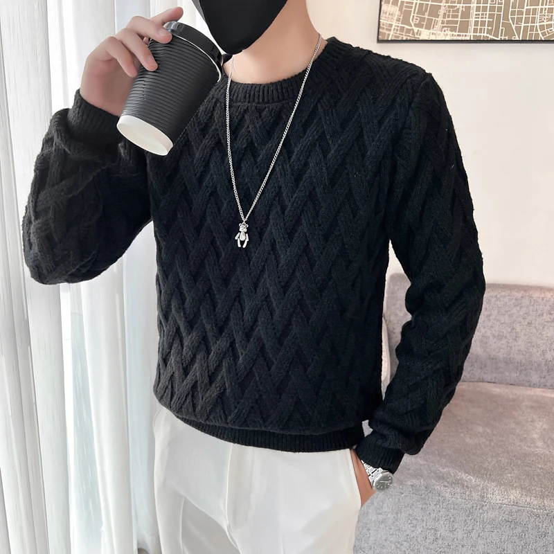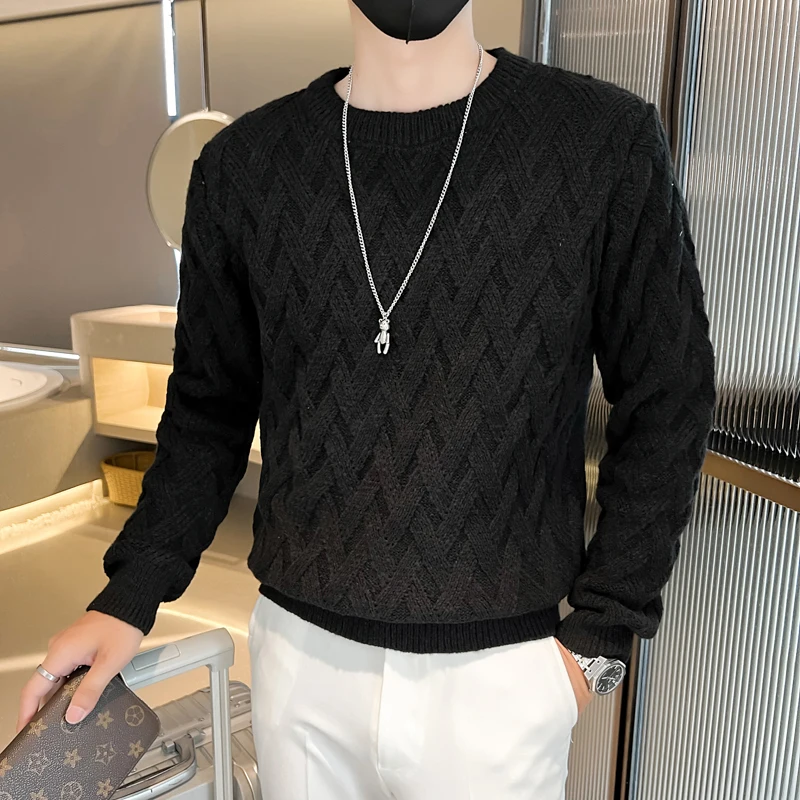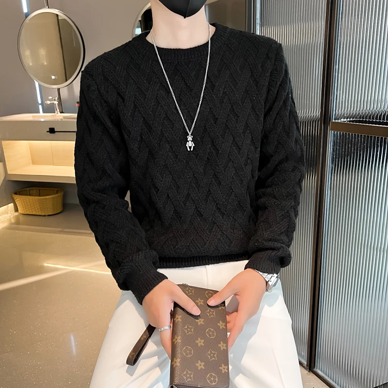 2023 Autumn Knitted Sweater Men Long Sleeve Round Neck Knitted Pullovers Winter Casual Slim Fit Knitwear Tops Social Streetwear