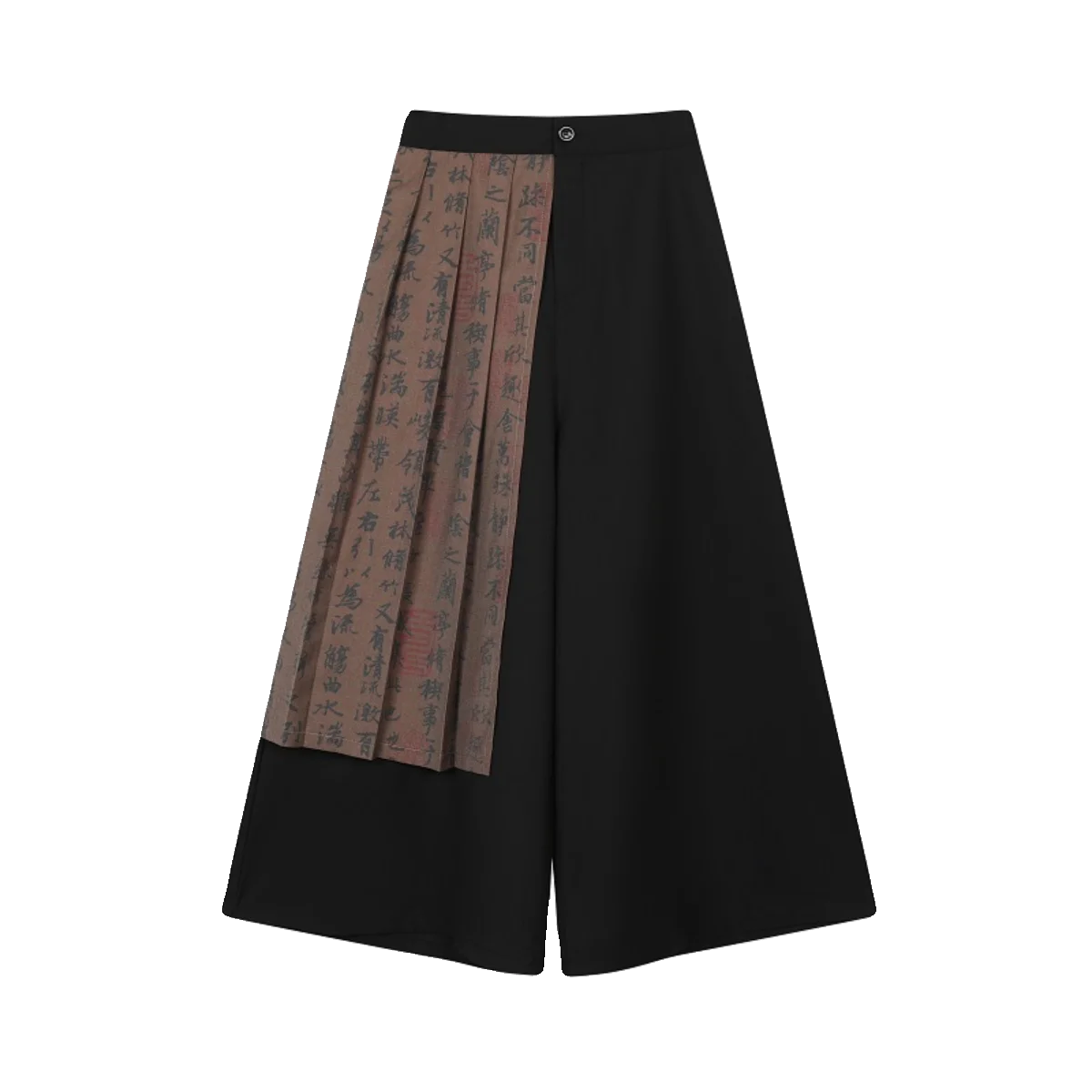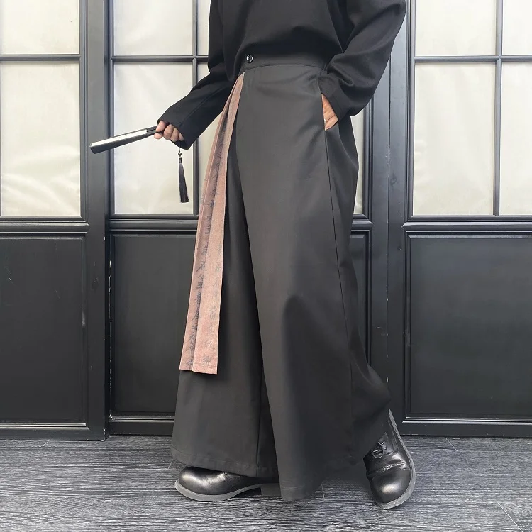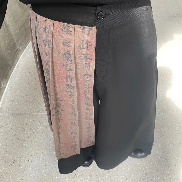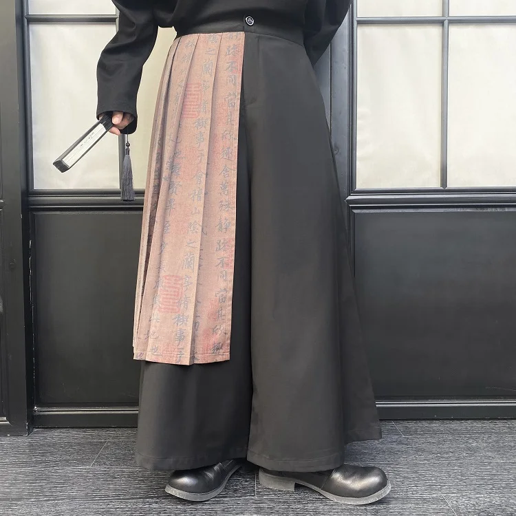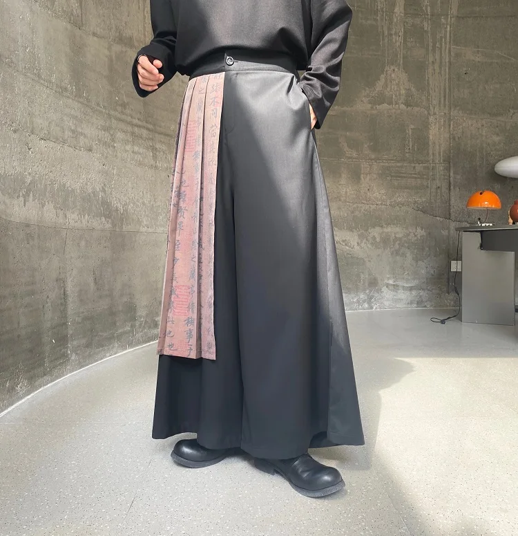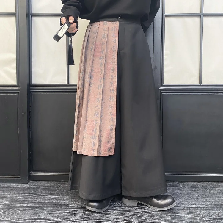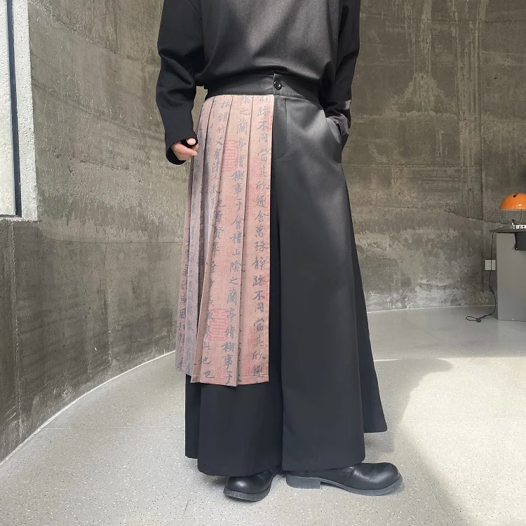 2023 Autumn Korean style Cursive printed pleated pants men casual loose Culotty wide leg pants for men trousera,size M-XL