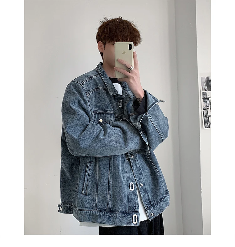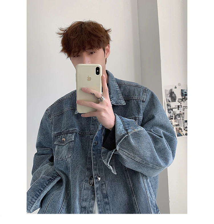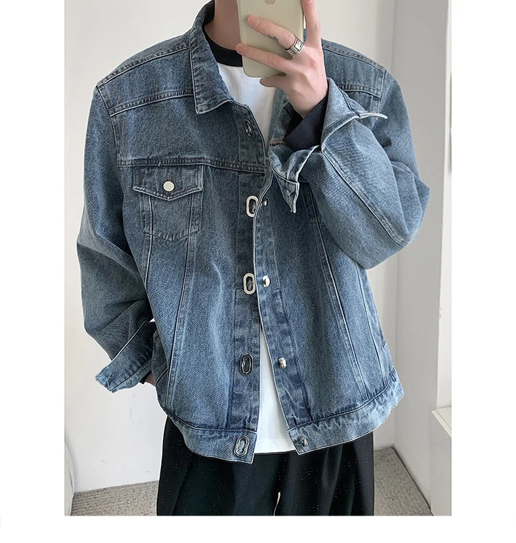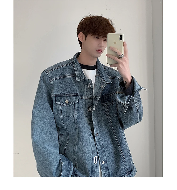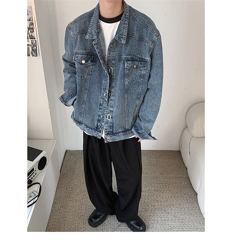2023 Autumn Korean style Unique Double pockets design denim jackets for men casual loose blue denim jackets men,M-XXL