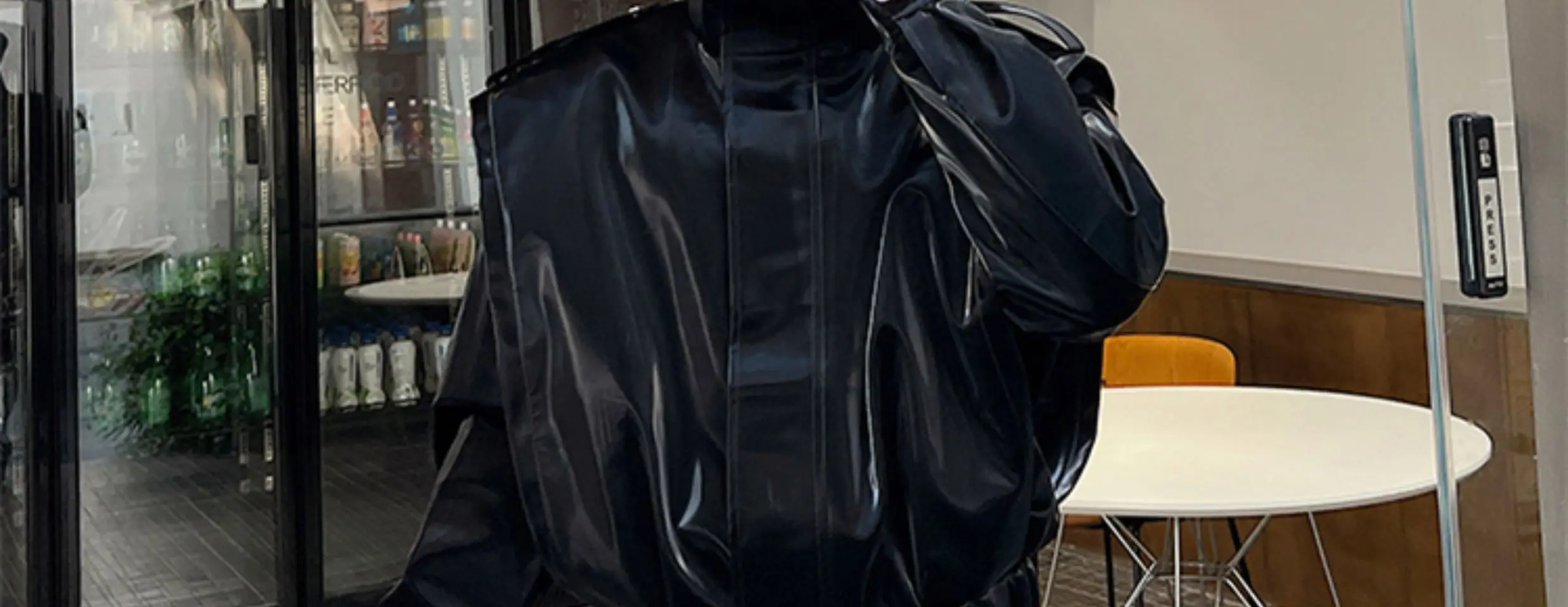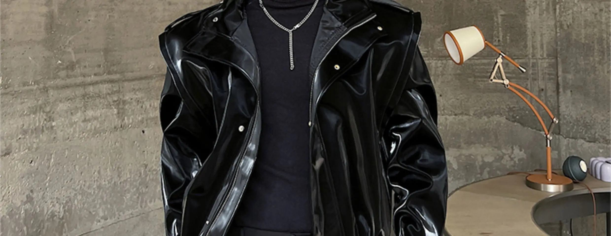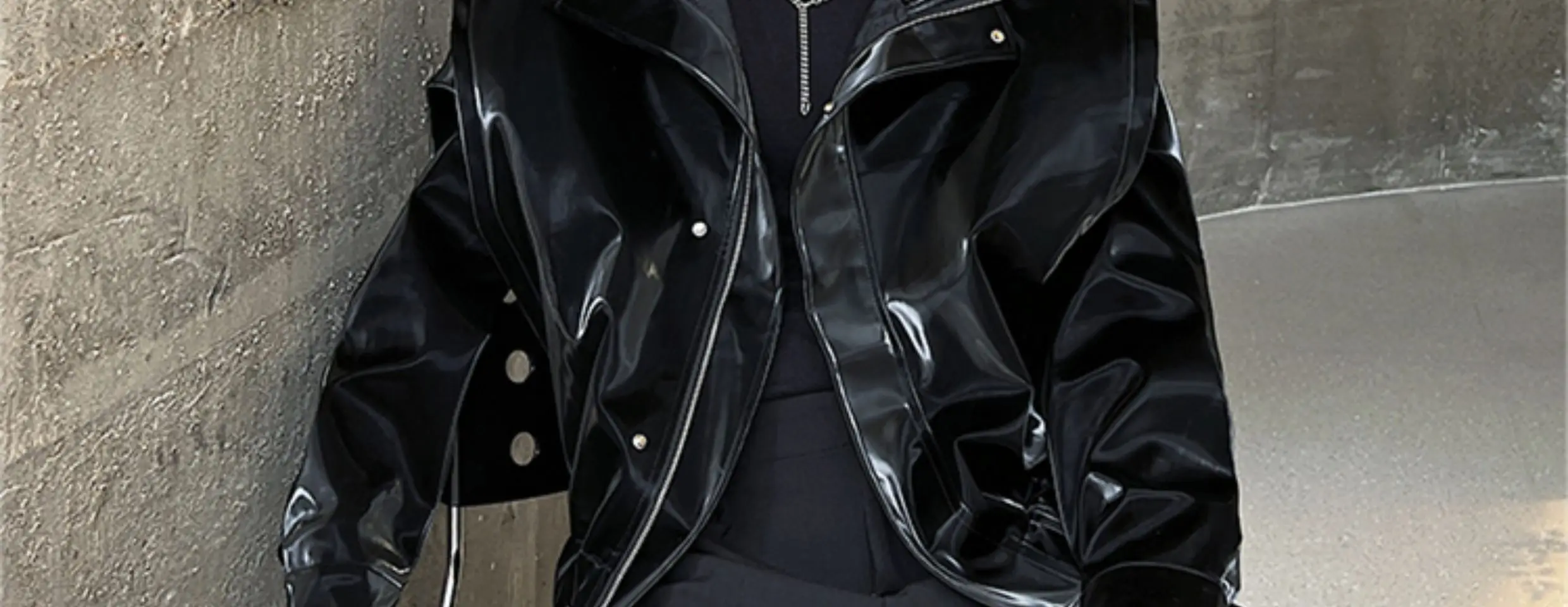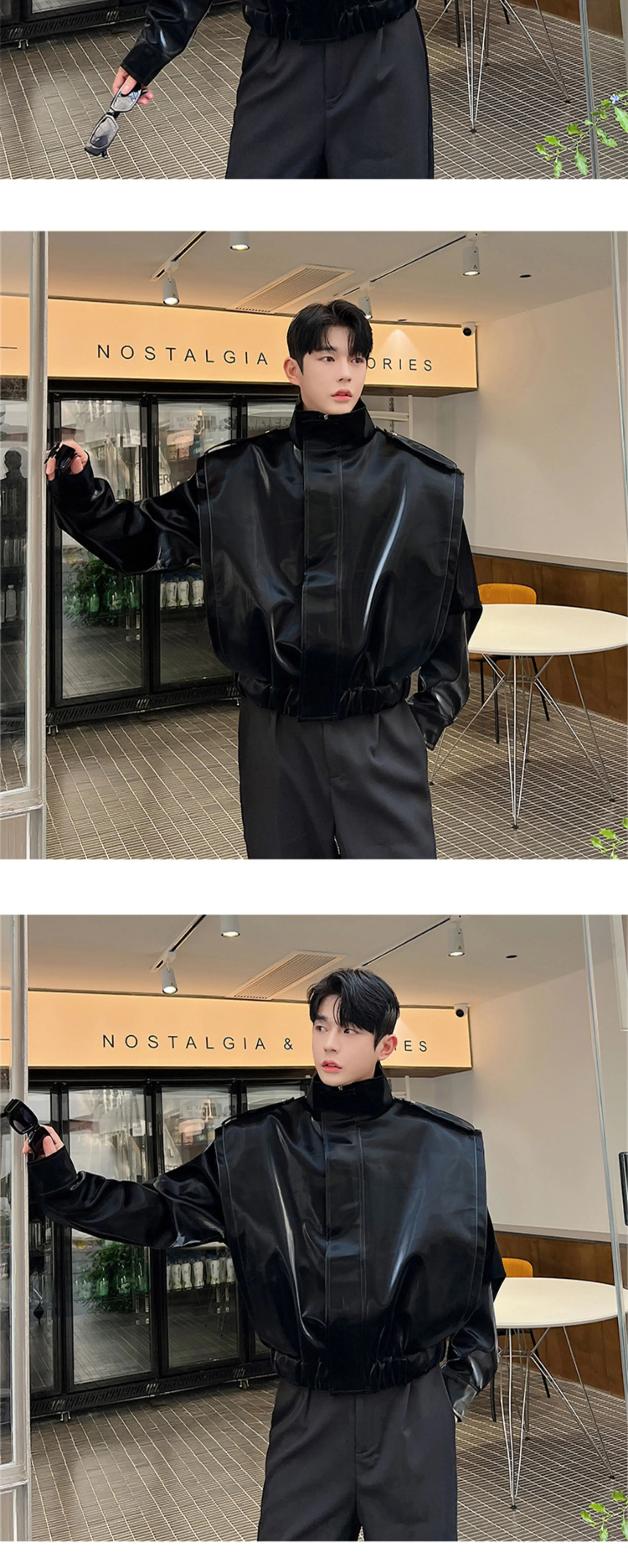 2023 Autumn Korean style unique fake two pieces design PU leather jackets for men casual loose Glossy PU jackets men,M-XL
