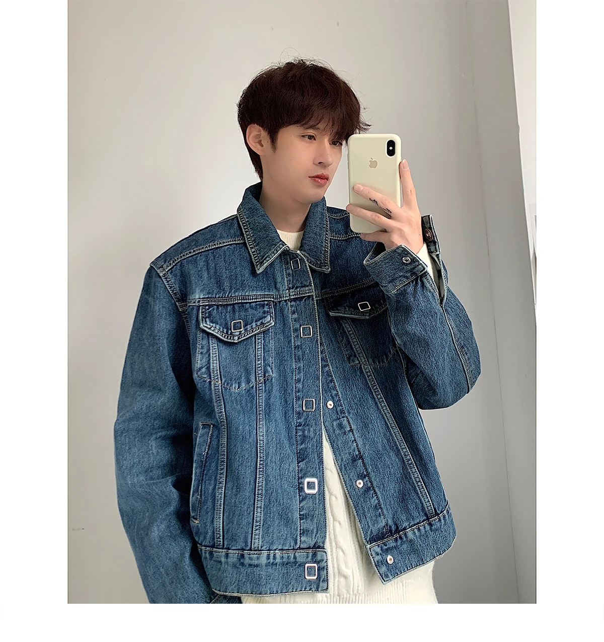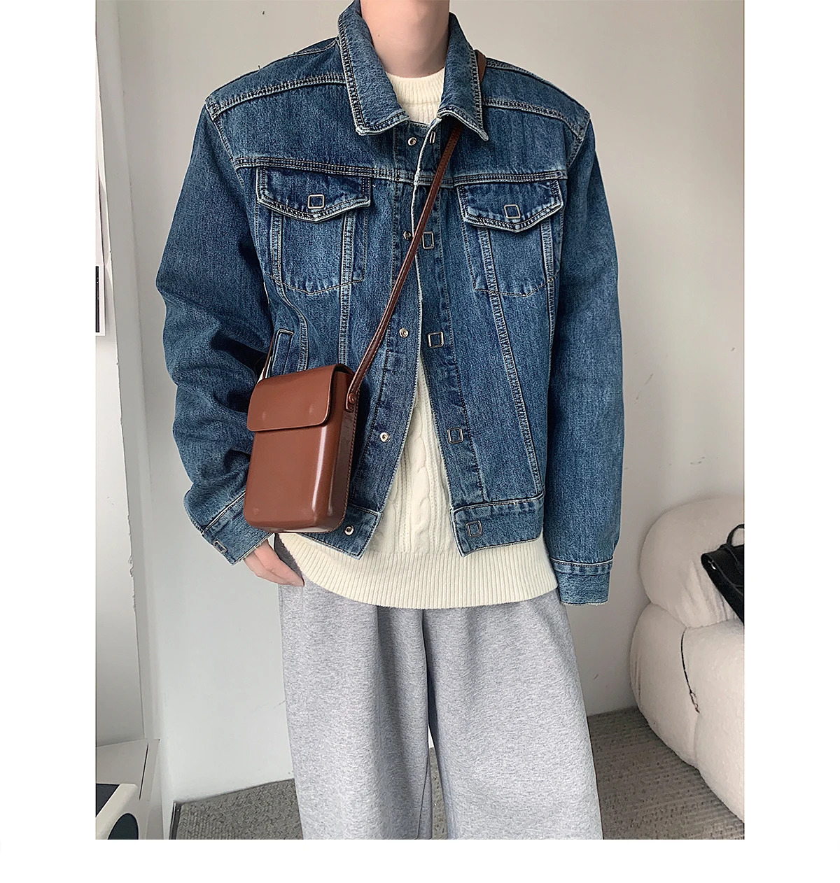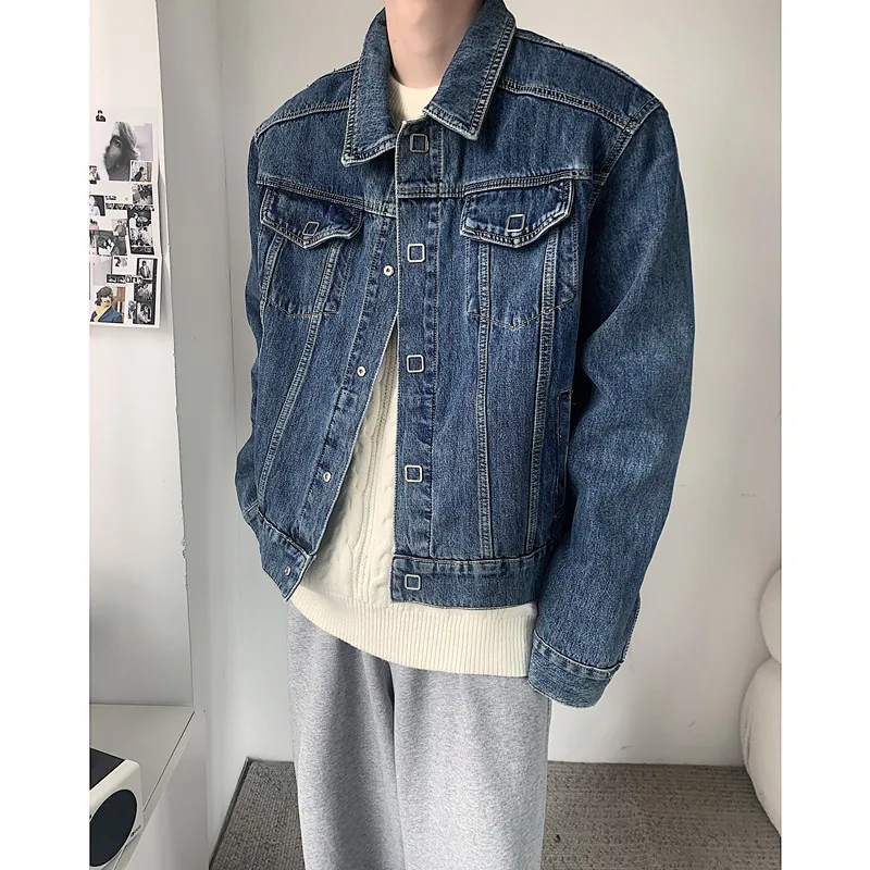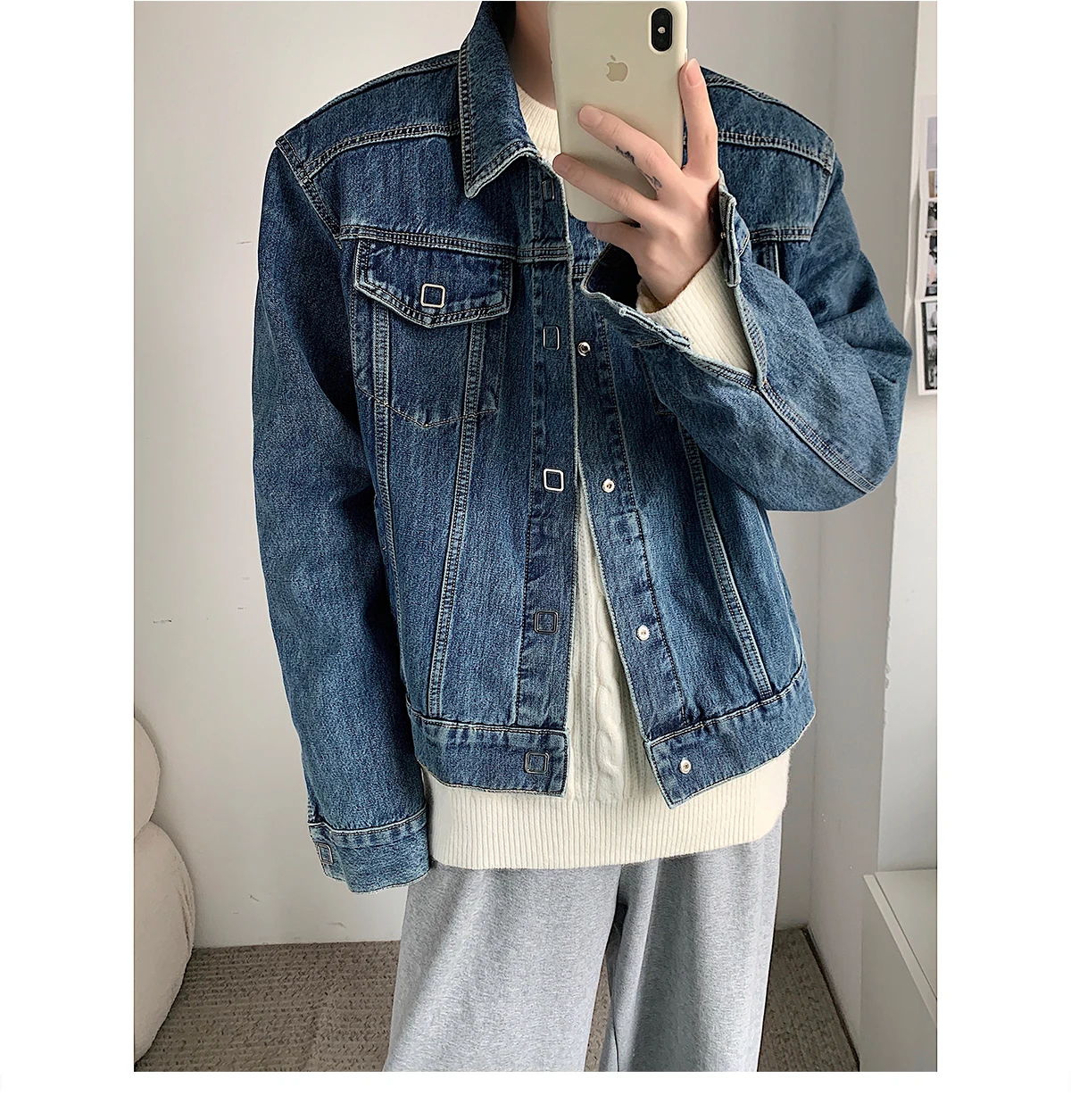 2023 Autumn Korean style unique retro shoulder pad denim jackets men casual loose short section denim jackets coat men,M-XXL