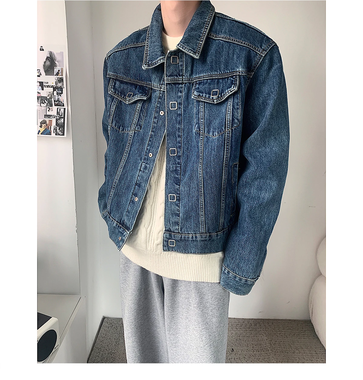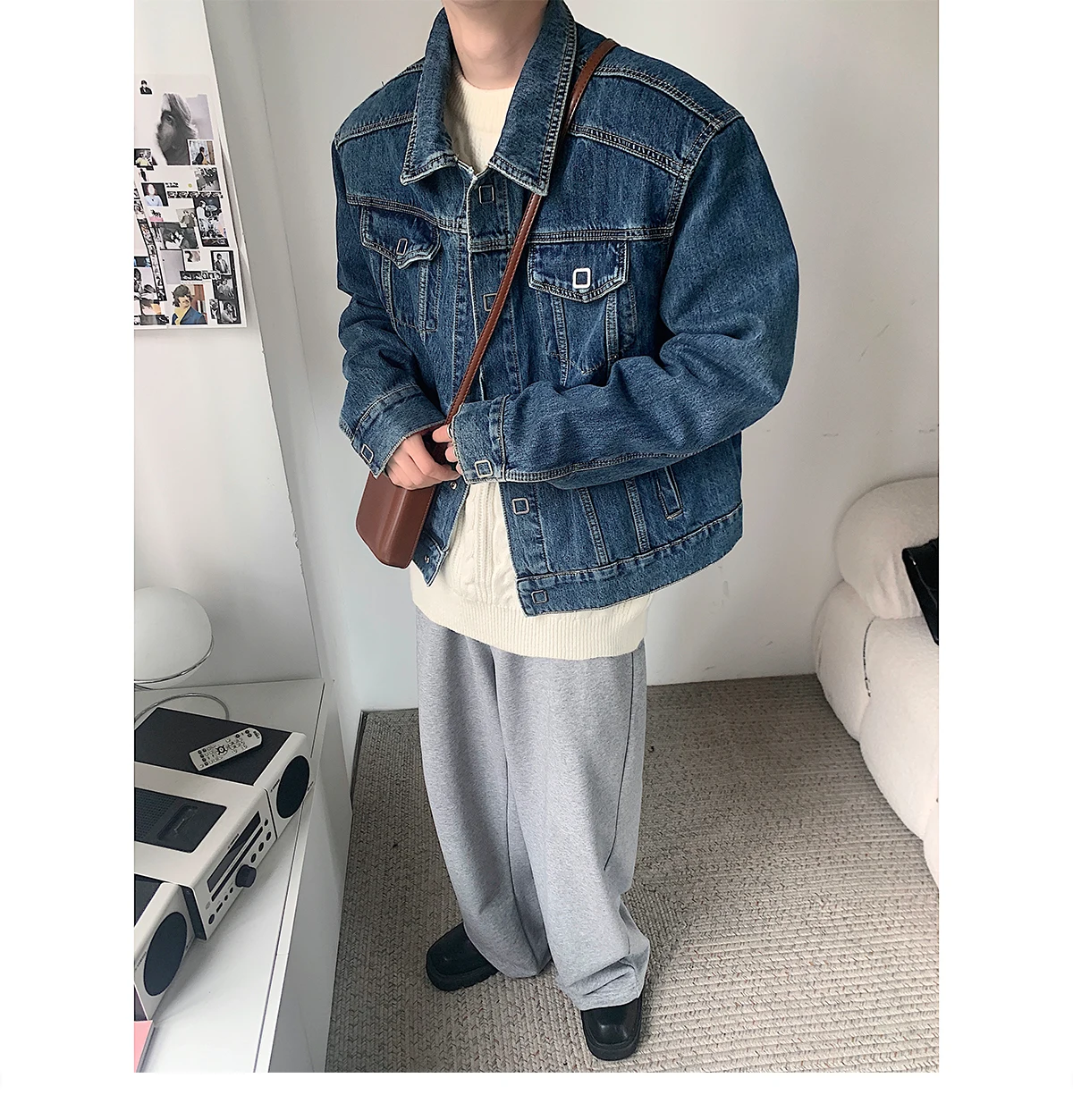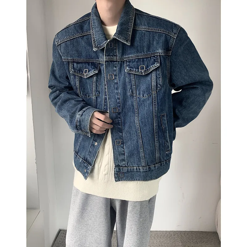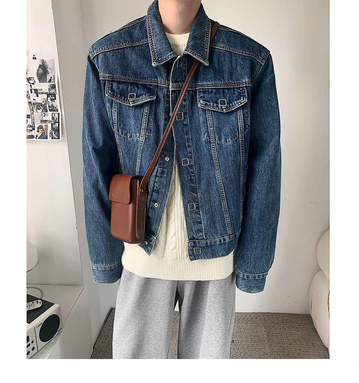 2023 Autumn Korean style unique retro shoulder pad denim jackets men casual loose short section denim jackets coat men,M-XXL