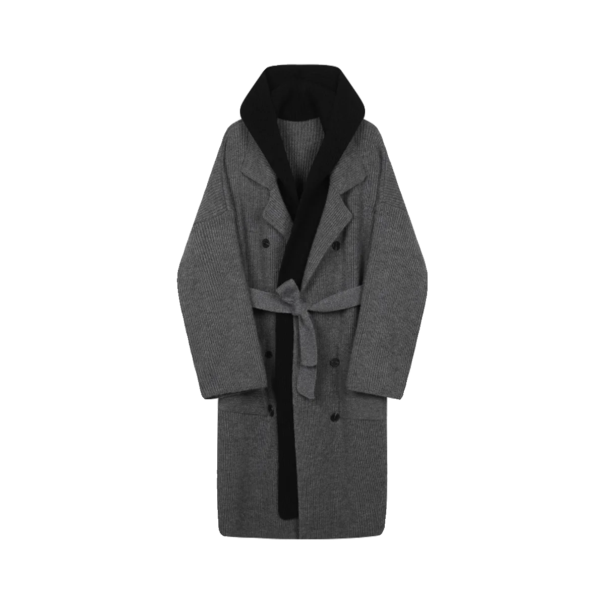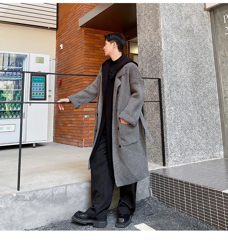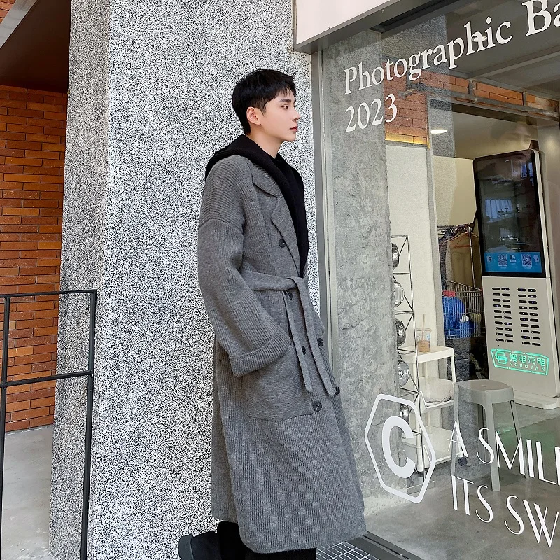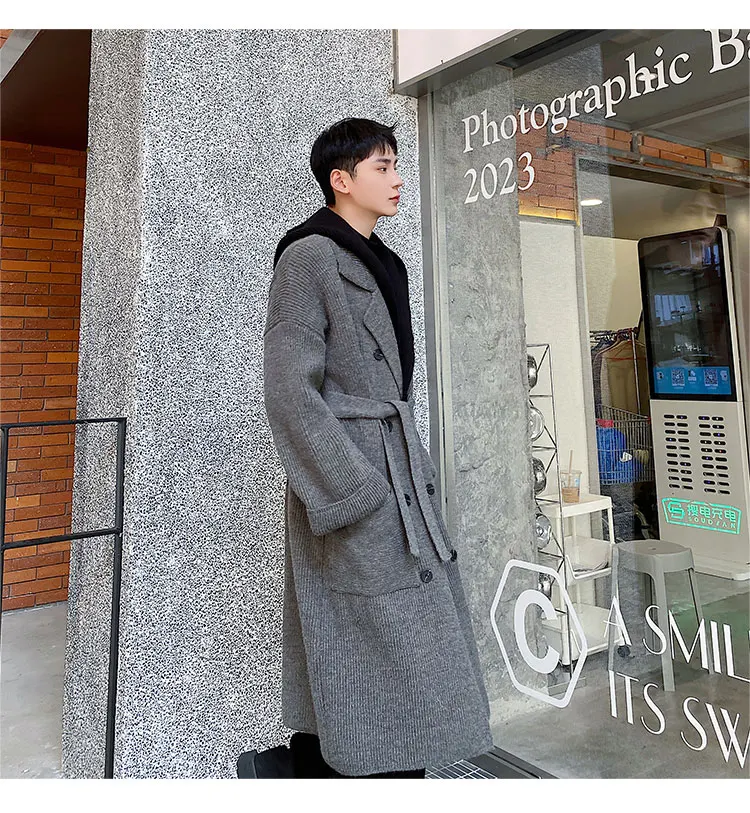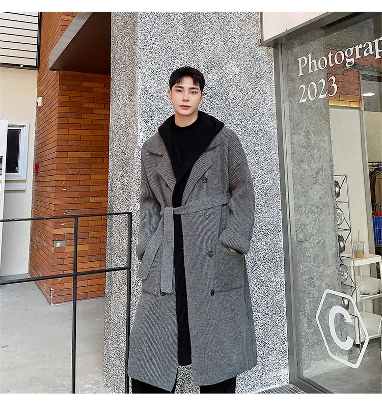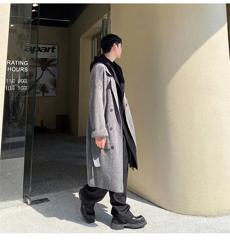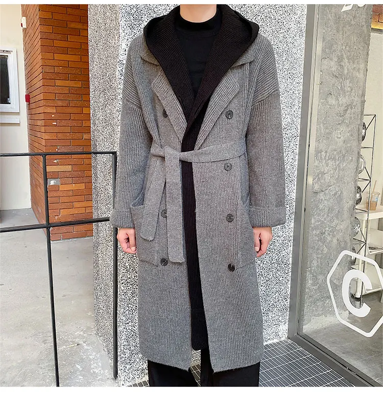 2023 Autumn mixed color unique Fake two-piece design Cardigan men casual loose long style thickened hooded knitting Cardigan