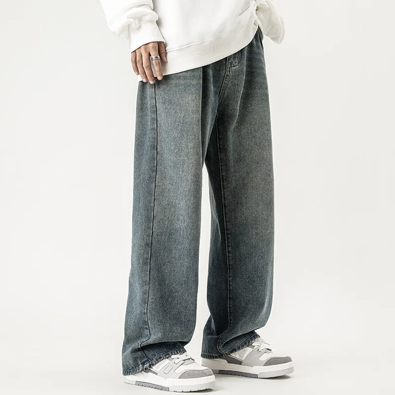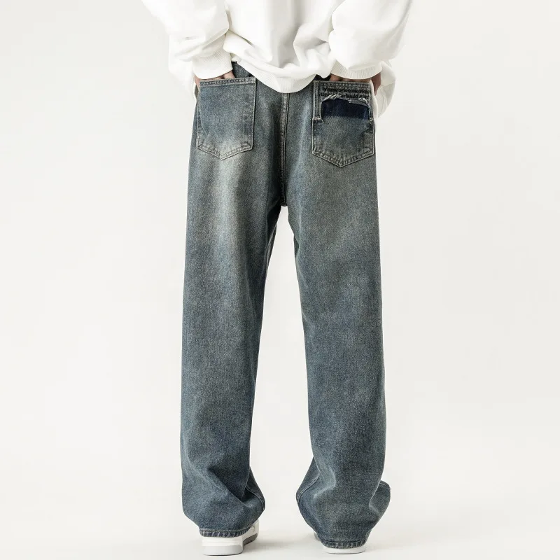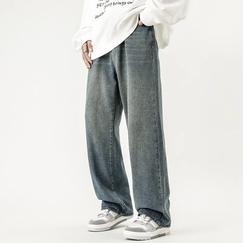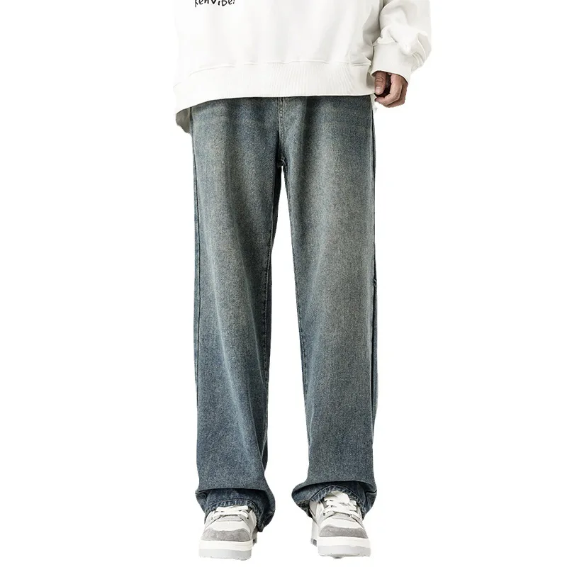 2023 Autumn New Straight Loose Leg Jeans Men’s Wash Vintage Blue Long Pants men baggy jeans