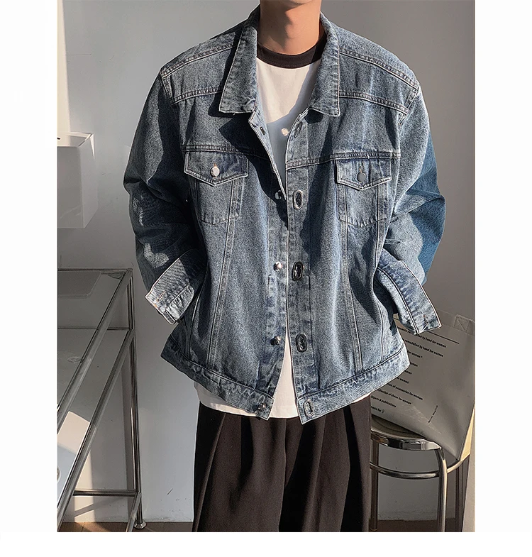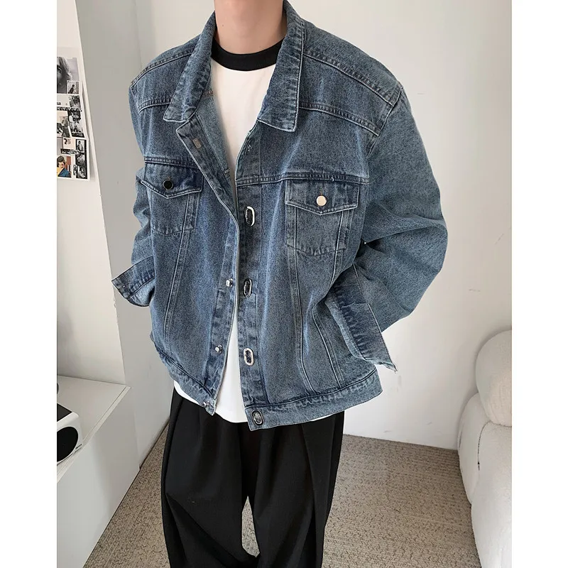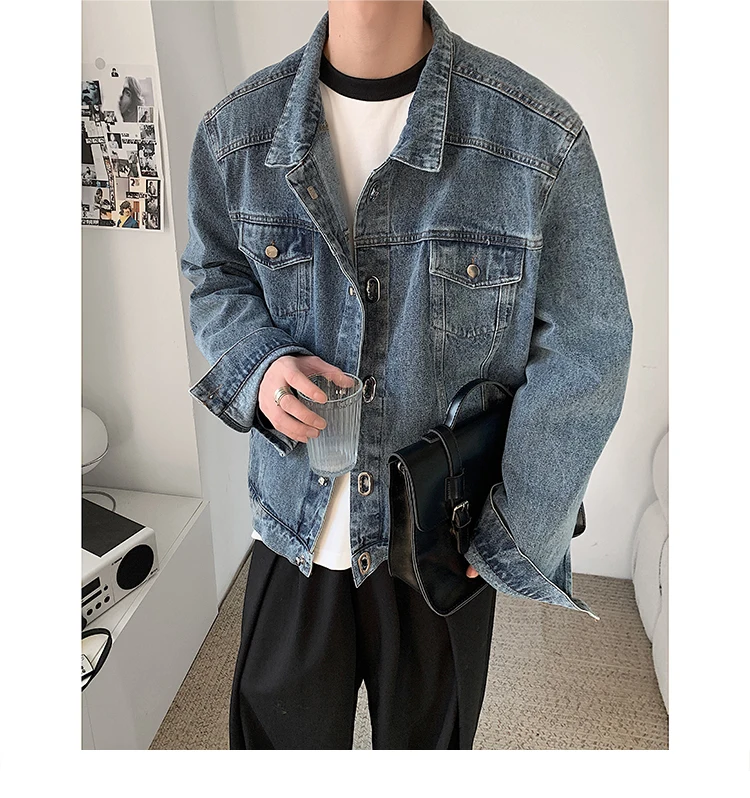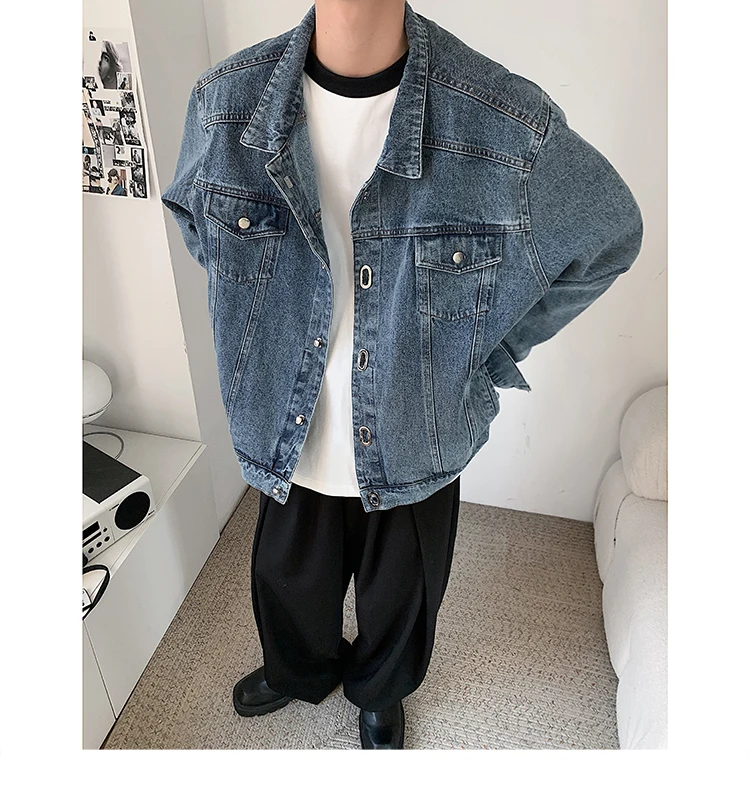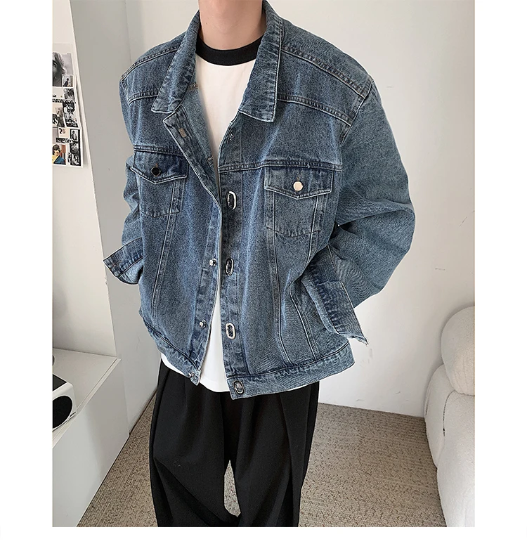 2023 Autumn Unique buttons design double pockets denim jackets men casual loose short section denim jackets coat men,M-XXL