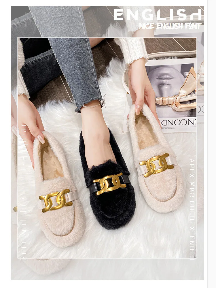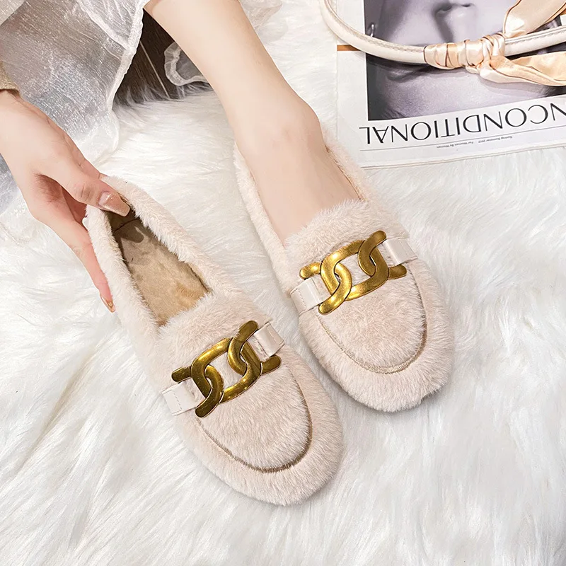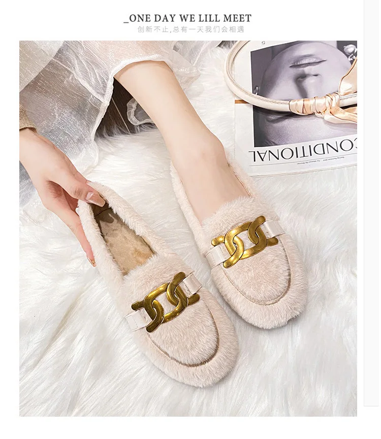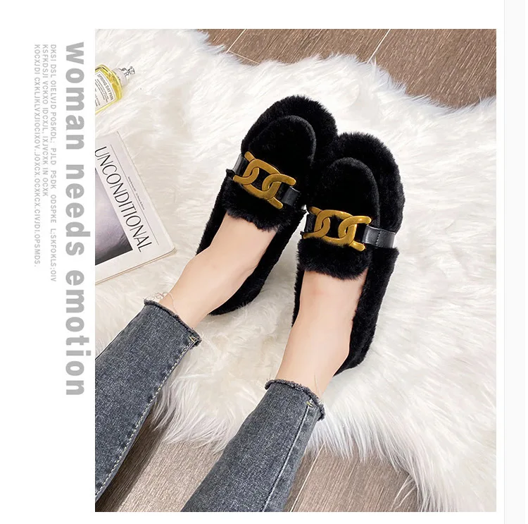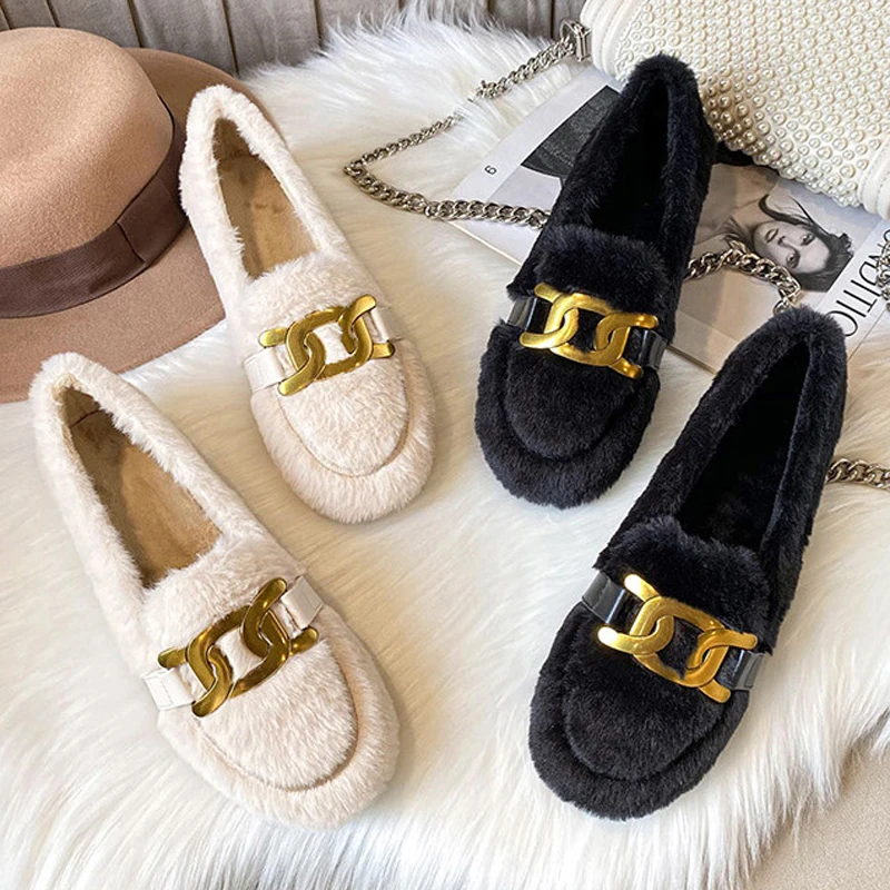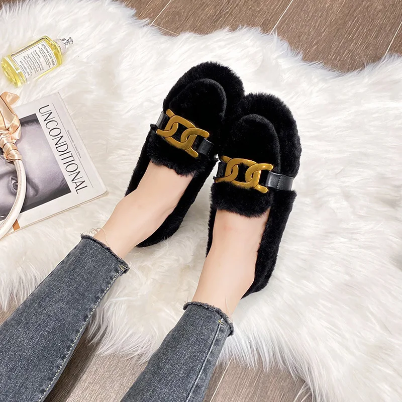 2023 Comfort Platform Slippers Woman Chains Loafers Cozy Slip On Pantufa Slides
